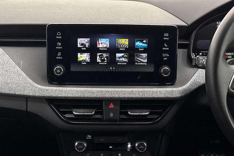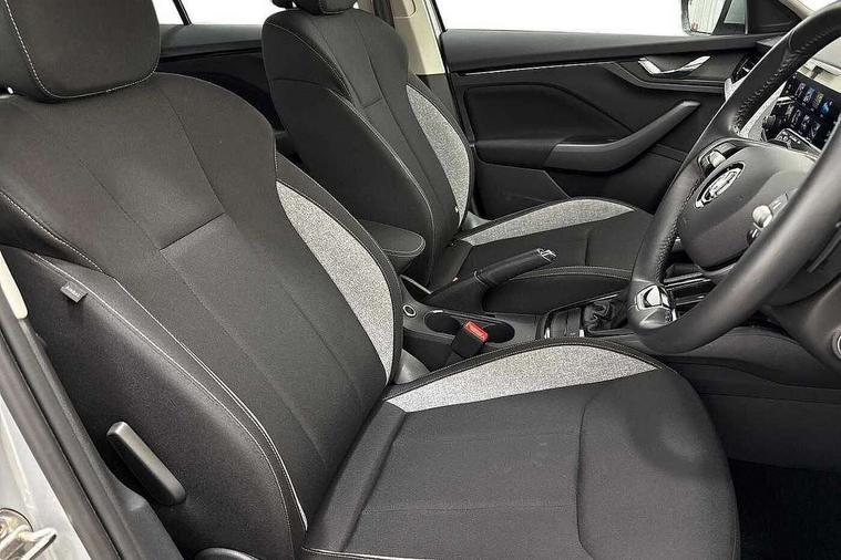 8" Digital display, Advanced driver attention and drowsiness monitor, Bluetooth system, E-call, Front assist system, PAS, Rear parking sensors, Service indicator, Speed limiter, Traffic sign recognition, Wireless smartlink, 4 USB C ports, 8 Speakers, 8.25" Skoda infotainment display, DAB Digital radio, Auto dimming rear view mirror, Automatic headlight control with coming home and leaving home feature, Automatic headlights, Black roof rails, Body colour bumpers, Body colour door mirrors and handles, Chrome grille surround, Front and rear electric windows, Full LED headlights, Heated rear window, LED daytime running lights, LED front turning lights, LED high beam, LED low beam, LED third brake light, Rear side wing doors, Rear wiper, Ticket holder inside windscreen, 12V socket in luggage compartment, 3 seat bench in 2nd row, Black hotstamping, Cargo elements, Chrome inner door handles, Driver and passenger sun visors with vanity mirror, Dual zone climate control, Front and rear roof lights, Front centre armrest, Front head restraints, Glove compartment with illumination, Height adjustable driver seat, Height adjustable front passenger seat, Ice scraper, Inner circulation control with pollen filter, ISOFIX on front passenger seat, Isofix preparation for back seats, Krepp recycled decor inserts, Leather gearknob and handbrake lever, Loft cloth upholstery, Manual lumbar support for front seats, Net package and top tether hooks in boot space, Net under rear shelf, Overhead glasses storage compartment, Pocket on the back of both front seats include mobile phone pockets, Rake/reach adjustable steering wheel, Reading lights, Satin black door inserts, Single front passenger seat, Textile floor mats, Third rear headrest, Top tether for front passenger seat, Umbrella in driver's door, 3x3 point rear seatbelts, Airbags - driver and front passenger, Disc brakes, ESP, Extended and predictive pedestrian/cyclist protection, Front passenger airbag deactivation switch, Front side airbags with curtain airbags, Hill hold control, Manual leather parking brake, Manual rear child locks, One tone horn, Seatbelt reminder for driver an co-driver, Traction control, Tyre pressure monitor, Anti-theft alarm system with interior monitoring, backup horn, towing protection and remote central locking with SAFE system, Anti-theft wheel bolts, Electronic engine immobilizer,
