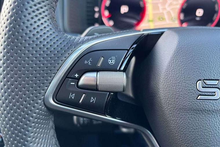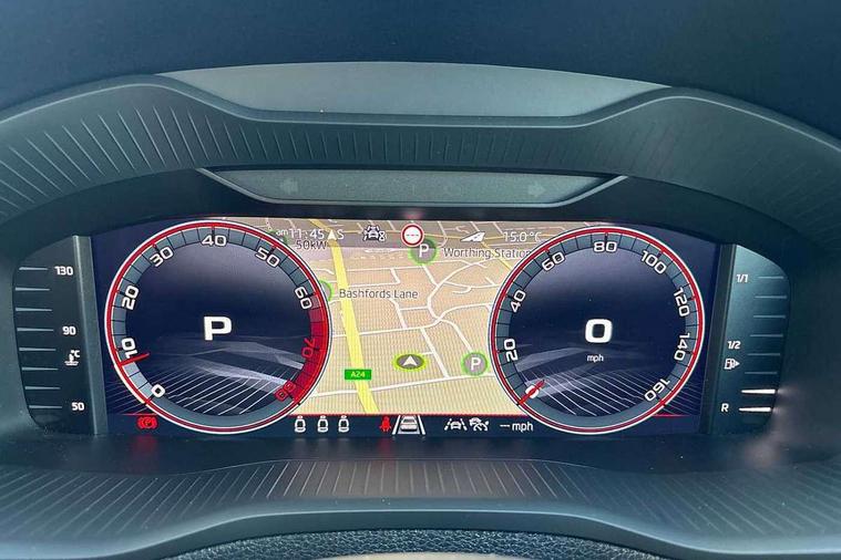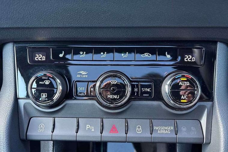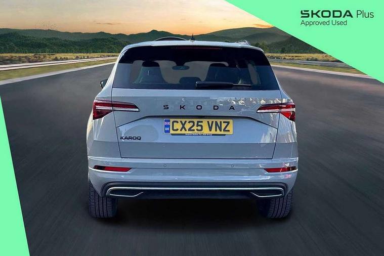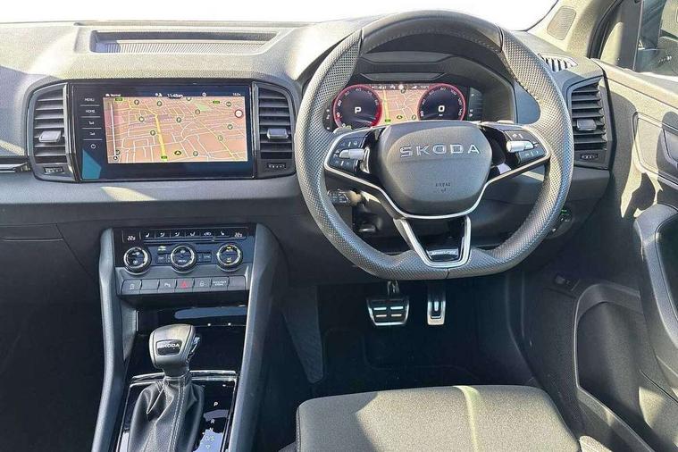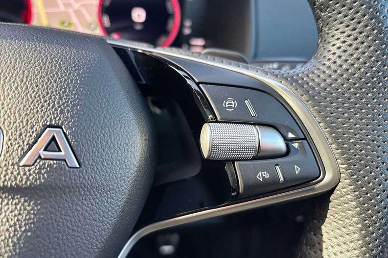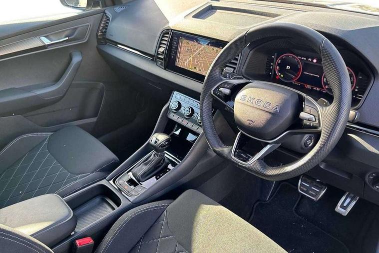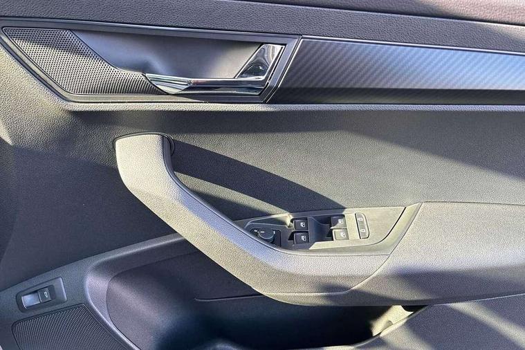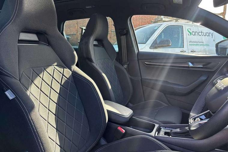 Advanced driver attention and drowsiness monitor, Emergency services call system, Outside temperature gauge, Sensor for driver assistance systems, Service interval indicator, SmartLink wireless for Apple and wired for Android, Start/stop system with regenerative braking, Traffic sign recognition, USB C Port x 2 in front centre console, Virtual Cockpit - 10.25" digital display, Virtual pedal with electrically operated boot door, Wireless smartphone charging, DAB radio with Bluetooth, USB connection, Acoustic glass, Aero front windscreen wipers with intermittent function, Auto dimming rear view mirror with light and rain sensors, Black door mirrors, Black electric window control buttons, Black radiator grille, Black roof rails, Body colour door handles, Electric front and rear windows with child proof lock, Extended rear roof spoiler, Front door steps with SportLine logo, Heated rear windscreen, LED daytime running lights, LED rear lights with high functionality welcome effect and dynamic indicators, Light assistant (coming/leaving home/tunnel light), Panoramic sliding sunroof, Plastic scuff plates in door apertures, Privacy glass, Protective door side sills in body colour, Rear diffuser, Rear side wing doors, Rear window wiper with washer system and intermittent control, Safety reflectors on front doors, Skoda lettering on tailgate in black, Sportline badge on front fender, Sports front and rear bumpers, Third brake light, Unique dark chrome design logo on alloy wheels, 1.5 litre bottle holders in driver and front passenger door panels, 12V socket in boot, 12v socket in front centre armrest with storage compartment and rear air vents, 2 x Tablet holder, 3 rear height adjustable headrests, 3 seat bench in 2nd row, 3 spoke sports leather heated multifunction steering wheel with DSG paddles, 4 foldable roof handles with rear coat hooks, Black floor carpet, Cargo elements in boot, Chrome inner door handles, Foldable hooks in the boot, Front head restraints, Height adjustable front three point seats belts with tensioners, Height/reach adjust steering wheel, Ice scraper, Illuminated glovebox, Illuminated luggage compartment, Isofix child seat preparation for front passenger seat, Isofix child seat preparation outer rear, Manual lumbar support for front seats, Pen holder, Pollen filter, Rear backrest release from boot, Rear boot cover, Rear package tray, Rear reading lights, Rear seats fixed folding and divided 60:40, Rubbish bin door, Safety vest holder, Single front passenger seat, Skoda lettering on steering wheel, Sportline decorative inserts, Storage box in upper central dashboard closed, Sunvisors with illuminated vanity mirrors, Textile floor mats, Ticket holder, Titan black interior ceiling, Umbrella under passenger seat, Under passenger seat storage compartment, Columbus pack - Karoq, LED Interior lighting pack with Skoda welcome logo - Karoq, Light Pack - Karoq, Non Smokers pack, Performance pack - Karoq, Winter plus pack with heated front and rear seats - Karoq, Automatic door unlocking in case of crash, Automatic fuel cut off in case of crash, Driver airbag, Electronic parking brake with auto hold function, Emergency rear braking signal, ESC (incl. ABS+MSR+ASR+EDS+HBA+DSR+RBS+MKB), Front side airbags, Head airbags, Hill hold control, Knee airbags, Passenger airbag with switch-off function, Pedestrian monitor, Seatbelt reminder signalisation and pretensioner for all seats, Three point seatbelts rear, Two tone horn, Tyre pressure monitor, Alarm with interior monitoring, back up horn and tilt sensor with safe function, Electronic engine immobiliser, Keyless entry and start/stop, Remote central locking with 2 remote folding keys, Black air vent surround, Black centre console, carbon door decor, Satin black dashboard, Satin black door trim, 19" Sagittarius anthracite alloy wheels, Anti-theft wheel bolts protection, Breakdown and tool kit,