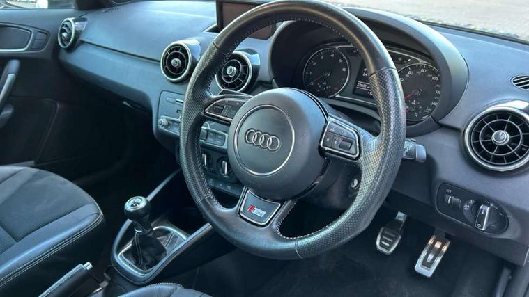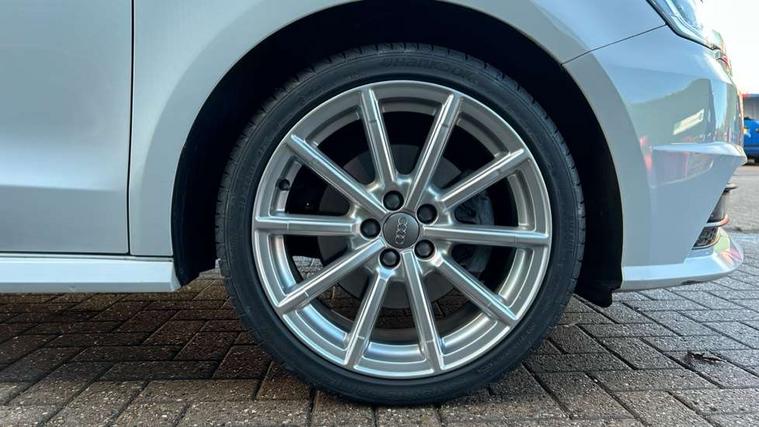 Cruise control, Driver's information system, Electro-mechanical PAS, Low washer fluid indicator, Service interval indicator, Voice control system, Additional SD card reader, Audi music interface, Bluetooth audio streaming, DAB Digital radio, Adaptive brake lights, Body coloured bumpers, Body coloured door mirrors, Electric adjustable door mirrors, Electric front windows, Electric rear windows, Front fog lights, Heat insulating glass, Heated door mirrors, Heated rear windscreen, Polished stainless steel tailpipe, Rear wiper, Roof spoiler, S Line body styling, Xenon plus headlights including automatic headlights, LED daytime running lights, LED rear lights, dynamic range control and headlight washers, 12V Accessory socket in centre console, 3 rear seats, Adjustable rear head restraints, Black cloth headlining, Cupholders in centre console, Door sills trims with aluminium inlays, Front floor mats, Front head restraints, Front sports seats, Height adjustable front seats, Isofix attachments on outer rear seats, Jack and tool kit, Leather gear knob, Leather handbrake, Lumbar adjustment for front seats, Rake/reach adjustable steering wheel, Split folding rear seats, 3x3 point rear seatbelts, ABS/EBD, Brake assist function, Driver and passenger side airbags, Driver/Front Passenger airbags, EDL, ESP with ASR, First aid kit, Front and rear seatbelt reminder, Front passenger airbag deactivation, Head airbags, Height adjustable front seatbelts, Tyre pressure monitor, Warning triangle, Locking wheel bolts, Remote central locking with 2 remote folding keys, Thatcham category 1 alarm + immobiliser, Tyre repair kit,