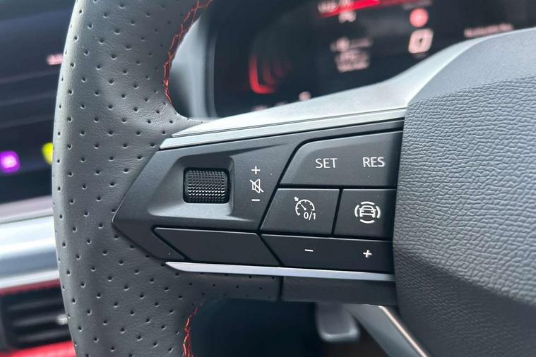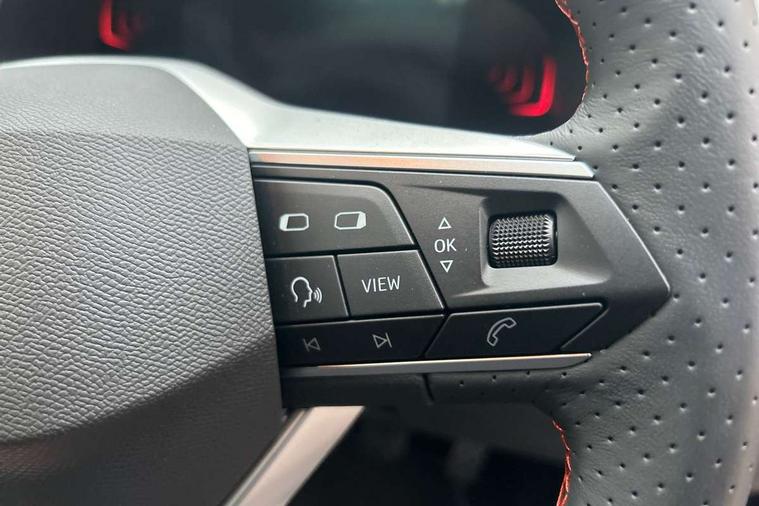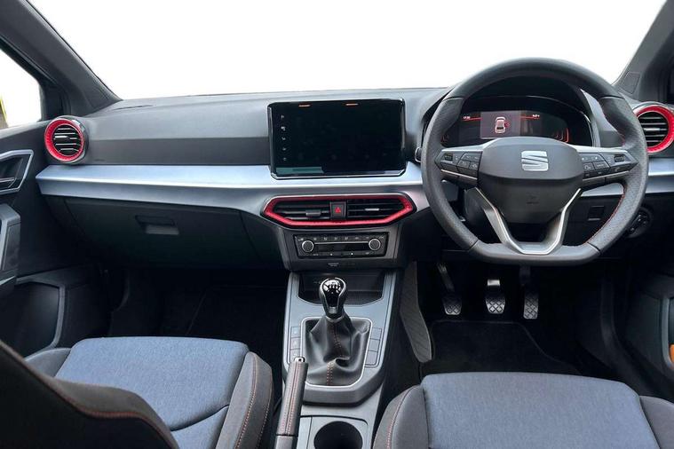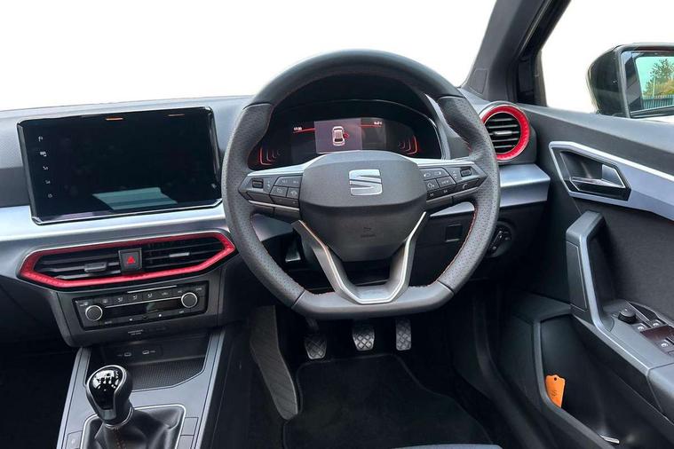 'Lights On' Reminder warning buzzer, 8" Digital cockpit, 9.2" touchscreen navigation system with type C USB socket, Voice control and DAB/AM/FM radio, Auto start and stop system, Bluetooth audio streaming with handsfree system, Digital clock, E-call, Full link smartphone integration with mirror link, wireless apple carplay, Google android auto + USB Type C cable for apple and android devices, Lane assist, Low fuel warning light, Outside temperature gauge, Power Steering, Rear parking sensor, Seat connect plus with safety, service, remote and online, SEAT drive profiles and ECO function, SEAT logo boot release, Speed limiter, Traffic sign recognition, Trip computer, Sports suspension, Auxiliary input socket, Radio/MP3 player, SD card slot, Steering wheel mounted controls, Anti theft roof antenna, Auto dimming rear view mirror, Automatic rain sensing wipers, Black door mirror caps, Body colour bumpers, Body colour door handles, Brilliant black window surrounds, Dark tinted rear windows, Electric adjustable/heated/folding door mirrors, Electric front windows, Electric headlight adjustment, Electric rear windows, Front/rear fog lights, FULL LED automatic headlights with dynamic headlight range control, coming and leaving home, LED daytime running lights, LED 3rd brake light, LED tail lights, Rear roof spoiler with FR twin exhausts, Rear side wing doors, Rear wiper, 3 seat bench in 2nd row, 60/40 split folding rear seat, Ambient interior lighting, Chrome detailing and black headlining, Cloth upholstery, Dual zone climate control with combination filter, Front courtesy lights, Front cupholders x 2, Front reading lights, Gear shift indicator, Glovebox, Height adjustable front and rear headrests (five), Height adjustable front seats, Height/reach adjust steering wheel, Illuminated air vent surrounds, Illuminated boot, Instrument lighting with brightness control, Isofix, Leather multifunction flat bottomed sports steering wheel, Passenger sunvisor, Single front passenger seat, Sports seats, Sunvisors with mirror and driver side card holder, Safety and driving pack (S) - Ibiza, 3 point seatbelts on all 3 rear seats, ABS, Active front headrests, Child locks on rear doors, Electronic stability control, Energy recovery system, Front driver and passenger side airbags with curtain airbag and front passenger airbag deactivation, Hill hold control, Multi-Collision braking, Seat belt reminder for front and rear seats, Tiredness recognition system, Tyre pressure monitoring system, Locking wheel bolts, Perimeter alarm and interior monitoring with backup horn and tow away protection, Remote central locking + deadlocks, 17" Alloy wheels in Brilliant silver,