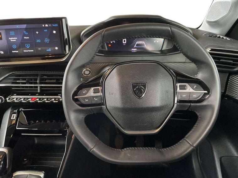 Bluetooth telephone facility, Drive mode selection(Eco/Normal), Driver attention warning, Emergency call service, Exterior temperature indicator with ice warning, Front and rear parking sensors, Multi function trip computer, Pedestrian collison, PEUGEOT i-Cockpit with 10" configurable colour head up instrument panel, PEUGEOT i-Cockpit with 10" HD capacitive colour touchscreen, PEUGEOT i-Cockpit with compact steering wheel, PEUGEOT SOS and assistance, Push button start, Smart phone docking station, Speed limit recognition and recommendation, Start/stop system, Wireless mirror screen with apple carplay and android auto, 6 Speakers - 2 tweeters and 4 door speakers, DAB Digital radio, Peugeot i-connect infotainment system - 10in HD touchscreen, AM/FM/DAB digital radio, Wifi Mirroring, Bluetooth & 2 USB connection, USB-A socket (x1) and USB-C socket (x1) - rear, USB-C data and charge socket and USB-C charge socket in front, Voice recognition for radio, navigation and telephony features, 2 X Rear number plate lights, Acoustic windscreen, Antenna - Gloss Black 'fin' design, Automatic hazard light activation upon heavy brake application, Body coloured exterior door handles, Dark tinted rear side and tailgate windows, Diamond black rear spoiler (roof), Eco LED headlights with electric height adjustment, Electric heated and power folding door mirrors with courtesy floor lighting, Electrochrome rear view mirror, Gloss black B pillar, Gloss black door mirror shells, Gloss black front bumper grille with body colour accents, Gloss black rear cluster connecting strip, Headlights left on audible warning, LED 3 claw horizontal rear lighting signature with daylight function and LED brake lights, LED daytime running lights with distinctive 3 claw signature, LED Rear lighting with distinctive 3 claw horizontal signature with daylight function, LED third brake light, Model designation badges front and rear in basalt grey, One touch electric front/rear windows with pinch protection, Rear bumper with gloss black finish, Rear reversing lights, Rear side wing doors, Rear windscreen wiper triggered automatically in reverse gear, Roof spoiler, Tailgate with heated rear windscreen and wiper blade, Variable front intermittent wipers, 1/3 to 2/3 split folding rear seats, 12V socket, 3 seat bench in 2nd row, Automatic mono zone climate control air condition, Boot lighting, Driver and front passenger comfort seats, Driver and front passenger seat manual adjustment in longitudinal and back rest angle, Driver seat mechanical height adjustment, Electric power steering with reach and rake adjustable steering column, Front centre armrest with storage compartment, Front interior light with 2 reading spotlights, Gear shift indicator, Grained black DRL and lower/upper bumper trim, High centre console with 2 cup holders, Map pockets on the backs of the front seats, Multifunction leather steering wheel, Piano keys gloss black plated toggle switches to access main functions of the vehicle, Quartz contrast stitching to front and rear door armrest, Rear centre headrest, Roof lining - light grey, Seatbelt unfastened on the move audible and visual alert for front and rear seats, Single front passenger seat, Tri material cloth/leather upholstery, Visibility pack - 208, 2x Isofix child seat fitting on outer rear seats, 3 rear 3 point seatbelts, ABS (Anti-lock Braking System) with (EBD) Electronic Brakeforce Distribution, Advance emergency braking system, Child locking functionality on rear doors, Driver and front passenger airbag with passenger airbag deactivation, Driver/front passenger side airbags, Electric parking brake, ESP with Hill Assist, Front and rear curtain airbags, Front and rear disc brakes, Front optimised safety headrests and 3 x rear retractable headrests with height adjustable, Front three point retractable seatbelts with force limiters, Remote plip(x2) for locking, unlocking, includes emergency key blade, Tyre pressure monitoring system, Acoustic vehicle alert system (AVAS), Alarm - Connected, volumetric , perimetric, anti lift sensor, Automatic door locking when moving off, Deadlock, Electronic code immobiliser, General safety regulation, Remote central locking, Carbon effect Dashboard, front and rear door panel finish, 16" Noma two tone diamond cut alloy wheels, Tyre puncture repair kit,