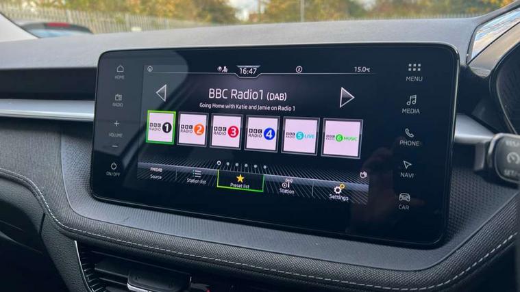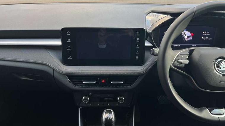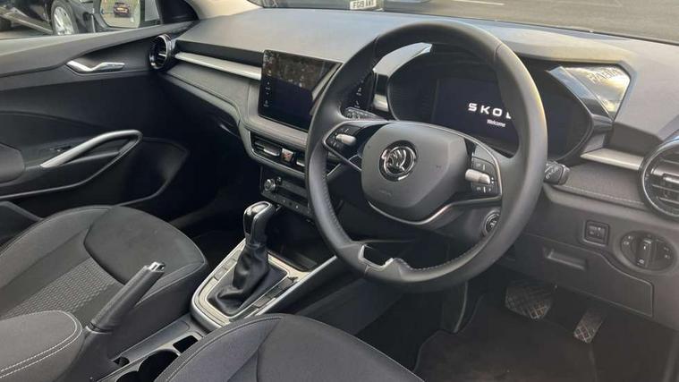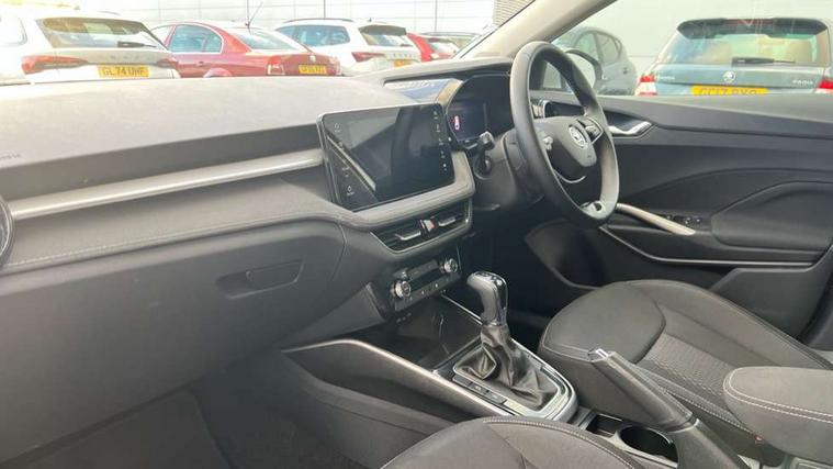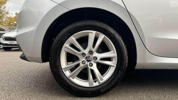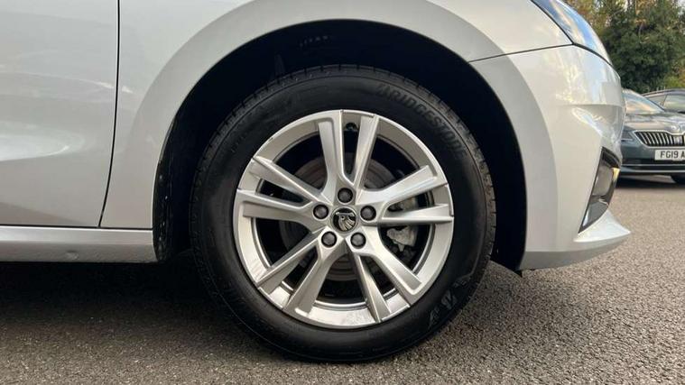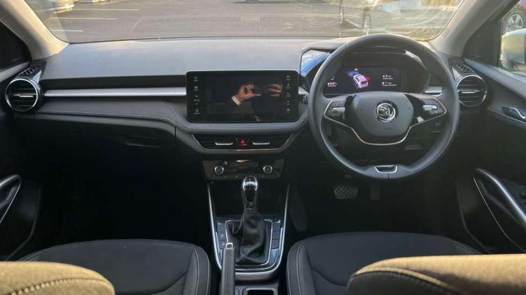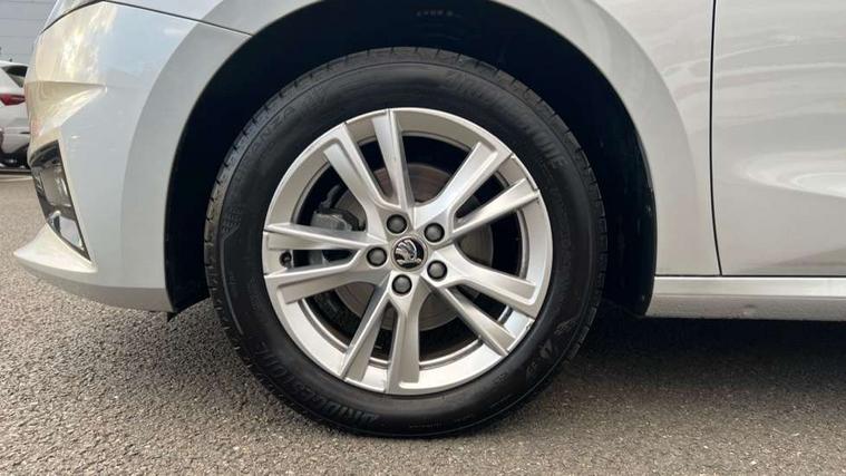 Advanced driver attention and drowsiness monitor, Bluetooth connection, Electromechanical power steering, Exterior temperature gauge, Service interval indicator, Traffic sign recognition, Virtual cockpit with 10.25" colour display, Wireless SmartLink for Apple CarPlay and Android Auto, 6 Speakers (4 in front and 2 in rear), 9.2" colour display skoda navigation system with voice control and web radio, Auxiliary socket for external MP3 player, DAB digital radio reception, Auto dimming rear view mirror, Body colour door mirrors, Body coloured bumpers, Chrome window surround, Door mirror integrated indicators, Front and rear electric windows, Front window wiper intermittent control, Headlight range control - Automatic, Ice scraper in fuel cap, LED daytime running lights with coming and leaving home feature, LED rear lights, Privacy glass, Rear LED fog light, Rear side wing doors, Rear window wiper with washing nozzles, Roof mounted spoiler, SKODA tailgate lettering in chrome, Third brake light, 2 reading lights in front and 2 reading lights in rear, 3 rear headrests, Backrest split and folding, Central console with removable cup holder and storage box, Chrome handbrake release button, Comfort seats, Door sills with fabia badging, Dual zone air conditioning with climatronic electronic control, Fabric upholstery, Front centre armrest, Gearshift knob/handle in leather, Hand brake lever handle in leather, Height adjustable front headrests, Height adjustable front seats, Height adjustable steering wheel, ISOFIX and TopTether anchorage points to the outer rear seats, ISOFIX and TopTether on the front passenger seat, Luggage compartment lighting, Manually adjustable lumbar support in front seats, Metallic grey interior door handles, Pollen filter, Rear seat bench unsplit, Single front passenger seat, Storm grey headlining, Sun visors with mirror and airbag label on passenger side, Textile floor mats, Ticket holder, Umbrella in drivers door, 3-point height adjustable front seats belts with pretensioner and force limiter, Automatic warning lights in case of crash, Driver and passengers airbag with switch off function, e-Call+, ESC including ABS, MSR, ASR, EDS, HBA and XDS, Front and rear seat belt warning, FRONT ASSIST (AEB City and AEB Inter Urban), Front side airbags, Head airbags, Hill hold control, One tone horn, Pedestrian protection, Three rear 3-points safety seat belts with pretensioner and force limiter including stop function for outer rear seat belts, Tyre pressure monitoring system, Anti-theft alarm system including immobiliser, interior monitoring, backup horn, and towing protection, Central locking with radio remote control, interior controls, SAFE function and 2 foldable keys, Chrome edged air vents, Metallic grey central console cover, Metallic grey upper decorative trim, Satin black door and side trim panel in front, Textile microsuede grey lower decorative trim with art grey stitching, Anti-theft wheel bolts protection, Super-low rolling resistance tyres,