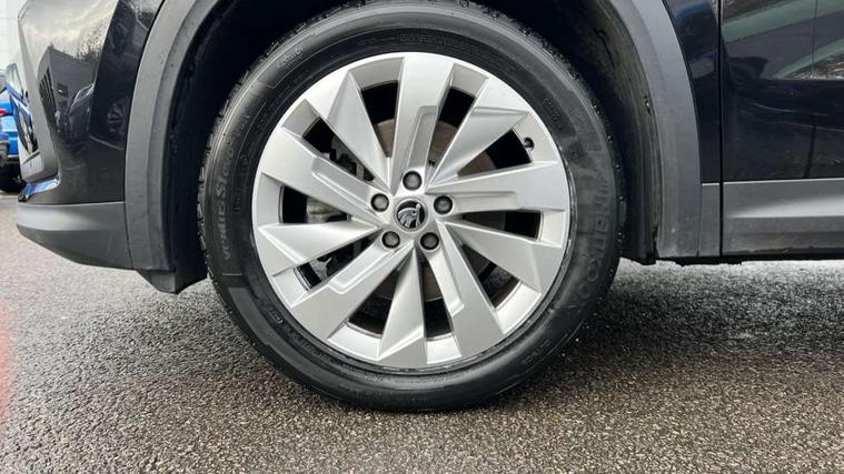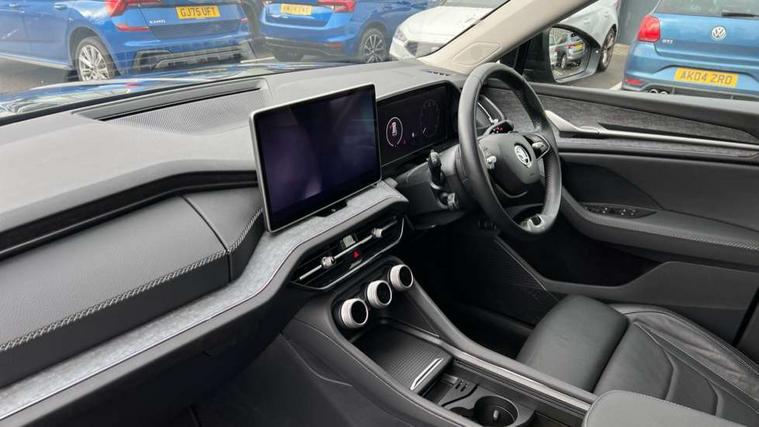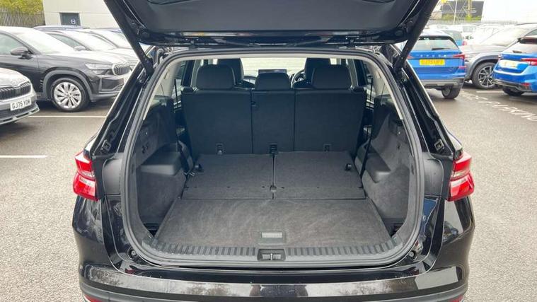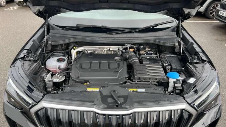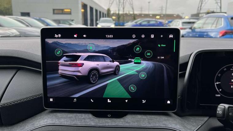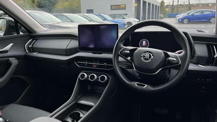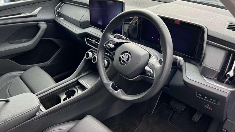 13" satellite navigation touchscreen display, Blind spot detection with door exit warning, Bluetooth system, Drive mode selector, Driver alert with fatigue sensor, Driver drowsiness alert system, Dry display cleaner, e call+, Front cross traffic assist, Lane assist, PAS, Rear traffic assist, Tailgate unlocking from outside, Traffic sign recognition, USB C Port x 2 in front centre console, Virtual Cockpit - 10.25" digital display, Voice control system, Wireless charging for two smartphones (15W) with cooling function, Wireless SmartLink for Apple CarPlay and Android Auto, Stop/start function, 2x USB-C in the rear, DAB Digital radio, Aero front windscreen wipers with intermittent function, Auto dimming rear view mirror, Black wheel arch surrounds, Body colour bumpers, Body colour door mirrors and handles, Cornering light and poor weather light, Electric folding /adjustable/separted heated/folding door mirrors, auto dimming with boarding sports and memory function, Electric front and rear windows, Heat insulating glass in windshield, Heated rear window, Ice scraper in fuel tank cap, Invisible tailpipe, LED daytime running lights, LED rear fog light, LED third brake light in rear spoiler, Light assistant with automatic headlight control and coming home feature, Logo projection in door mirrors, Privacy glass, Rear side wing doors, Rear spoiler, Rear window wiper, Safety reflectors on front and rear doors, Window control switches with black trim, Windscreen wipers with rain sensor, Without engine designation, 1.5l bottle holder points in all door, 12V socket in boot, 1x centre rear reading light, 2 seat bench in 3rd row, 3 configurable smart dials with 32mm coloured display, 3 seat bench in 2nd row, 4 foldable roof handles with rear coat hooks, Automatic gear selector on steering wheel, Chrome interior door handles, Driver/front passenger reading lights, Fabric headlining, Fixed bench 40:60:40 split folding backrests, Front and rear floor mats, Front centre armrest with jumbo box storage compartment, cup holder and 12V socket, Front courtesy lights, Height adjustable front headrests, Interior ambient lighting, Isofix child seat fittings in outer rear seats and front passenger with top tether, Manually adjustable steering column, Pollen filter, Rear centre armrest with cupholders, Rear seat boot backrest release, Retractable luggage compartment cover, Single front passenger seat, Sliding trunk cover, Small Bags on the inner sides of the front backrests, Storage pocket including mobile phone pockets on the backs of the front seats, Sunvisors with illuminated vanity mirrors, Three rear height adjustable headrests, Ticket holder on A Pillar, Tri zone climate control, Umbrella in door panel x1 made from sustainable materials, Upper and lower glovebox with card holder and coin compartment, USB C port by rear view mirror for charging only (15W), Exterior styling package - Kodiaq, Auto door release and activation of warning lights in the event of an accident, Driver and front passenger airbag with knee airbag and front passenger airbag deactivation, Electric child locks, Electronic parking brake, ESC (incl. ABS+EMD+MSR+ASR+EDL+HBA+DSR+RBS+ESBS+MCB+TSA+XDS), Front assist with braking reaction to vehicles, pedestrians and cyclists, Front disc brakes, Fuel cut off safety device, Height adjustable front 3 point seatbelts + pretensioners, Hill hold control, Junction assist with automatic emergency braking, Rear disc brakes, Safety vest holder in door, Seat belt reminder for all seats, Three point rear seat belts, Two tone horn, Tyre pressure monitor, Anti-theft wheel bolts, Immobiliser, Remote central locking with 2 keys, Black/grey fabric with green cross stitching on dashboard, Swan feathers grey dashboard and door decorative inserts, Breakdown kit,