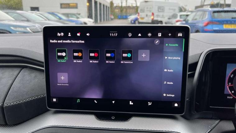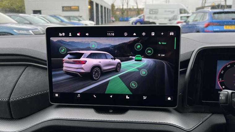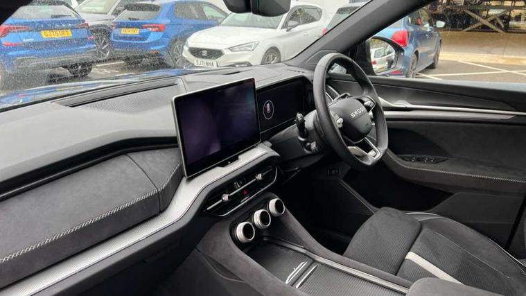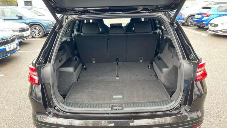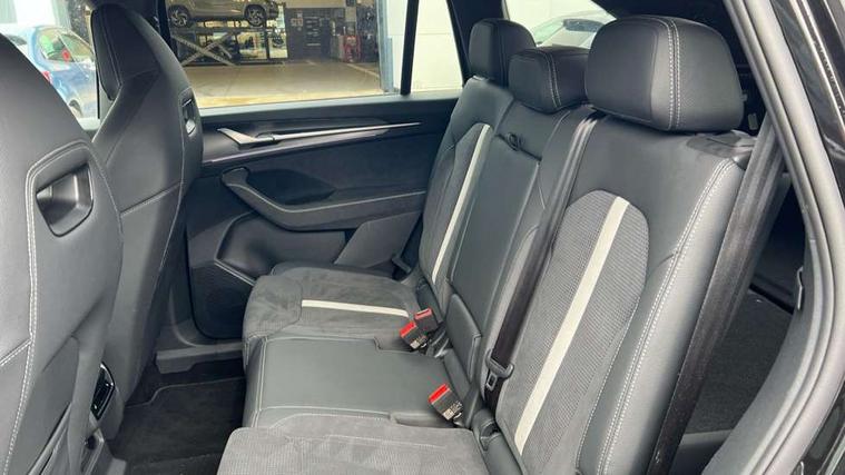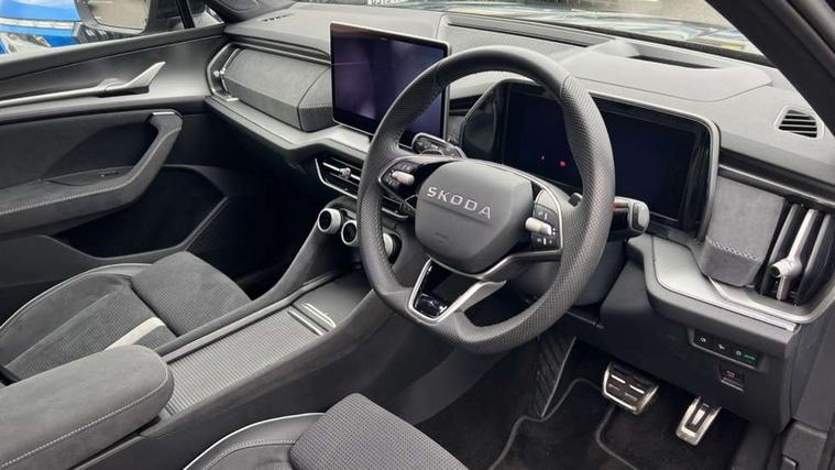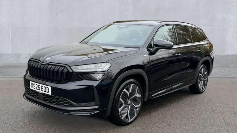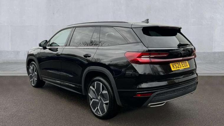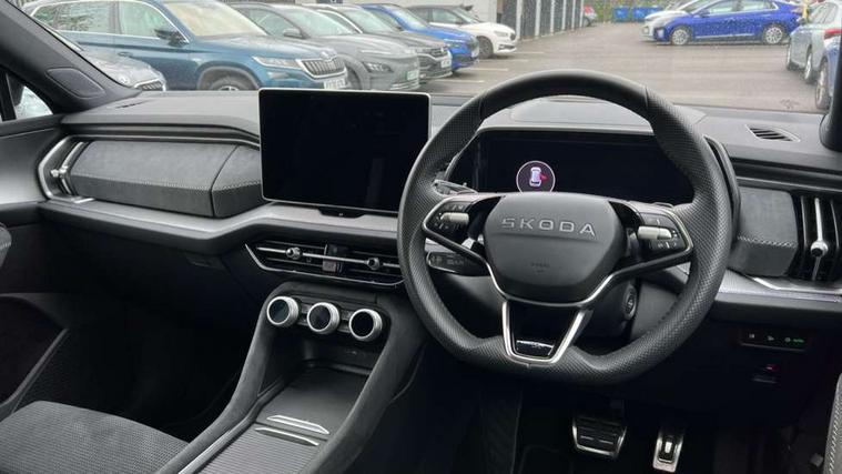 13" satellite navigation touchscreen display, Blind spot detection with door exit warning, Bluetooth system, ChatGPT functionality, Driver alert - Fatigue and drowsiness monitor, Dry display cleaner, Emergency call, Front and rear parking sensors, Front cross traffic assist, Lane assist, Off road modes, PAS, Rear traffic assist, Tailgate unlocking from outside, Traffic sign recognition, USB C Port x 2 in front centre console, Virtual Cockpit - 10.25" digital display, Voice control system, Wireless charging for two smartphones (15W) with cooling function, Wireless SmartLink for Apple CarPlay and Android Auto, Stop/start function, 2x USB-C in the rear, DAB Digital radio, Aero front windscreen wipers with intermittent function, Auto dimming rear view mirror, AWL (all weather lighting) and all weather light with cornering function, Black diffuser and decorative tailpipe with a unique dark chrome finish, Black roof rails, Black sports styling including front grille and window surrounds, Black wheel arch surrounds, Body colour door handles, Cornering light and poor weather light, Electric folding /adjustable/separted heated/folding door mirrors, auto dimming with boarding sports and memory function, Electric front and rear windows, Exterior black decorative trims, Front and rear sports bumpers including lower rear chrome strip, Gloss black door mirrors, Gloss black window frame and D pillar, Heat insulating glass in windshield, Heated rear window, Ice scraper in fuel tank cap, LED daytime running lights, LED third brake light in rear spoiler, Light assistant with automatic headlight control and coming home feature, Logo projection in door mirrors, Privacy glass, Rear roof spoiler, Rear side wing doors, Rear window wiper, Red decorative strip between rear LED lights, Safety reflectors on front and rear doors, Sportline badge on front fenders, Tailgate lettering in Black, Unique dark chrome design logo on alloy wheels, Window control switches with black trim, Windscreen wipers with rain sensor, Without engine designation, 1.5l bottle holder points in all door, 1x centre rear reading light, 2 seat bench in 3rd row, 3 configurable smart dials with 32mm coloured display, 3 seat bench in 2nd row, 4 foldable roof handles with rear coat hooks, Aluminium pedals, Ambient interior lighting - Dashboard, front-door stowage compartments, front and rear door panels and footwell lighting, Automatic gear selector on steering column, Chrome interior door handles, Driver/front passenger reading lights, Fabric headlining, Fixed bench 40:60:40 split folding backrests, Front and rear floor mats, Front centre armrest with jumbo box storage compartment, cup holder and 12V socket, Front sport seats, Height adjustable front headrests, Interior black decorative trims, Isofix child seat fittings in outer middle row rear seats and front passenger with top tether, Manually adjustable steering column, Pollen filter, Rear centre armrest with cupholders, Rear seat boot backrest release, Single front passenger seat, Skoda lettering on steering wheel, Storage pocket including mobile phone pockets on the backs of the front seats, Sunvisors with illuminated vanity mirrors, Three rear height adjustable headrests, Ticket holder on A Pillar, Tri zone climate control, Umbrella in door panel x1 made from sustainable materials, Upper and lower glovebox with card holder and coin compartment, USB C port by rear view mirror for charging only (15W), Acoustic package - Kodiaq, Performance package - Kodiaq, Sportline design selection pack - Kodiaq, Auto door release and activation of warning lights in the event of an accident, Driver and front passenger airbag with knee airbag and front passenger airbag deactivation, Electric child locks, Electronic parking brake, ESC (incl. ABS+EMD+MSR+ASR+EDL+HBA+DSR+RBS+ESBS+MCB+TSA+XDS), Front assist with braking reaction to vehicles, pedestrians and cyclists, Front disc brakes, Fuel cut off safety device, Height adjustable front 3 point seatbelts + pretensioners, Hill hold assist, Junction assist with automatic emergency braking, Rear disc brakes, Safety vest holder in door, Seat belt reminder for all seats, Three point rear seat belts, Two tone horn, Tyre pressure monitor, Alarm with interior monitoring and tilt sensor with safe function, Anti-theft wheel bolts, Immobiliser, Remote central locking with 2 keys, 20" Rila anthacite polished alloy wheel with black matte aero covers,