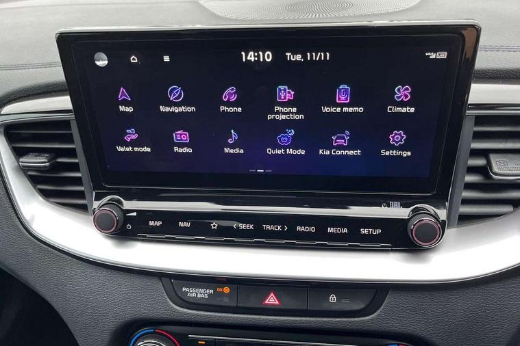 10.25" touchscreen satellite navigation, 12.3" TFT supervision cluster display, Apple car play/Android Auto with voice control, Blind spot Collision Warning (BCW), Bluetooth with Voice Recognition & Music Streaming, Drive mode select (Normal and Sport), Driver attention warning + (DAW) with leading vehicle departure warning, Emergency call service, Emergency stop signalling system, Forward Collision-Avoidance Assist (FCA) - City/Pedestrian/Cyclist, Intelligent speed limit warning, Kia connect UVO, Lane Following Assist (LFA), Lane keep assist, Manual speed limit assist, Motor driven power steering, Rear cross-collision assist, Reversing camera system with dynamic guidelines (Integrated into centre fascia screen), Smart cruise control with stop/go functionality, Smart park assist system (SPAS) with parallel/perpendicular with front/rear parking sensor, Trip computer, Wireless Mobile Phone Charger, Intelligent Stop and Go, DAB Radio with MP3, Illuminated USB ports, JBL Premium sound system with 8 speakers, Steering wheel mounted controls, USB Fast Charger in Front Centre Console, USB type A port, All-round Electric Windows with Front Auto Up & Down Function, Auto dimming rear view mirror, Automatic defog system, Automatic headlights control, Body colour bumpers, Body colour exterior door handles, Body coloured and dark chrome rear skid plate, Body coloured side sill mouldings, Dark chrome window surround, Electric adjustable/heated/folding door mirrors with LED Indicators, Heated rear window with timer, High beam assist, High gloss black and dark chrome radiator grille, High gloss black door mirrors, High Gloss Black rear spoiler - roof, LED daytime running lights, LED front fog lights, LED Headlights, LED High-mounted Brake Light, LED honeycomb rear light, LED rear combination lights, Panoramic sunroof with tilt/slide function and automatic electric roll blinds, Privacy glass (rear side windows and tailgate), Rain sensing front wipers, Rear side wing doors, Rear wash/wipe, Satin chrome dual exhaust trim, Tinted glass, Wide view drivers door mirror, Windscreen Washer Level Warning, 1 x Front 12V socket, 12V power socket in luggage compartment, 3 seat bench in 2nd row, 3 x passenger assist grips, 60/40 split folding rear seat, All-round height adjustable headrests, Aluminium pedals, Centre console storage box/armrest, Cupholders in centre console, Cupholders in rear armrest, Dash illumination dimmer switch, Door courtesy lamps, Driver & Front Passenger Sunvisors with Vanity Mirror Illumination & Ticket Holder, Driver + front passenger electric lumbar support, Driver's power seat height adjuster, Dual Height Luggage Area Floor, Dual zone automatic air conditioning, Faux leather door centre trim, Front and rear door storage, Front cabin map light with sunglasses case, Front Passenger Seat Height Adjuster, Front seat back pockets, Heated front seats, Heated rear seats, Heated steering wheel, Interior door lock/unlock function, ISOFIX Child seat top tethers and anchor fixings, Leather D-Cut steering wheel, Leather handbrake, Leather/suede upholstery, Luggage area light, Luggage area parcel shelf, Luggage hooks, Memory driver's seat, Rear centre armrest, Rear coat hooks, Single front passenger seat, Tilt/telescopic adjustable steering wheel, All round 3-point seatbelts, Anti-lock braking system (ABS), Brake assist system, Dual front side airbags, Dual horn, EBD - Electronic brakeforce distribution, Electronic parking brake, Electronic stability control (ESC) and vehicle stability management (VSM), Front passenger airbag cut-off switch, Height adjustable front seatbelts, Hill start assist control (HAC), Impact sensing auto door unlocking, Rear door child safety locks, Seatbelt reminder warning, Twin curtain airbags, Twin front airbags, Tyre pressure monitoring system, Alarm system, Engine Immobiliser & Deadlocks, Engine Start/Stop Button with Smart Entry System, Locking wheel nuts, Speed sensitive auto door locking, Satin Chrome Fascia Trim, 18" GT-Line S alloy wheels, Tyre mobility kit,