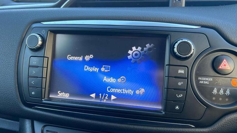 Bluetooth system, Cruise control, Electric boot release, External temperature gauge, Fuel indicator with low level warning, Lights on warning, Push button starter, Rear view camera, Remote fuel flap release, Speed sensitive power steering, Tachometer, Trip computer, 6 speakers, Auxiliary input socket, DAB Digital radio, MP3 player, Radio, Steering wheel mounted audio controls, Touch screen audio system, USB connection, 2 speed front wipers + intermittent wipe, Body colour heated door mirrors, Chrome rear garnish, Colour keyed bumpers, Colour keyed door handles, Drivers window one touch up/down, Electric front windows, Electrically adjustable door mirrors, Follow me home headlights, Front fog lights, Green tinted glass, Headlamp levelling, Heated rear windscreen, LED daytime running lights, LED rear lights, Piano black front grille, Privacy glass, Projector headlamps, Rear spoiler, Rear wiper, Satin chrome fog light surround, Satin chrome front grille surround, 12V Accessory socket, 60/40 split folding rear seat, Boot light, Clean air filter, Driver seat height adjust, Driver's glovebox with lid, Driver/passenger vanity mirrors with covers, Dual zone climate control, Front cupholders x 2, Front map reading lights, Front seats with lumbar support, Gioco cloth upholstery, Height adjustable front head restraints, Height adjustable rear seat head restraints (x3), Interior silver door handles, Isofix system on outer rear seats, Leather gear knob, Leather steering wheel, Rear cupholder, Removable rear parcel shelf, Tilt/telescopic steering column, 3 point seatbelts on all rear seats, ABS+EBD+Brake assist, Collapsible pedal support, Curtain airbags, Door open warning, Driver and passenger airbags, Drivers knee airbag, Front side airbags, Height adjustable front seatbelts with pre-tensioners and load limiters, Hill start assist control (HAC), Passenger airbag deactivate switch, Rear child proof door locks, Seatbelt warning lamp and buzzer, Tyre pressure monitoring system, Vehicle stability control VSC + traction control, Ventilated front disc brakes, Engine immobiliser, Remote central locking, Instrument panel in Dark grey, 16" alloy wheels, Space saver spare wheel,