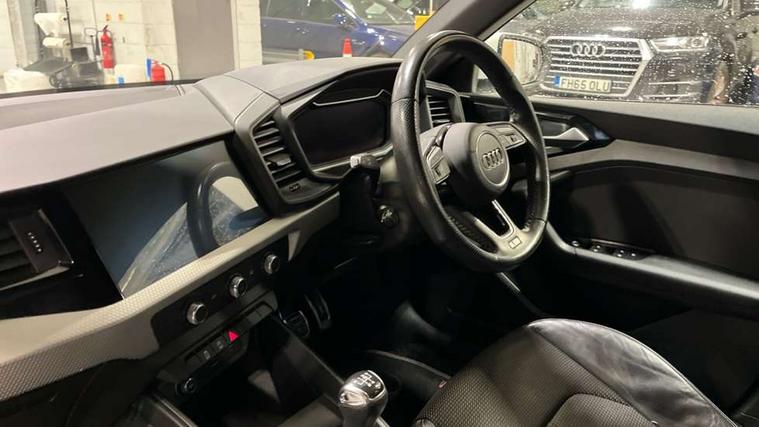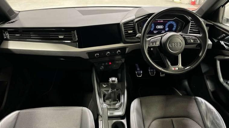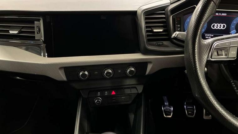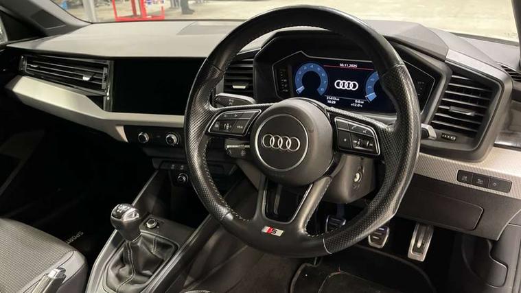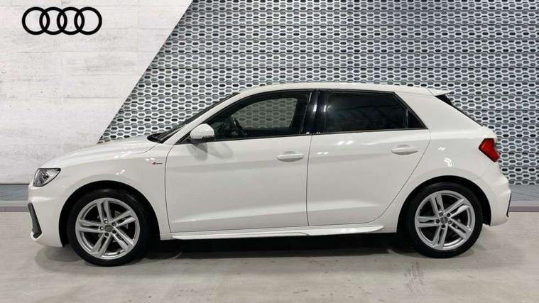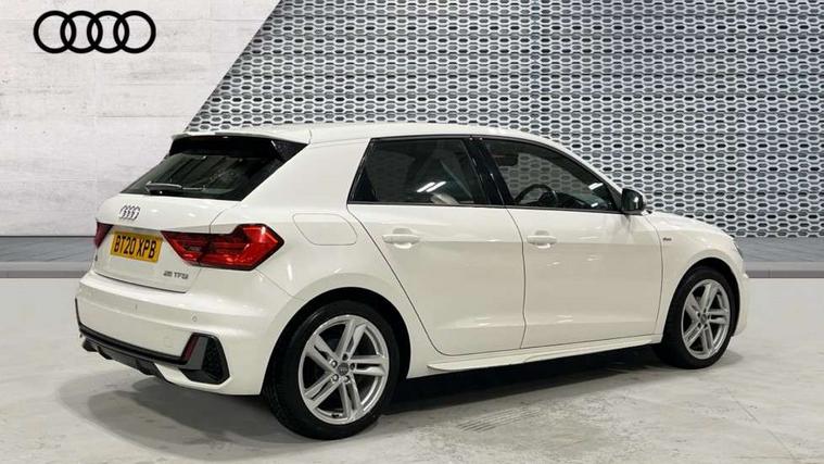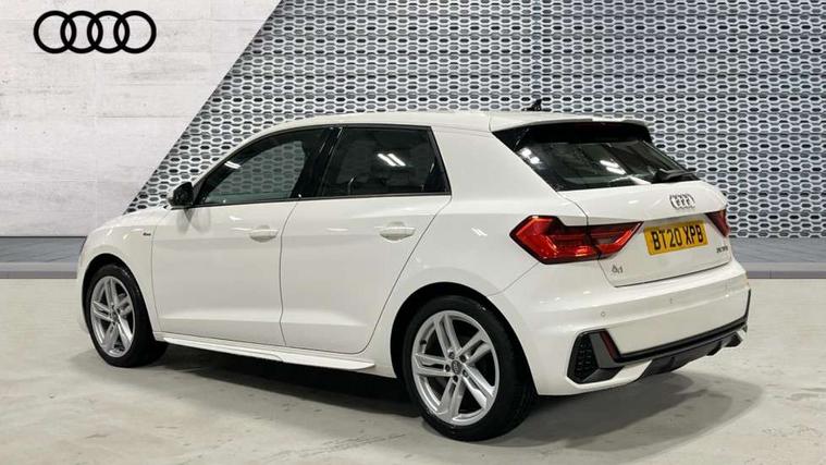 10.25" Digital instrument cluster display classis style instrument dials + speed, odometer, time, outside temperature, telephone menu + fuel level warning, Audi connect safety emergency and service including E-call, Audi smartphone interface with connect compatible smartphone via USB directly MMI display + Nav, music, third party apps controlled via MMI controller, Automatic start/stop system, Bluetooth interface, Cruise control, Driver's information system, Electromechanical power steering, Lane departure warning system, Rear parking sensor, Service interval indicator, Speed limiter, Voice control system, Washer fluid level indicator, Sports suspension, 1 x SDXC card reader, 1 x USB type C and 1 USB type A charging points, DAB Digital radio, MMI radio plus with 8.8" colour MMI display screen and MMI touch, Auto dimming rear view mirror, Body coloured door mirrors, Door sills with aluminium inlays and S Line logo, Electric front and rear windows, Electrically adjustable, heated, folding door mirrors with integrated LED side indicator, Front side air inlets in grained matt black and C frame in titanium black, Heat insulating glass windscreen and side windows, Heated rear windscreen, LED headlights with LED rear lights + dynamic rear indicators + headlight adjustment and high beam, turning light + LED daytime running lights, Radiator grille and rear diffuser in matt titanium black, Radiator protective grille frame in matt aluminium silver, Rain and light sensors, Rear fog lights, Rear wiper, S line badges on front wings, Side front spoiler lips in grained matt black, 12V socket in centre console with two cup holders, 3 rear seats with headrests, 40:60 Split folding rear seat or folded fully, Black cloth headlining, Driver and passenger seat with manual height adjust with forward and backwards adjustment, Front and rear black floor mats with contrast stitching in fine silver, Front head restraints, Height and reach adjustable steering wheel, ISOFIX child seat mounting for front passenger and outer rear seats including top tether attachment point of outer rear seats, Leather gear knob with aluminium trim, Luggage compartment light with front and rear reading lights, Manually adjustable lumbar support in front seats, Stainless steel pedals, LED interior lighting pack - A1, Luggage compartment pack - A1, S line exterior styling pack - A1 Sportback, 3x3 point rear seatbelts, Audi pre-sense front with pedestrain and cyclist recognition, Brake assist function, Driver and front passenger airbag with front side and head airbags, Electronic Stability Control including ABS, EBD, ASR and EDL, Front and rear seatbelt reminder, Front passenger airbag deactivation switch, Hill hold assist, Seatbelt height adjustment for front seats, Seatbelt monitoring, Tyre pressure warning light, Warning triangle and first aid kit, Anti theft alarm, Anti theft wheel bolts and loose wheel warning, Immobiliser, Remote central locking with 2 foldaway keys, Aluminium trim for control switches, air vents and digital instrument cluster, Silver grey inlays polygon structure in diamond paint finish, Structured grey accent areas including air vents, door handle recesses and centre console in quartz paint finish,