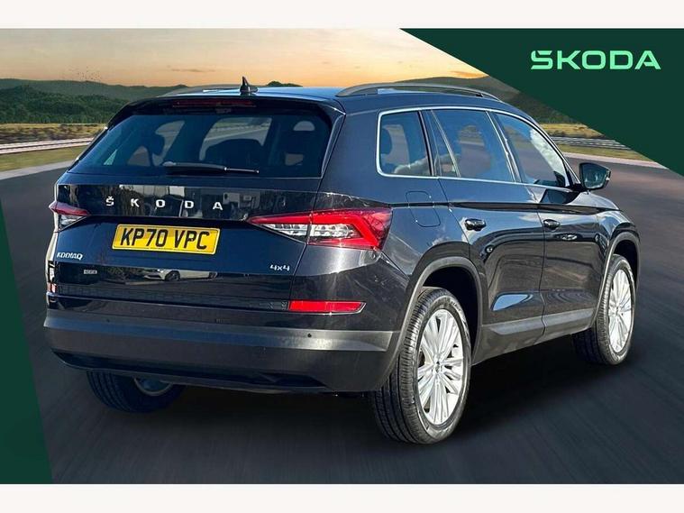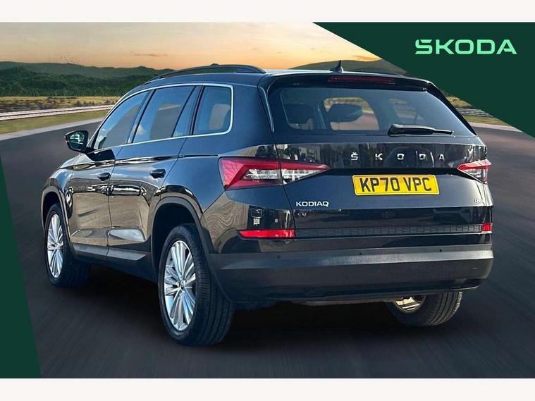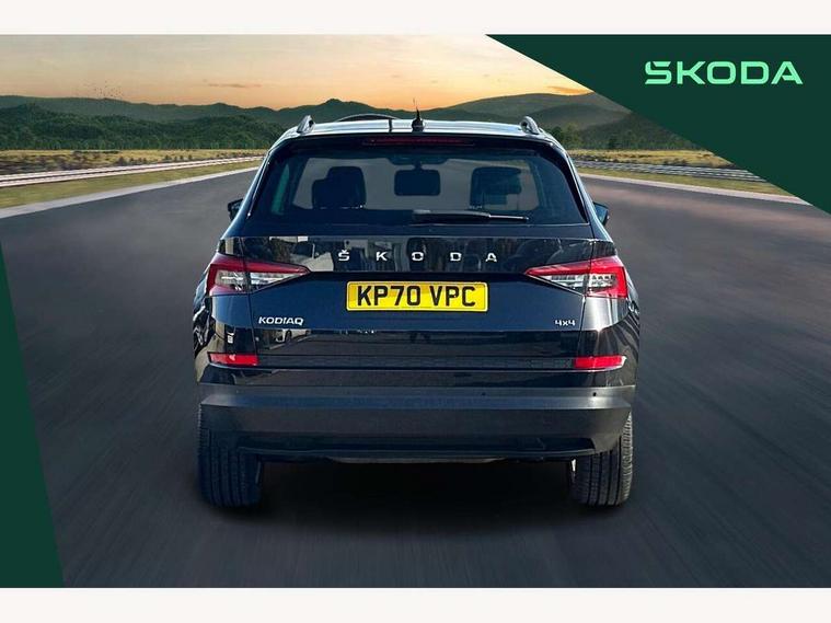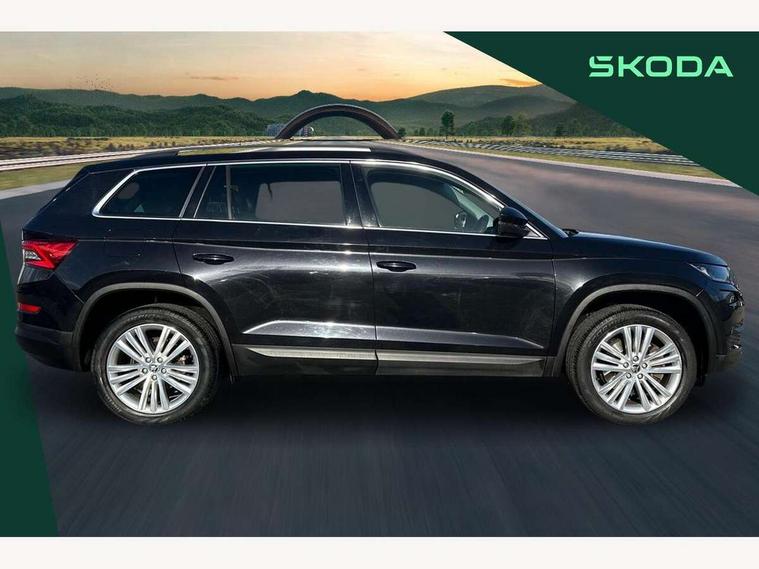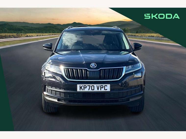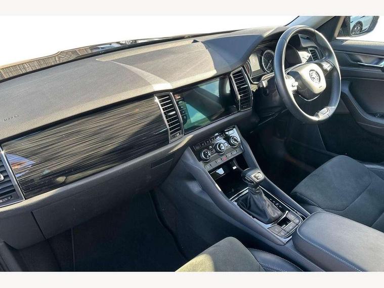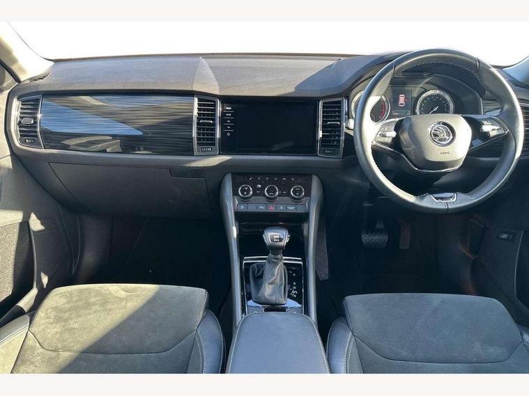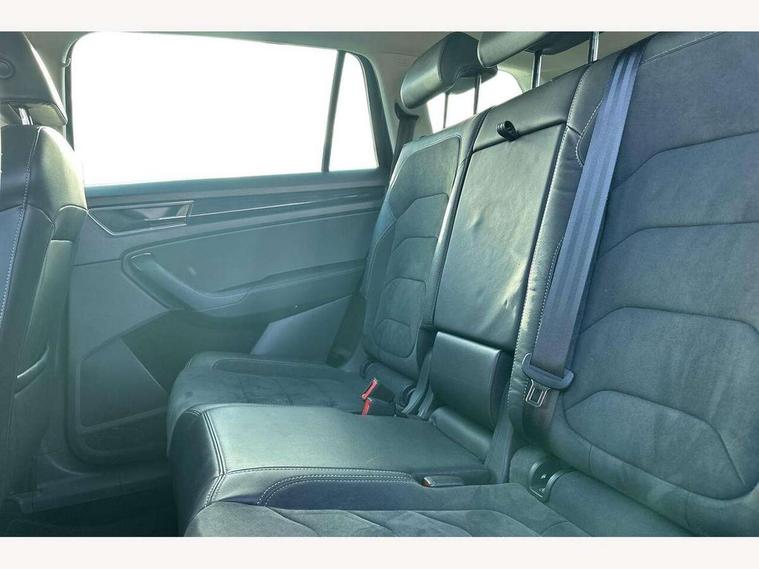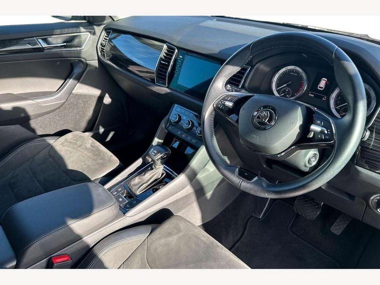 Bluetooth system, Digital voice enhancement, ECO Stop/start function, Exterior temperature indicator, Map care, Smartlink wireless for apple carplay and wired for android auto, Speed limiter, USB C Port x 2 in front centre console, Bolero Radio, DAB Digital radio, DVD System, Aero front windscreen wipers with intermittent function, Aero rear window wiper, Auto dimming rear view mirror, Automatic activation of hazard warning lights, Black electric window control buttons, Black wheel arch surrounds, Body colour bumpers, Body colour door mirrors and handles, Electric front and rear windows, Electrically adjustable, heated and folding door mirrors, Front and Rear door steps, Full LED Headlights with adaptive front light system and LED daytime running lights, Headlight washers, Heated rear window, Invisible tailpipe, LED front fog lights with static cornering light function, LED rear fog light, LED third brake light in rear spoiler, Light assistant (coming home/tunnel light), Radiator grille frame in black with chrome strip, Rain and light sensors, Rear spoiler, Safety reflectors on front and rear doors, Sunset privacy glass, Without engine designation, 12V socket in boot, 2 rails with 2 hooks including 4 hooks for net programme, 4 foldable roof handles with rear coat hooks, 4 lashing points on luggage floor, 60:40 foldable rear seat with sliding adjustment and backrest angle adjustment, Bottle holders in door panel in the 1.5 litre front and 1 litre rear, Cargo storage compartments, Centre console with open storage box, cup holder and 12V socket, Chrome headlight control button, Chrome interior door handles, Coat hooks on B pillar, Covered storage compartment on driver side, Front and rear door armrest with black adductor trim, Front and rear height adjustable headrests, Front centre armrest with storage compartment, cup holder and 12V socket, Front courtesy lights, Gear shift lever with chrome frame and black gloss insert, Illuminated and cooled glovebox, Illuminated luggage compartment, Isofix child seat fittings in outer rear seats with top tether, Manually adjustable steering column, Net programme in boot (1x horizontal Net, 2x vertical Nets), Overhead glasses storage compartment, Pollen filter, Rear centre armrest with cupholders, Roll up luggage compartment cover with intermediate position, Small Bags on the inner sides of the front backrests, Storage compartment in lower middle instrument panel with closing, Three rear height adjustable headrests, Ticket holder on A Pillar, Umbrella in door panel, Chrome pack - Kodiaq, Auto door release and activation of warning lights, Driver and passenger airbags, Electronic parking brake with hill hold control, Emergency rear braking signal, ESC (incl. ABS+MSR+ASR+EDS+HBA+DSR+RBS+MKB), Front and rear three point safety belt on all seats, Front assist includes AEB city/urban, Front passenger airbag deactivation switch, Front side airbags, Fuel cut off safety device, Head and knee airbags, Rear disc brakes, Safety vest holder in door, Seat belt reminder for all seats, Tailgate unlocking from outside, Two tone horn, Tyre pressure monitor, Warning lights in front doors, Alarm with interior monitoring and tilt sensor with safe function, Immobiliser, Keyless entry and start system (KESSY), Remote central locking,