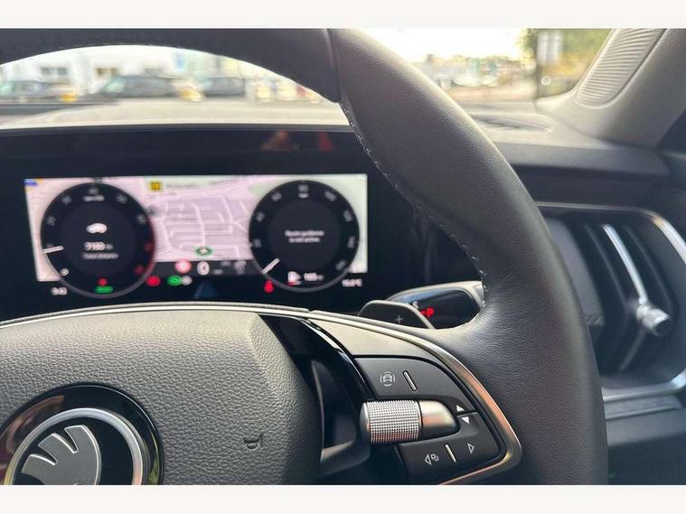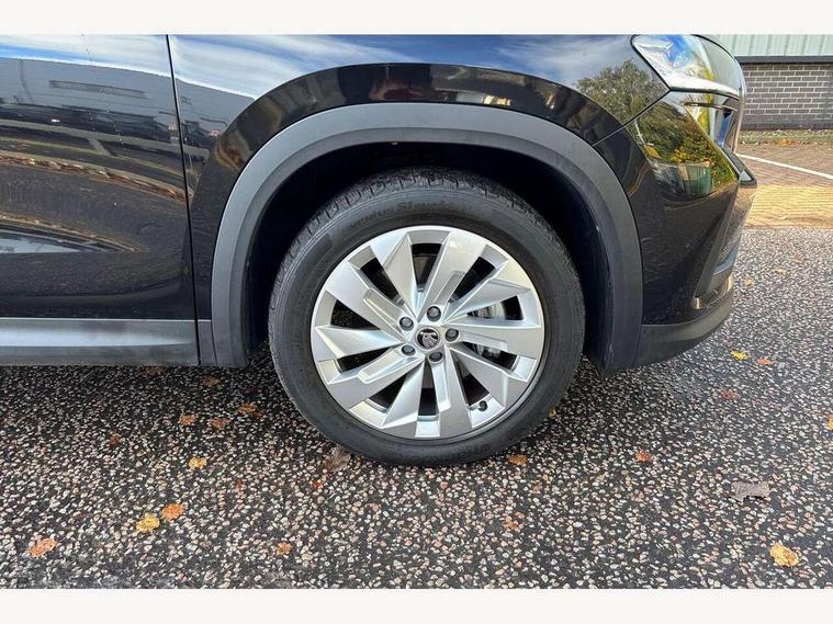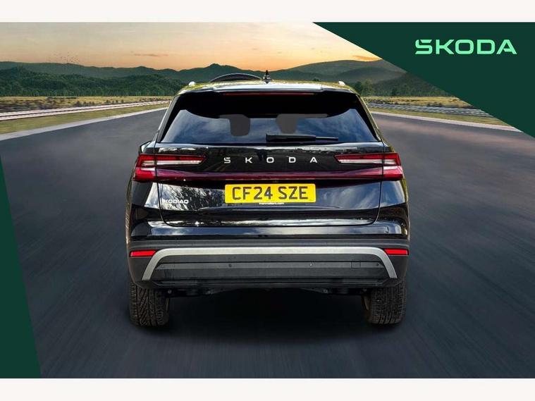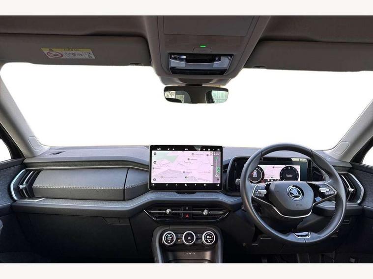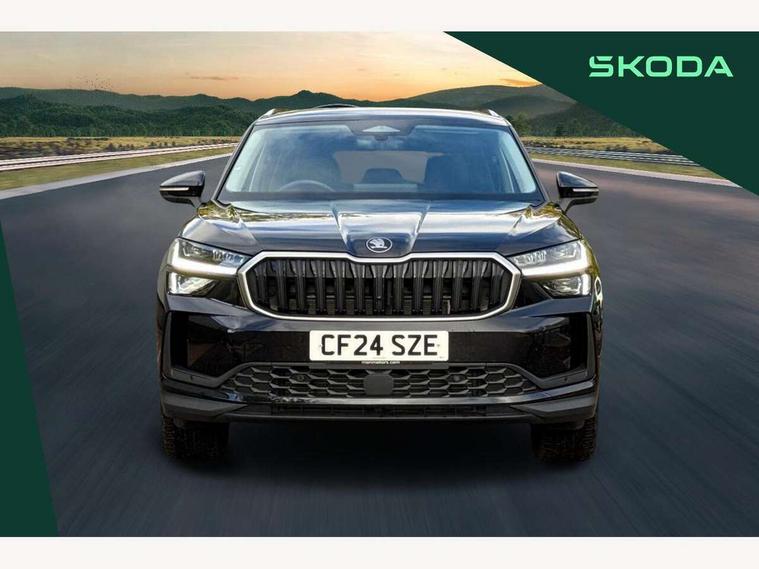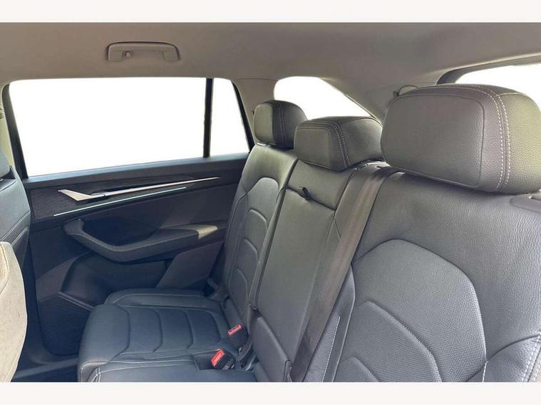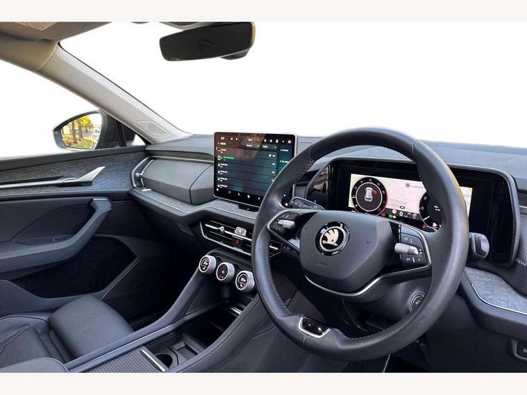 13" satellite navigation touchscreen display, Blind spot detection with door exit warning, Bluetooth system, Drive mode selector, Driver alert with fatigue sensor, Driver drowsiness alert system, Dry display cleaner, e call+, Front cross traffic assist, Lane assist, PAS, Rear traffic assist, Tailgate unlocking from outside, Traffic sign recognition, USB C Port x 2 in front centre console, Virtual Cockpit - 10.25" digital display, Voice control system, Wireless charging for two smartphones (15W) with cooling function, Wireless SmartLink for Apple CarPlay and Android Auto, Stop/start function, 2x USB-C in the rear, DAB Digital radio, Aero front windscreen wipers with intermittent function, Auto dimming rear view mirror, Black wheel arch surrounds, Body colour bumpers, Body colour door mirrors and handles, Cornering light and poor weather light, Electric folding /adjustable/separted heated/folding door mirrors, auto dimming with boarding sports and memory function, Electric front and rear windows, Heat insulating glass in windshield, Heated rear window, Ice scraper in fuel tank cap, Invisible tailpipe, LED daytime running lights, LED rear fog light, LED third brake light in rear spoiler, Light assistant with automatic headlight control and coming home feature, Logo projection in door mirrors, Privacy glass, Rear side wing doors, Rear spoiler, Rear window wiper, Safety reflectors on front and rear doors, Window control switches with black trim, Windscreen wipers with rain sensor, Without engine designation, 1.5l bottle holder points in all door, 12V socket in boot, 1x centre rear reading light, 2 seat bench in 3rd row, 3 configurable smart dials with 32mm coloured display, 3 seat bench in 2nd row, 4 foldable roof handles with rear coat hooks, Automatic gear selector on steering wheel, Chrome interior door handles, Driver/front passenger reading lights, Fabric headlining, Fixed bench 40:60:40 split folding backrests, Front and rear floor mats, Front centre armrest with jumbo box storage compartment, cup holder and 12V socket, Front courtesy lights, Height adjustable front headrests, Interior ambient lighting, Isofix child seat fittings in outer rear seats and front passenger with top tether, Manually adjustable steering column, Pollen filter, Rear centre armrest with cupholders, Rear seat boot backrest release, Retractable luggage compartment cover, Single front passenger seat, Sliding trunk cover, Small Bags on the inner sides of the front backrests, Storage pocket including mobile phone pockets on the backs of the front seats, Sunvisors with illuminated vanity mirrors, Three rear height adjustable headrests, Ticket holder on A Pillar, Tri zone climate control, Umbrella in door panel x1 made from sustainable materials, Upper and lower glovebox with card holder and coin compartment, USB C port by rear view mirror for charging only (15W), Exterior styling package - Kodiaq, Auto door release and activation of warning lights in the event of an accident, Driver and front passenger airbag with knee airbag and front passenger airbag deactivation, Electric child locks, Electronic parking brake, ESC (incl. ABS+EMD+MSR+ASR+EDL+HBA+DSR+RBS+ESBS+MCB+TSA+XDS), Front assist with braking reaction to vehicles, pedestrians and cyclists, Front disc brakes, Fuel cut off safety device, Height adjustable front 3 point seatbelts + pretensioners, Hill hold control, Junction assist with automatic emergency braking, Rear disc brakes, Safety vest holder in door, Seat belt reminder for all seats, Three point rear seat belts, Two tone horn, Tyre pressure monitor, Anti-theft wheel bolts, Immobiliser, Remote central locking with 2 keys, Black/grey fabric with green cross stitching on dashboard, Swan feathers grey dashboard and door decorative inserts, Breakdown kit,