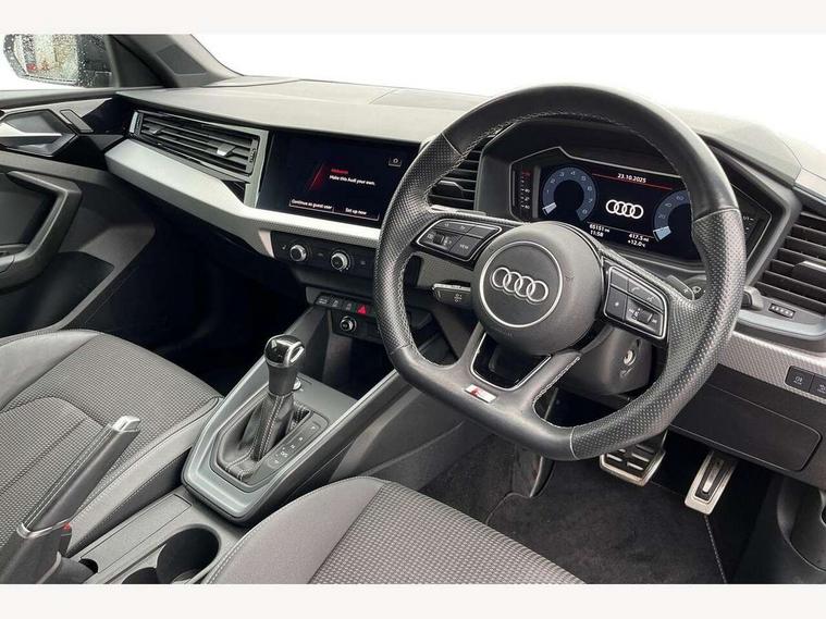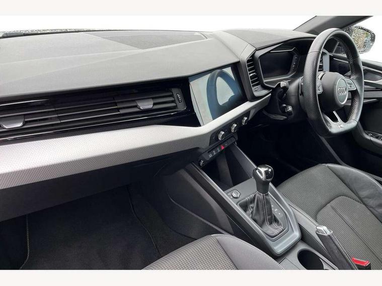 10.25" Digital instrument cluster display classis style instrument dials + speed, odometer, time, outside temperature, telephone menu + fuel level warning, Audi connect safety emergency and service including E-call, Audi drive select - power steering assistance + engine + gear shift 3 preset modes (auto, dynamic, efficiency and an Individual mode), Audi smartphone interface with connect compatible smartphone via USB directly MMI display + Nav, music, third party apps controlled via MMI controller, Automatic start/stop system, Bluetooth interface, Cruise control, Driver's information system, Electromechanical power steering, Lane departure warning system, Service interval indicator, Speed limiter, Voice control system, Washer fluid level indicator, Sports suspension, 1 x SDXC card reader, 2 x USB type C connection points, DAB Digital radio, MMI radio plus with 8.8" colour MMI display screen and MMI touch, Auto dimming rear view mirror, Black door mirrors, Black side skirts, Body coloured bumpers, Door sill trims with aluminium inlays and logo, Electric front and rear windows, Electrically adjustable, heated, folding door mirrors with integrated LED side indicator, Front side air inlets in grained matt black and C frame in titanium black, Heat insulating glass windscreen and side windows, Heated rear windscreen, LED headlights with LED rear lights + dynamic rear indicators + headlight adjustment and high beam, turning light + LED daytime running lights, Radiator protective grille frame in matt aluminium silver, Rain and light sensors, Rear diffuser strip in matt titanium black, Rear fog lights, Rear wiper, Side front spoiler lips in grained matt black, 12V socket in centre console with two cup holders, 3 rear seats with headrests, 3 spoke flat bottomed multi-function plus leather steering wheel with S badging, grips in preforated leather, contrast stitching and paddle shift, 40:60 Split folding rear seat or folded fully, Black cloth headlining, Driver and passenger seat with manual height adjust with forward and backwards adjustment, Front and rear black floor mats with contrast stitching in fine silver, Front head restraints, Height and reach adjustable steering wheel, ISOFIX child seat mounting for front passenger and outer rear seats including top tether attachment point of outer rear seats, Leather gear knob with aluminium trim, Luggage compartment light with front and rear reading lights, Manually adjustable lumbar support in front seats, Stainless steel pedals, Black styling pack - A1 Sportback Black Edition, LED interior lighting pack - A1, Luggage compartment pack - A1, 3x3 point rear seatbelts, Audi pre-sense front with pedestrain and cyclist recognition, Brake assist function, Driver and front passenger airbag with front side and head airbags, Electronic Stability Control including ABS, EBD, ASR and EDL, Front passenger airbag deactivation switch, Hill hold assist, Seatbelt height adjustment for front seats, Seatbelt monitoring, Tyre pressure warning light, Warning triangle and first aid kit, Anti theft alarm, Anti theft wheel bolts and loose wheel warning, Immobiliser, Remote central locking with 2 foldaway keys, Aluminium trim for control switches, air vents and digital instrument cluster, Silver grey inlays polygon structure in diamond paint finish, Structured grey accent areas including air vents, door handle recesses and centre console in quartz paint finish, 18" 7 spoke rotor design alloy wheels in gloss anthracite black, diamond cut finish,