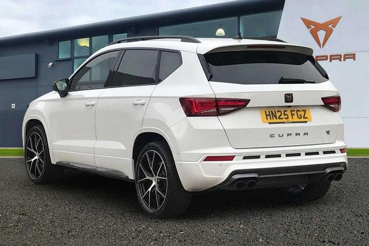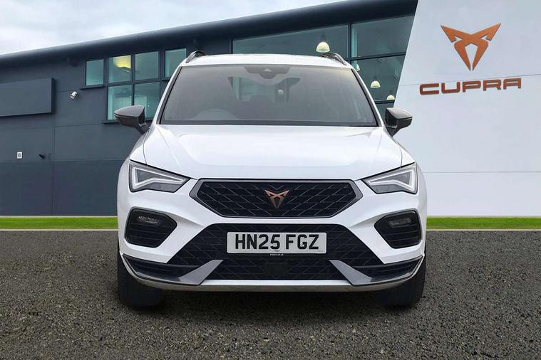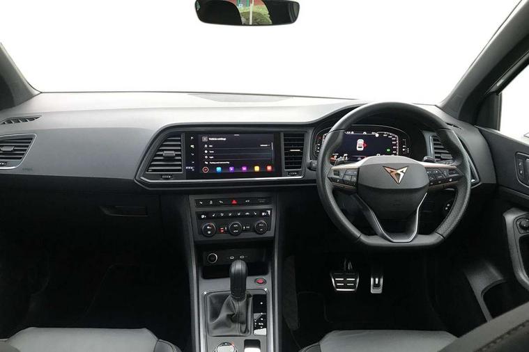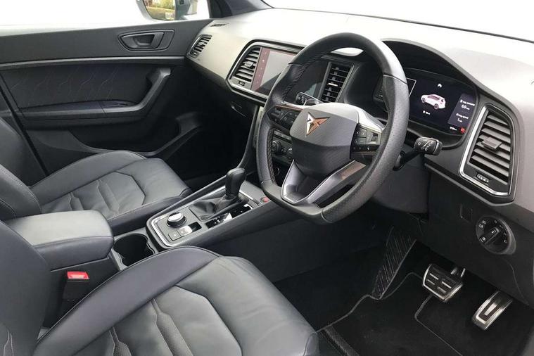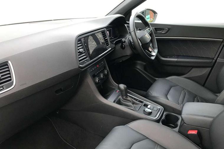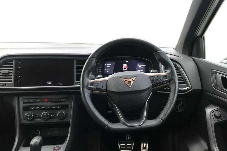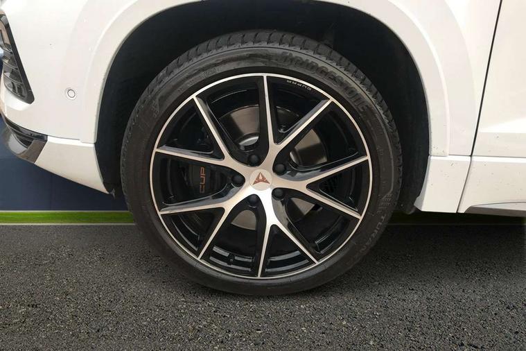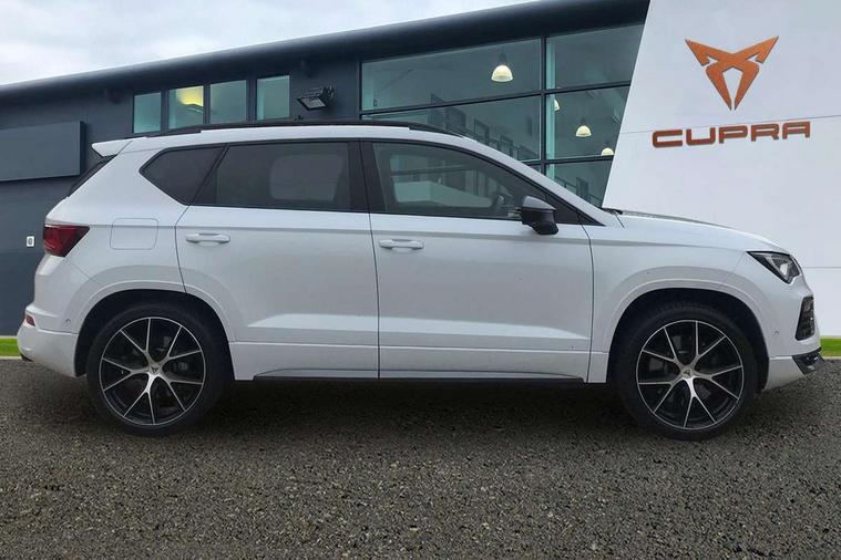 CUPRA drive profile - Normal, sport, CUPRA and individual modes and Hydraulic damper control (DCC), Digital cockpit, E-call, Electric tailgate with virtual pedal, Front and rear view camera, Outside temperature gauge, Progressive power assisted steering, Self parking functionality (includes front and rear parking sensors), Top view camera, Trip computer, wired and wireless full link smartphone integration, Wireless phone charger, CUPRA sport suspension, Steering wheel mounted audio/phone controls, Body colour bumpers with dark aluminium diffusor, Body coloured wheel arch surrounds, Dark tinted rear windows, Daytime running lights, Door mirrors with welcome CUPRA light silhouette, Dynamic headlight range control with self adjusting whilst driving, Electric adjustable/heated/folding door mirrors, Front and rear electric windows, Front grille frame in chrome, Full LED headlamps with lens and LED front fog lamps with cornering function, Gloss black door mirrors, Gloss black roof rails, Gloss black side mouldings, Gloss black side window trim, Illuminated aluminium front door sill, LED rear tail lights with dynamic indicators, Rear fog lights, Rear side wing doors, Rear spoiler, Rear wash/wipe, Specific CUPRA design front bumper, Third brake light, Visible twin black exhaust pipes in both sides, 12v socket in front, 3 seat bench in 2nd row, 60/40 split folding rear seat, Aluminium pedals, Black roof lining, Cupra steering wheel emblem, Dual zone climate control, Electric driver seat with memory function, Front and rear head restraints, Front centre armrest, Front seat back storage pockets, Heated front seats, Heated steering wheel, Height adjustable driver and passenger seat with lumbar adjustment, ISOFIX points in outer rear seats with top tether anchorage points, Leather sport bucket seats, Leather steering wheel and gear knob, Multicoloured ambient lighting with LED interior illumination, Pedal cluster, Rear armrest and easy back seat release mechanism from boot, Single front passenger seat, Sports steering wheel, Steering wheel mounted gearshift paddles, Storage compartment in roof console for sunglass, Storage compartment under driver's seat, Convenience pack - Ateca, Interior lighting pack - Ateca, Navigation system plus pack with DAB - Ateca, Safe and driving pack with High beam control - Ateca, 3x3 point rear seatbelts, ABS, Traction control system (TCS), Electronic stability control (ESC) and Electronic differential lock system (XDS), Airbags - Driver and front passenger airbag with deactivation, front side, two curtain and driver's knee airbags, Attention and drowsiness assist, Black brake callipers with CUPRA logo, Electric parking brake with auto hold function, Front and rear seatbelt reminder, Hill hold control, Manual rear child locks, Single tone horn, Tiredness recognition system, Tyre pressure monitoring system, Tyre pressure warning light, Alarm, Keyless entry, Locking wheel bolts,