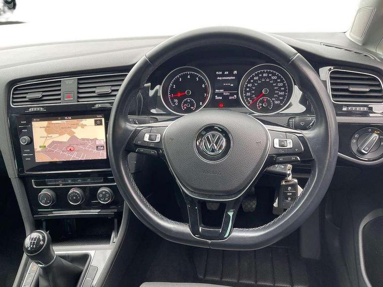 Piano black centre console, Tumbler decorative inserts, Ambient lighting pack - Golf, Mirror pack - Golf, Steel space saver spare wheel, Alarm with interior protection, Electronic engine immobiliser, Remote central locking with 2 remote folding keys, CD/MP3/WMA, USB and SD card reader, aux-in, Composition media system, DAB Digital radio receiver, Multi device interface (MDI) with USB connection, 3 rear three point seatbelts, Anti-lock braking system (ABS), Automatic post collision braking system, Child locks on rear doors, Driver/Passenger optimised head restraints, Drivers and Front Passengers airbags with front passengers airbag deactivation switch, Drivers knee airbag, Electronic stability control (ESC) including Electronic differential lock (EDL) and ASR (Traction control) with deactivation via infotainment system, Front and rear curtain airbags, Front seat side impact airbags, HBA (Hydraulic Brake Assist), Pre crash preventive occupant protection, Three point height adjustable front seatbelts with tensioners, Tyre pressure loss indicator, Automatic coming/leaving home lighting function and rain sensor, Automatic dimming rear view mirror/rain sensor, Automatic headlights, Black front air intake and radiator grille with chrome insert, Black rear diffuser, Body colour bumpers, Body colour door handles, Body colour door mirrors with integrated indicators, Chrome grille surround, Chrome trimmed front air intake surrounds, Electric front windows, Electric rear windows, Electrically adjustable and heated door mirrors, Halogen headlights range adjustable via infotainment system with LED daytime running lights, Heated rear windscreen, High level 3rd brake light incorporating LED Technology, LED front fog lights with static cornering light function, LED rear lights, Rain sensor, Rear number plate lights incorporating LED technology, Rear tinted glass 65% light absorbing from B pillar backwards, Rear window aerial, Rear window wash/wipe with intermittent wipe, Reflectors in all doors, Tailgate with integrated rear roof spoiler, Windscreen wipers/ intermittent wipe + 4 position delay, 12V socket in luggage compartment, 3 rear headrests, 60/40 split folding rear seat backrest, Bag hook in luggage compartment, Boot lashing points, Cooled glovebox, Courtesy light delay, Cover for storage compartment in centre, Driver/front passenger seat height adjustment, Dust/pollen filter, Front + rear carpet mats, Front centre armrest with storage compartment and two rear air vents, Front seat back storage pockets, Grab handles front x 2, rear x 2 with integrated coat hooks, Height/reach adjust steering wheel, Illuminated vanity mirrors, Instrument lighting white adjustable panel illumination, Isofix preparation for 2 rear child seats, Load through provision with rear centre armrest and cupholders x2, Luggage compartment cover, Luggage compartment light, Multifunction leather steering wheel with leather trimmed gear knob, Overhead storage box, Pearl grey headlining, Storage box in luggage compartment, Storage compartments in doors, Storage compartments in front doors, Storage compartments in rear doors, Sun visors, Three spoke multi-function leather trimmed steering wheel and gearknob, Three spoke steering wheel, Variable boot floor, height adjustable and removable, App-Connect, 'Lights On' Reminder warning buzzer, 8" colour touch screen, ACC - Adaptive cruise control with front assist, forward collision warning, distance monitoring, city emergency brake and speed limiter, Bluetooth hands free telephone connection, Brake pad wear indicator warning light, Driver alert system, Driver profile selection, Exterior temperature gauge, Front assistant collision mitigation, Instrument cluster in white, Multifunction computer, PAS - speed related, Power assisted speed sensitive electro-mechanical steering, Rev counter, Stop/start system, Trip and service interval display, Ultrasonic front and rear optical and audible parking sensors, Warning buzzer and light for front seatbelts unfastened, Battery regeneration during braking, Lowered sports suspension, XDS electronic differential lock,