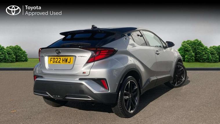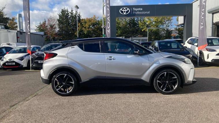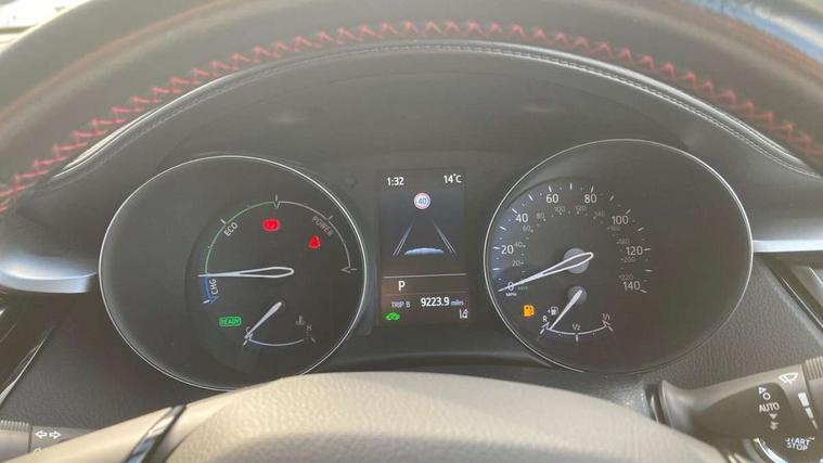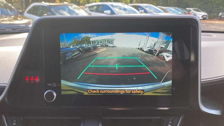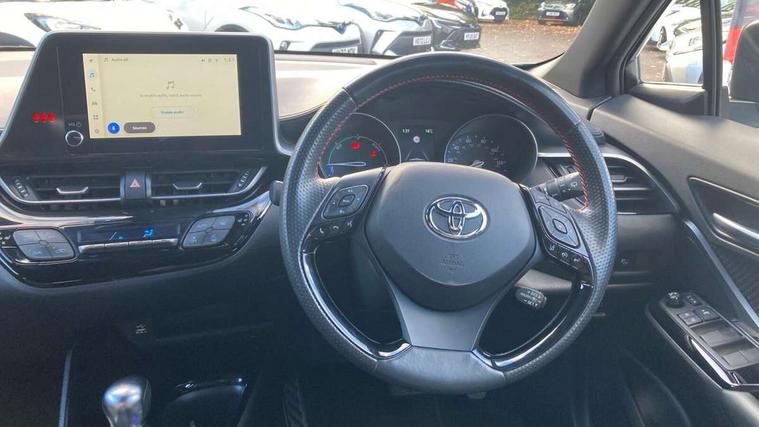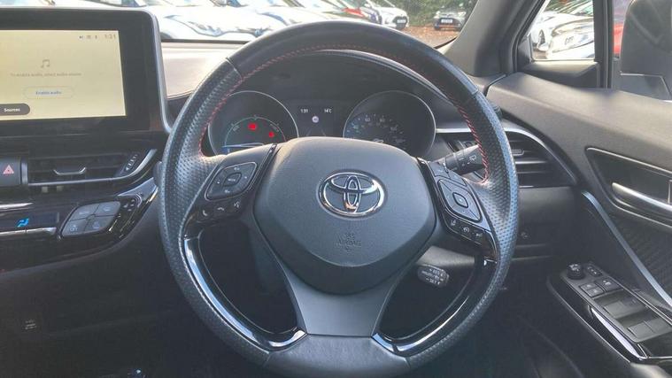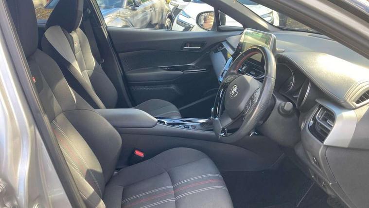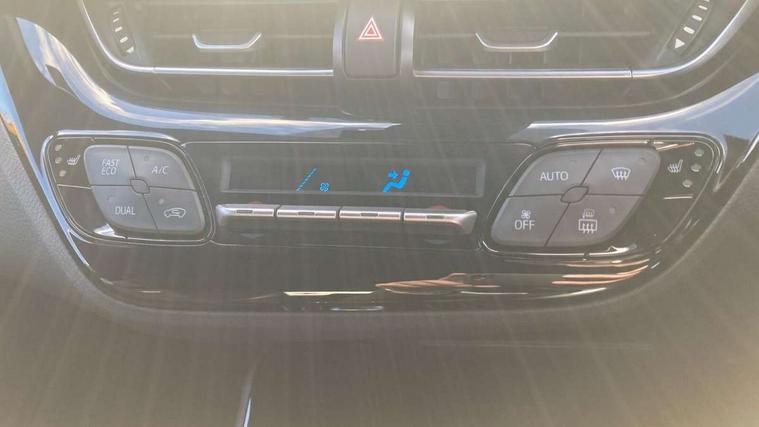 4.2" coloured TFT screen for multi-information display, Adaptive cruise control, Bluetooth connectivity, E-call, Electric power steering, Hybrid system indicator, Lane departure alert with steering control, Remote boot door release in cabin, Remote boot door release in key, Reversing camera, Road sign assist - RSA, Simple Intelligent parking assist, Touch 2 Go navigation system, Trip computer, Voice recognition, Vehicle Stability Control (VSC), 6 speakers, AM/FM radio, DAB Radio (Digital Audio Broadcasting), Toyota touch 2 multimedia system with 8" display, USB connector, Wi-fi connectivity, Adaptive front light system, Adaptive LED Headlights, Anti-jam protection on power windows, Auto high beam, Auto up and down function on all power windows, Automatic headlight levelling, Automatic headlights, Automatic headlights cut-off, Black and body coloured rear bumper, Black upper front grille, Body colour door handles, Body colour door mirrors, Body coloured front bumper, Boot door release with push button, Chrome front lower bumper, Electric heated door mirrors, Follow me home headlights, Front and rear power windows, Front spoiler lip in black, Honeycomb lower front grille, LED daytime running lights, LED fog lights, LED front light guide, LED High mounted stop light, LED rear brake lights, LED rear combination lights, Noise reduction layer on front windows and windscreen, Power adjustable door mirrors, Privacy glass, Rain sensor, Rear sequential indicators, Rear side wing doors, Rear spoiler, Rear tailgate, Rear window defogger, Rear window wiper, Shark fin antenna, UV-filter on driver and passenger windows, UV-filter on rear windows, 12v power outlet - front, 3 rear headrests, 3 seat bench in 2nd row, 3 spoke perforated leather steering wheel, 60/40 split folding rear seat, Adjustable rear headrests, Adjustable speed limiter switch on steering wheel, Assist grips front and centre pillar, Audio and telephone switches on steering wheel, Black front door assist grips, Blue ambient lighting on front cup holders, Blue ambient lighting on front doors, Boot light, Chrome interior door handles, Driver and front passenger personal light, Driver and front passenger Whiplash Injury Lessening seats, Driver and passenger seatback pockets, Dual zone automatic air conditioning, Fabric upholstery, Floor mats, Front cupholders, Front head restraints, Front sports seats, Glovebox with internal light, Hard tonneau cover, Heated driver and front passenger seats, Hooks for luggage holding net, Humidifying Nanoe air purifier, Illuminated entry system, Isofix attachments on outer rear seats, Leather gearshift, Light on driver sun visor, Light on passenger sun visor, Manual telescopic steering wheel, Manual tilt steering wheel, Manually height adjustable driver seat, Manually height adjustable front passenger seat, Manually reclining driver seat, Manually reclining front passenger seat, Manually sliding driver seat, Manually sliding front passenger seat, Microphone on front personal light, Mirror on driver sun visor, Mirror on passenger sun visor, Multimedia switches on steering wheel, Pollen filter, Power adjustable lumbar support on driver seat, Shopping bag hooks, Single front passenger seat, Slow opening on lower glovebox, Voice recognition switch on steering wheel, Tech with parking sensor pack - C-HR, 16 Disk front wheel brake, 3x3 point rear seatbelts, ABS+EBD+Brake assist, Electronic parking brake, Front and rear seatbelt reminder, Front passenger airbag on/off switch, Hill start assist control (HAC), Pre collision system with pedestrian detection, Pre-tensioners and force limiters, Rear door child safety locks, SRS Airbags - Driver + Front passenger, front side, front and rear curtain and driver's knee airbags, Toyota safety sense, Tyre pressure monitoring system, Acoustic vehicle alert system (AVAS), Glass-breaking alarm sensors, Immobiliser, Intrusion alarm, Intrusion sensor, Motion sensor alarm, Power door locks, Power passenger window lock, Remote central locking, Black lower dashboard, Black upper dashboard, Piano black console, Silver deco line on upper dashboard, 19" Black machined alloy wheels, Tyre repair kit,
