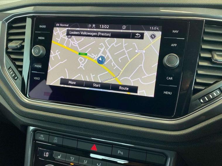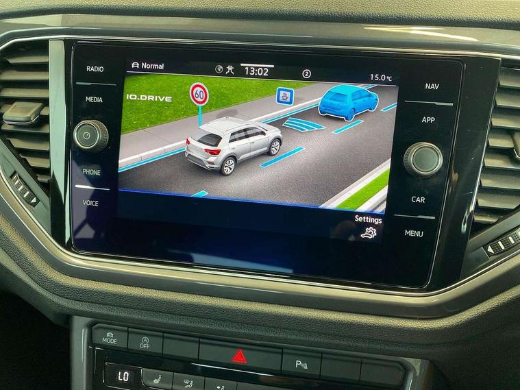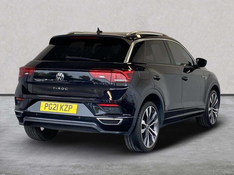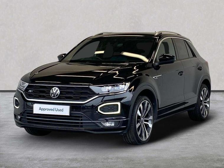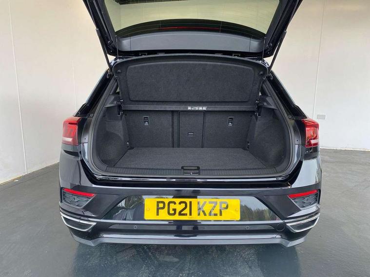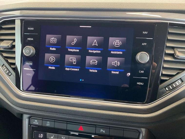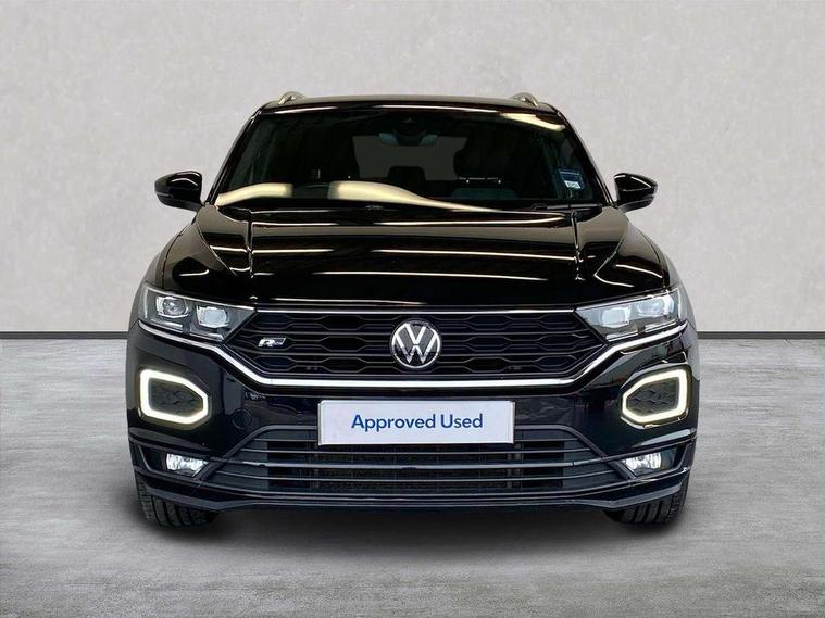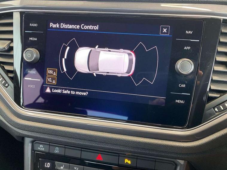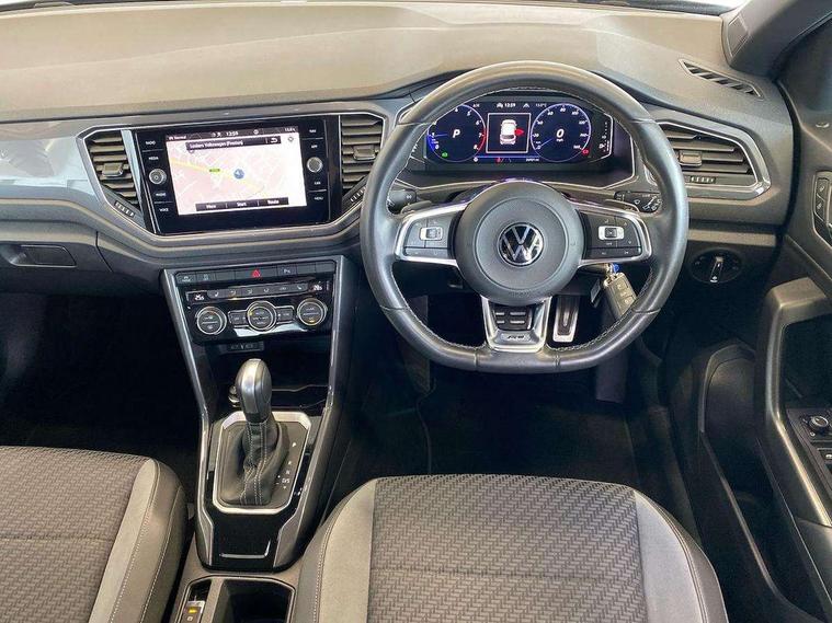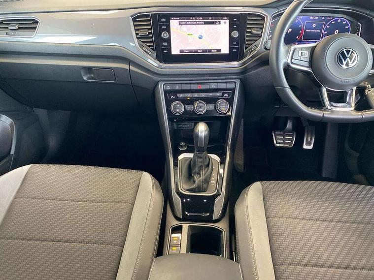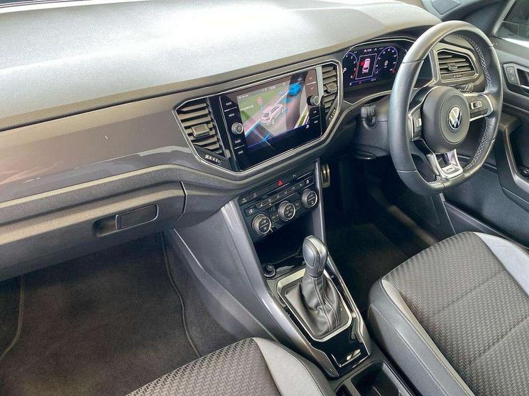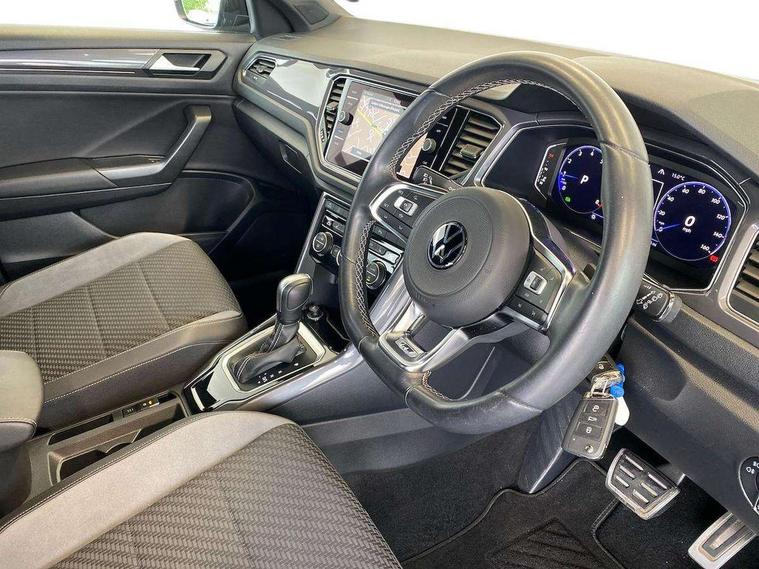 'Lights On' Reminder warning buzzer, Adaptive cruise control, Bluetooth telephone and audio connection for compatible devices, Car information display, Digital Cockpit Pro - Active info display, Driver alert system with audible and visual fatigue detection system, Driver tips and journey analysis, Dusk sensor, Emergency call service, Lane assist with warning text instrument cluster, Modified key software - reduce switch off time for key status change to Long no motion, Multifunction camera, Multifunction computer with visual gear change recommendation for fuel consumption, Navigation system discover media including streaming and internet, Service interval indicator, Think blue trainer driver tips and journey analysis, Traffic sign recognition, Voice activation, Warning sound and light for front seatbelts unfastened, Wireless app connect for apple carPlay, Battery regeneration during braking, Rear shock absorption for sports version, Start/stop function with battery regeneration, DAB Digital radio, Disk brakes in front, Diversity antenna for FM reception, Music playback - MP3, WMA and AAC files, Premium USB cable in choice of either Apple or Android smartphone compatibility, SD card slot, Simultaneous pairing of 2 compatible mobile devices, SMS functionality - read, compose and send SMS messages using touch-screen display, Storage compartment with longitudinal and height adjustable in armrest and two rear air vents, Three route options - Fast, Short, Eco, Title and cover art display, USB-C Interface and USB charging socket, Auto dimming interior rear view mirror, Automatic coming/leaving home lighting function and daytime running lights, Automatic hazard lights activation under emergency braking, Black grained lower door protectors, Body colored door lower parts, Body colour door handles, Body colour rear roof spoiler, Chrome effect left and right trapezoid exhaust tailpipe fascia surround, Chrome plated moldings, Chrome plated radiator grille inserts, air vent surrounds and light switch surrounds, Chrome trim on upper and lower radiator grille, Dynamic headlight range control with self adjusting whilst driving, Electrically foldable, adjustable and heated door mirrors with puddle lights and reverse activated kerb-view adjustment on passenger's door mirror, External USB type C socket and charging sockets, Front and rear electric windows, Front fog lights with static cornering function, Front windscreen wiper with intermittent wipe and 4 position delay, Fully galvanised body, Heated rear window, Heated windscreen washer jets, High level 3rd brake light, LED darkened rear light clusters, LED headlamps with automatic range adjustment and unique signature LED separate daytime running lights, LED rear number plate lights, LED tail lamp rear comination lamps, Privacy glass, R-Line design body coloured bumpers, Rain sensor, Rear tinted glass from B-pillar backwards approx 65% tinted, Rear wash/wipe with intermittent wipe setting, Silver anodised roof rails, Volkswagen roundel, 12V socket in centre console storage area, 3 rear head restraints, 4 load lashing points in luggage compartment, Aluminium pedals, Black roof lining and sun visors, Branded points of interest, Carbon flag cloth upholstery, Climate control - 2 zone electronic air conditioning with automatic air recirculation and allergy filter, Door and side trim panel, Door and side trim panel in foam film, insert in leatherette, Drawer under drivers seat, Front + rear carpet mats, Front centre armrest, Front cupholders x 2, Front seat back storage pockets, Front sports seats with R-Line logo on seat backrest, Glovebox, Heated front seats, Height adjustable front seats, Height/reach adjust steering wheel, Instrument lighting, white adjustable panel illumination, Interior light delay, Interior light in footwell, Isofix easy fit child seat preparation for 2 outer rear seats, Leather gearshift knob, Leather multi function sport steering wheel with gear change selection via paddle shift on steering wheel, LED interior light with switch off delay/dimmer and 2 front/rear LED reading lights, Load through provision with single cup holder when folded down, Luggage compartment cover, removable, Luggage compartment lighting, R Line badge, Scuff plates in door apertures, Split folding rear seat backrests with centre armrest, Stainless steel pedals, Storage compartment in left and right luggage area, Storage compartment in rear doors, Storage compartments in driver and front passenger doors, Sunvisors with illuminated vanity mirrors, Unique R Line door sill protectors, White ambient lighting, R line styling pack - T-Roc, Winter pack - T-Roc, 3 rear three point seatbelts, ABS, Curtain airbags, Driver and front passenger safety-optimised head restraints, Drivers and front passengers airbags with passengers deactivation switch, Drivers seatbelt reminder, Electronic parking brake with auto hold, Electronic stability control (ESC) includes ASR, EDL, EDTC and trailer stabilisation function, Front assist with city emergency braking and pedestrian monitoring, Front seat side impact airbags, Hill start assist, Predictive pedestrian protection, Rigid safety cell with front and rear crumple zones, Single tone horn, Three point height adjust front seatbelts + pretensioners, Tyre pressure loss indicator, Ventilated front and rear disc brakes, Volkswagen roadside assistance, Alarm with remote central locking and interior protection, Electronic engine immobiliser, Remote central locking with SAFELOCK, radio remote control with 2 remote control folding keys, Shadow grey decorative inserts in dash, centre console and door panel, 19" Suzuka alloy wheels with low rolling resistance tyres and anti wheel bolts,