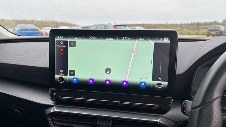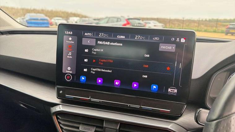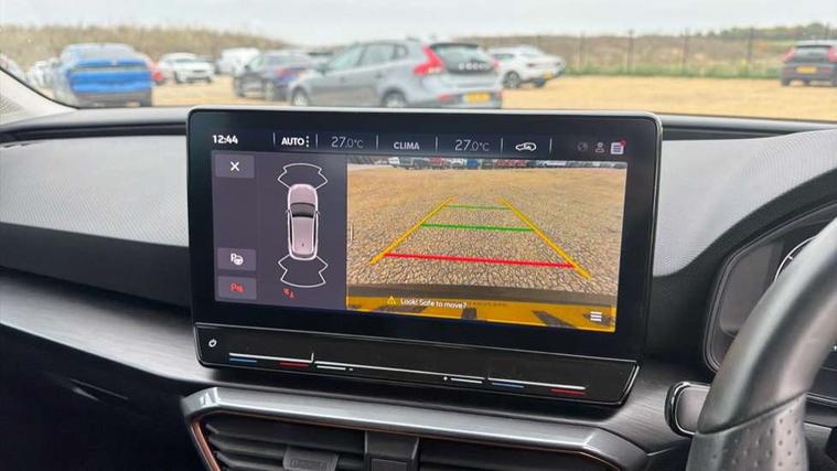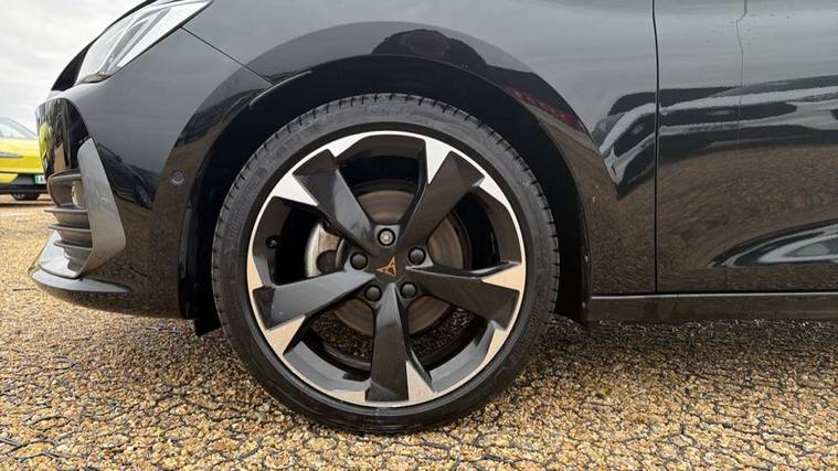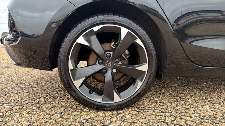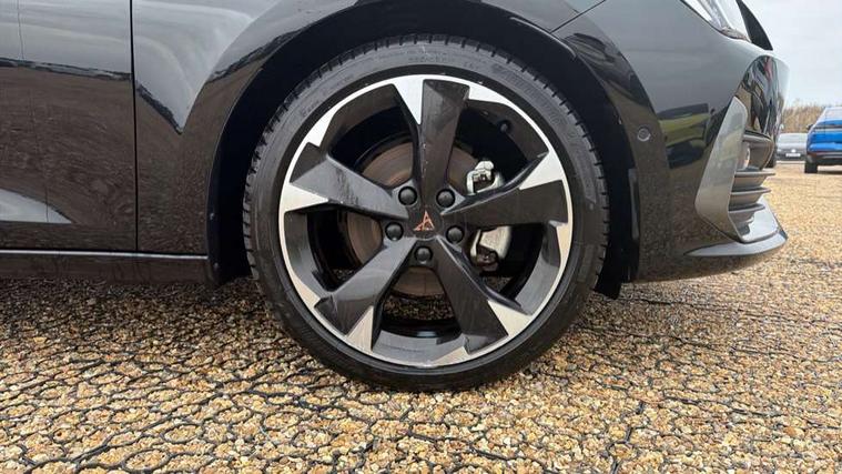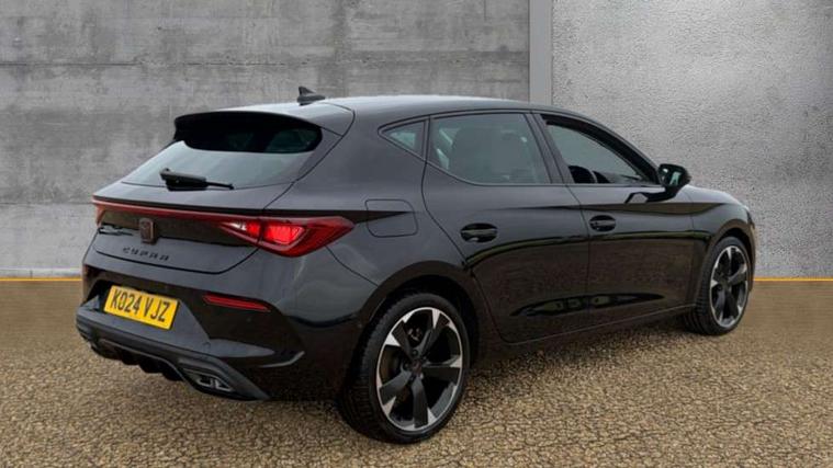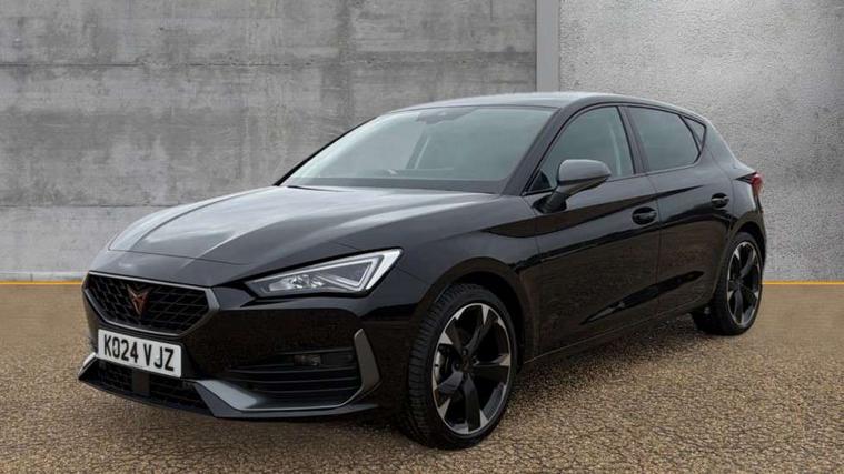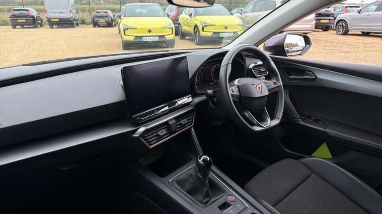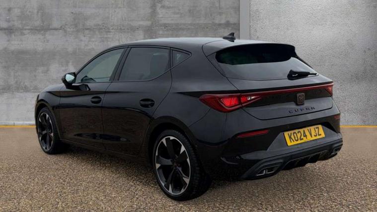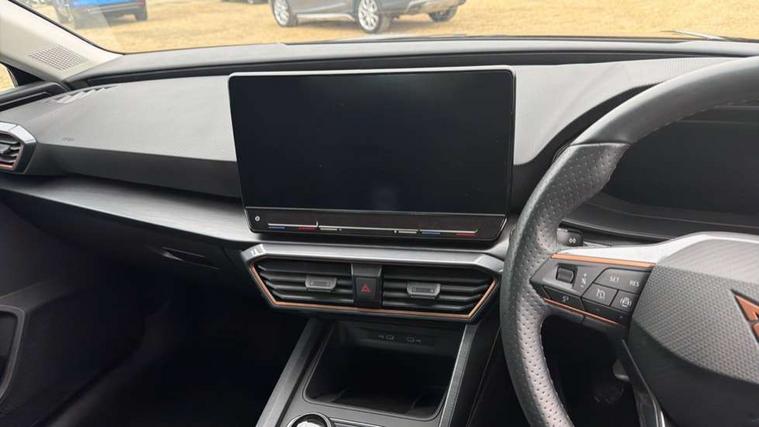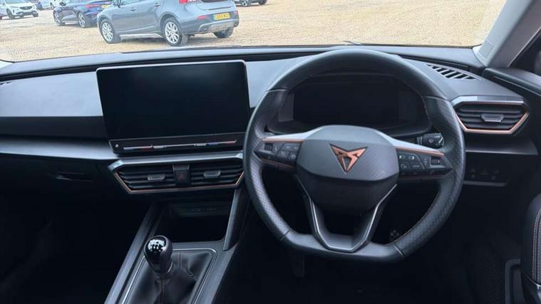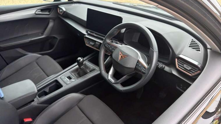 CUPRA drive profile selection with (Comfort/Sport/Individual), throttle response and gearshift mode, Digital cockpit, E-call, Electro mechanical speed sensitive power steering, Four x USB Type C ports (2 in front and 2 in rear), Front assist with forward collision warning braking reaction to vehicles, pedestrians and cyclists, Full link smartphone integration with Mirror Link, wireless Apple CarPlay and wired Google Android Auto, Lane assist, Lockable tailgate, Park assist (inc front/rear parking sensors), Rear view camera, RPM, trip computer, outside temp gauge, instrument light brightness, low fuel warning light, lights on reminder, gearshift indicator, Service interval indicator, Start/stop system with regenerative braking, Wireless phone charger, Sports suspension, Auxiliary input socket, Auto dimming rear view mirror, Body colour door handles, Body coloured bumpers, Cupra sports bumpers, Dark tinted rear windows, Electric front/rear windows, Electrically adjustable, heated and folding door mirrors, LED front fog lamps with cornering function, LED headlights with dynamic turn signals, tail lights, rear fog lights with rear coast to coast lighting, Rain sensing wipers, Rear diffuser with twin exhaust pipe on each side, Rear side wing doors, Rear wash/wipe, Separate daytime running light with automatic headlight control and coming home feature, Third brake light, 12v power supply in centre console, 3 seat bench in 2nd row, 5 headrests, 60/40 split rear bench seat with armrest, Ambient lighting with glovebox, footwell and single monocolour, Cupra Leather flat bottomed, perforated steering wheel, Driver/passenger manual seat height adjustment, Folding boot cover, Front and rear reading lights X 4, Front centre armrest, Front seats manual lumbar adjustment, Grey headlining, Height/reach adjust steering wheel, Illuminated interior front door sills, ISOFIX points in outer rear seats with top tether anchorage points, Jack and tool kit, PVC/Cloth upholstery with copper stitching, Single front passenger seat, Sports seats, Sunvisors with illuminated mirror, Three zone climate control, Media system plus with navigation pack - Leon Cupra, Safety and driving pack (M) - Cupra leon, 3 point seatbelts on all rear seats, ABS, Brake control system - ESC and brake booster, Child proof door locks, Cupra black brake calipers, Driver and front passenger airbags with front passenger airbag de-activation, front side and curtain airbags, Electronic parking brake, Extended safety system - seat belt tensioner, window closure and hazard lights, Hill hold control, Rear disc brakes, Seat belt reminder for front and rear seats, Tiredness recognition system, Tyre pressure monitoring system, Anti theft alarm system with interior monitoring in cab, backup horn and towing protection, KESSY Advanced - Keyless start, keyless entry, Locking wheel bolts, Chrome and copper interior detailing, 18" Machined sport black and silver alloy wheels with 92Y tyres,