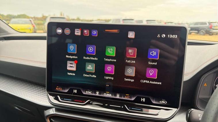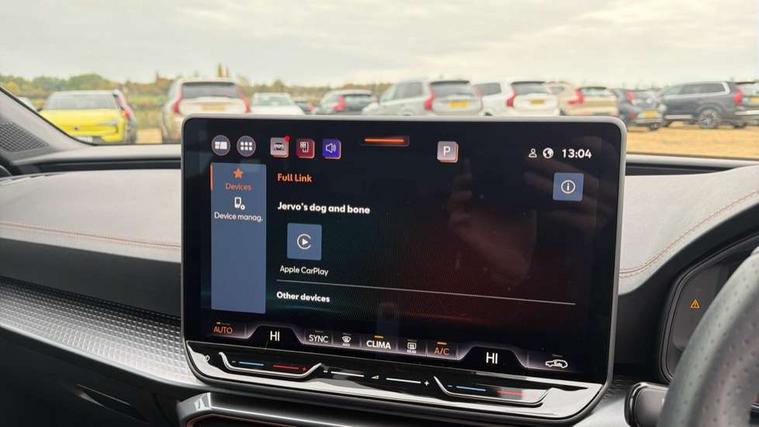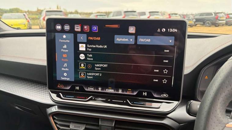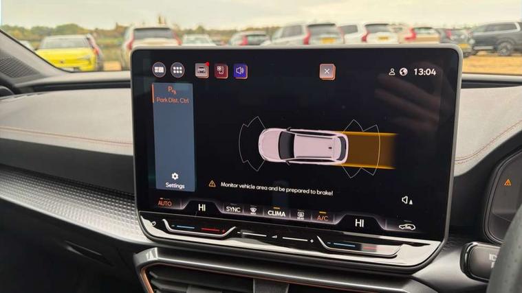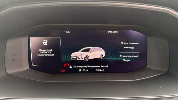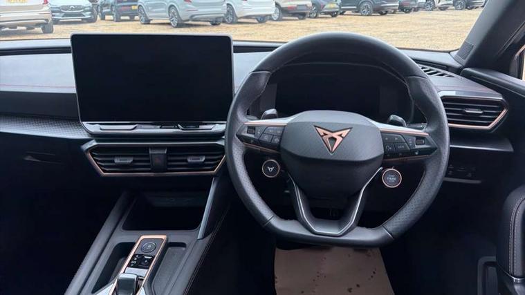 Adaptive cruise control with follow-to-stop and speed limiter, CUPRA drive profile selection with (Comfort/Sport/Individual), throttle response and gearshift mode, Digital cockpit, Dynamic road sign display, E-call, Four x USB Type C ports (2 in front and 2 in rear), Front and rear parking sensors, Front assist with forward collision warning braking reaction to vehicles, pedestrians and cyclists, Full link smartphone integration with Mirror Link, wireless Apple CarPlay and wired Google Android Auto, Lane assist, Lockable tailgate, PAS, RPM, trip computer, outside temp gauge, instrument light brightness, low fuel warning light, lights on reminder, gearshift indicator, Service interval indicator, Start/stop system with regenerative braking, Virtual pedal with electric tailgate, Wireless phone charger, 7 speakers, Auxiliary input socket, Auto dimming rear view mirror, Body colour door handles, Body coloured bumpers, Cupra sports bumpers, Dark tinted rear windows, Electric front/rear windows, Electrically adjustable, heated and folding door mirrors, Gloss black roof rails, High beam assist, LED front fog lamps with cornering function, LED headlights with dynamic turn signals, tail lights, rear fog lights with rear coast to coast lighting, LED rear fog lamp, Rain sensing wipers, Rear side wing doors, Rear wash/wipe, Separate daytime running light with automatic headlight control and coming home feature, Third brake light, Welcome light with logo projector in door mirrors, 12v power supply in centre console, 3 seat bench in 2nd row, 5 headrests, 60/40 split rear bench seat with armrest, Ambient lighting with glovebox, footwell and single monocolour, Black headlining, Cloth/PVC upholstery, Cupra sports pedals, CUPRA Supersports, heated steering wheel with satellite buttons, Driver and passenger seat with manual height and lumbar adjustment, Front and rear reading lights X 4, Front centre armrest, Height/reach adjust steering wheel, Illuminated interior front door sills, ISOFIX points in outer rear seats with top tether anchorage points, Single front passenger seat, Sliding boot cover, Storage pockets on rear of front seats, Sunvisors with illuminated mirror, Three zone climate control, Media system plus with 12.9" display + navigation pack - Leon Cupra, 3 point seatbelts on all rear seats, ABS, Brake control system - ESC and brake booster, Child proof door locks, Cupra black brake calipers, Driver and front passenger airbags with front passenger airbag de-activation, front side and curtain airbags, Electronic parking brake, Hill hold control, Rear disc brakes, Seat belt reminder for front and rear seats, Tiredness recognition system, Tyre pressure monitoring system, Anti theft alarm system with interior monitoring in cab, backup horn and towing protection, Central locking system Keyless Go, Locking wheel bolts, Chrome and copper interior detailing, 18" Windstorm machined sport black matt and silver alloy wheel with 92Y XL tyres, Tool kit,