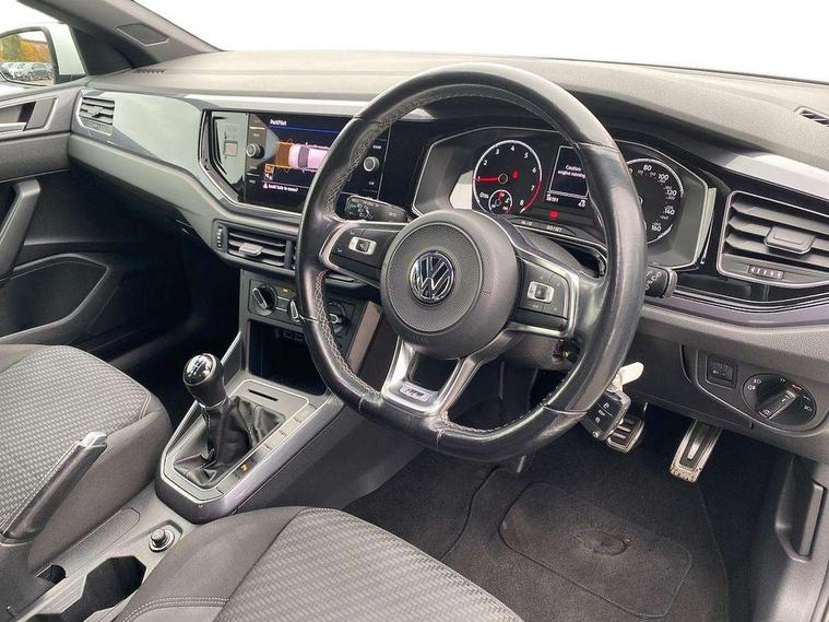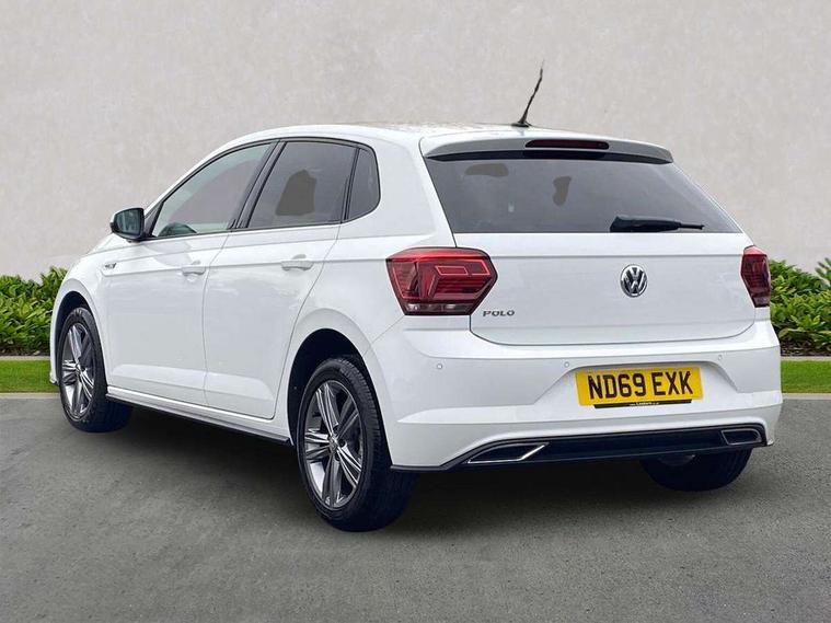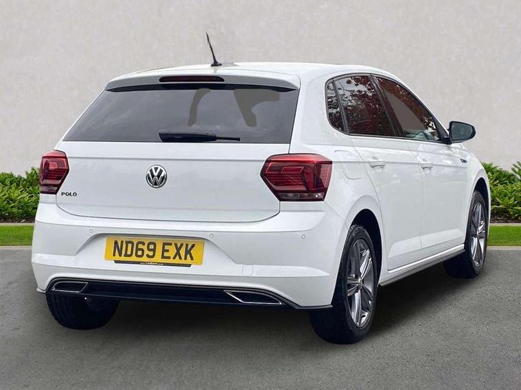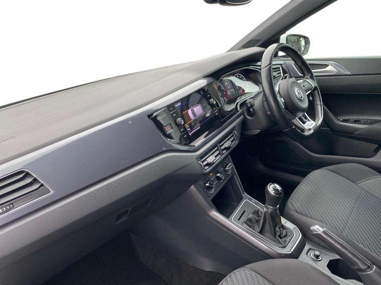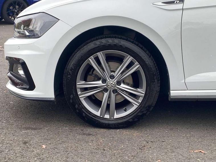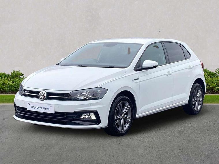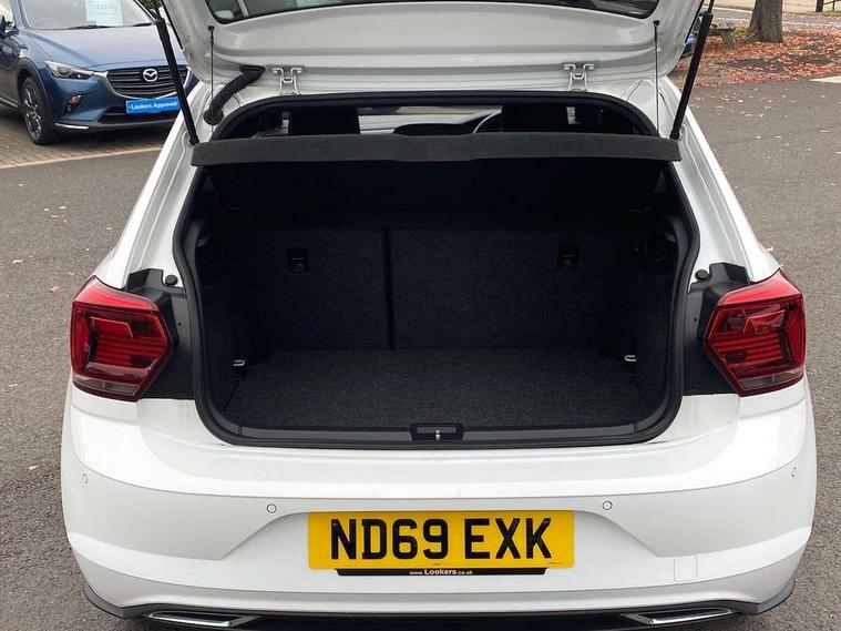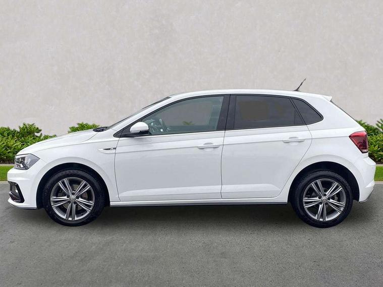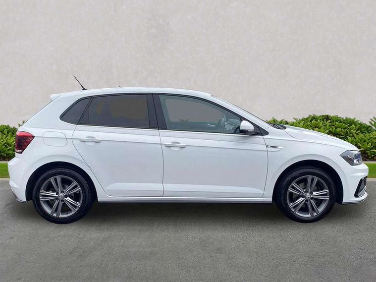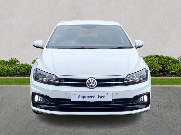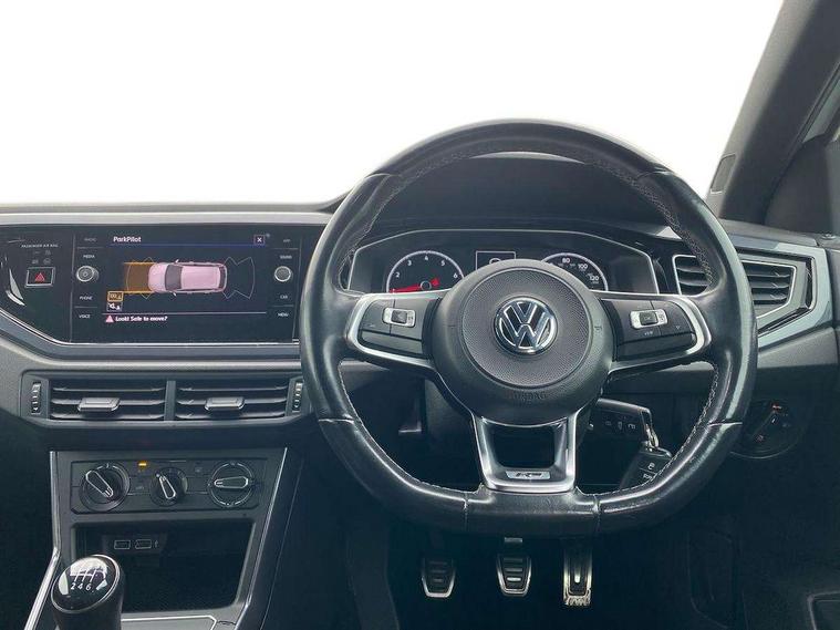 App-Connect, Digital clock, Driver alert system, Multifunction computer plus, Power assisted speed sensitive steering, Speedo and rev counter, electronic odometer, trip, service interval display and fuel gauge, Start/stop system, Volkswagen connect, Warning buzzer and light for front seatbelts unfastened, Battery regeneration during braking, Galvanished body, Black grille with chrome surround, Body colour door handles, Body coloured side sills, Chrome trimmed strip on lower bumper, Electric front windows, Electrically foldable, adjustable and heated door mirrors with reverse activated kerb view adjustment on passenger's side, Front fog lights including static cornering, Front windscreen washers and wipers with 4 speed intermittent delay, Heat insulating tinted glass, Heated rear window with auto timer, High level 3rd brake light, LED darkened rear light clusters, LED daytime running lights, LED rear number plate lights, Left and right chrome effect trapezoid fascia exhaust tailpipe surrounds, Rear diffuser, Rear electric windows, Rear windscreen washer and wiper with interval delay, reverse activated, Unique R Line badging, 2 bag hooks in luggage compartment, 2 front cupholders and 12 V socket with cover, 3 rear head restraints, 60/40 split folding rear seat, Ambient lighting in front foorwell, front/rear door and dashboard light strips, Carbon flag cloth upholstery, Centre console storage with open storage compartment, Chrome-plated electric mirror adjustment switch surround, Chrome-plated electric window button surround, Driver and front passenger seat height adjustment, Driver and front passenger sunvisors with illuminated vanity mirrors, Dust/pollen filter, Folding rear seat backrest, Front + rear carpet mats, Front centre armrest with storage compartment, Front seat backrest storage pockets, Front sport seats with lumbar adjustment and R line logo on seat backrest, Gear lever gaiter in black trim surround, Glovebox, Handbrake grip button in chrome effect, Height/reach adjustable steering column, Instrument lighting, adjustable panel illumination, Interior light with delay, Isofix Preparation 2 Rear child seats, Jack and tool kit, Leather gear knob and handbrake grip, LED interior lighting - 2 reading lights front and rear with interior delay and dimming function, Luggage compartment cover, removable, Luggage compartment lighting, Luggage compartment with variable load floor, Stainless steel pedals, Storage compartment in front doors, Storage compartment in rear doors, Storage compartment under front seats, Three spoke leather trimmed multifunction steering wheel with aluminium inserts and R Line Logo, Titanium black roof lining and sun visors, Unique R Line door sill protectors, Light and sight pack - Polo, R Line styling pack - Polo, 3 point height adj front seatbelts + pretensioners, 3x3 point rear seatbelts, ABS, Automatic post collision braking, Driver/front passenger airbag, Drivers and front passengers safety optimised head restraints, ESP with EDL + ASR, Front and rear passenger curtain airbags, Front passenger airbag deactivation, Front seat side impact airbags, Front/rear disc brakes, HBA (Hydraulic Brake Assist), Hill hold control, Single tone horn, Tyre pressure monitoring system, Alarm with interior protection and deactivation via infotainment system, Electronic engine immobiliser, Remote central locking with 2 remote folding keys, Chrome plated air vent surround, Chrome plated instrument surrounds, Shadow steel decorative inserts, Steel space saver spare wheel,