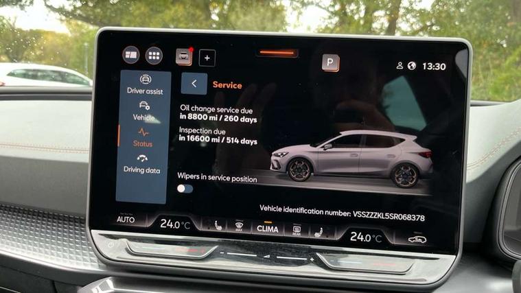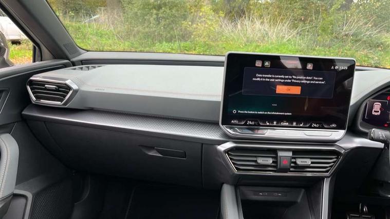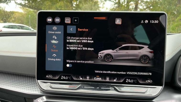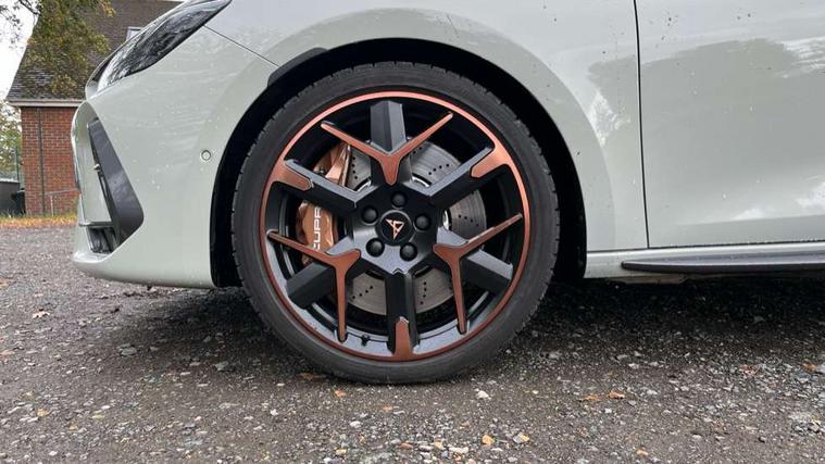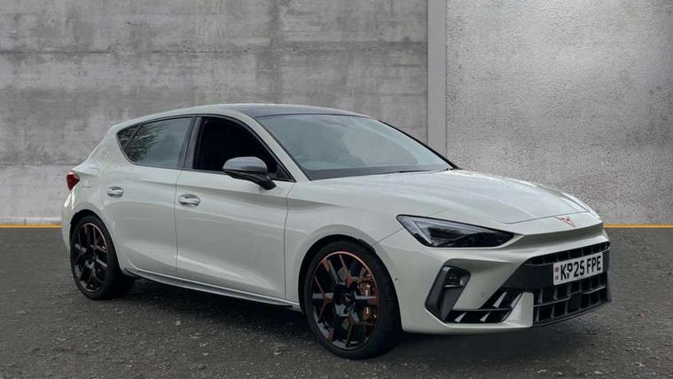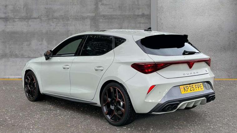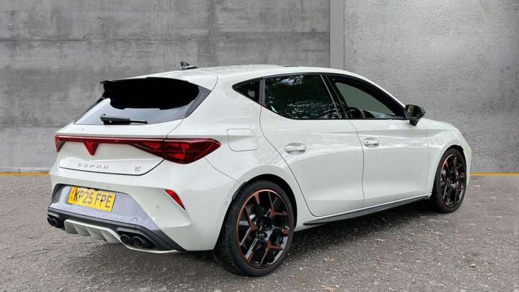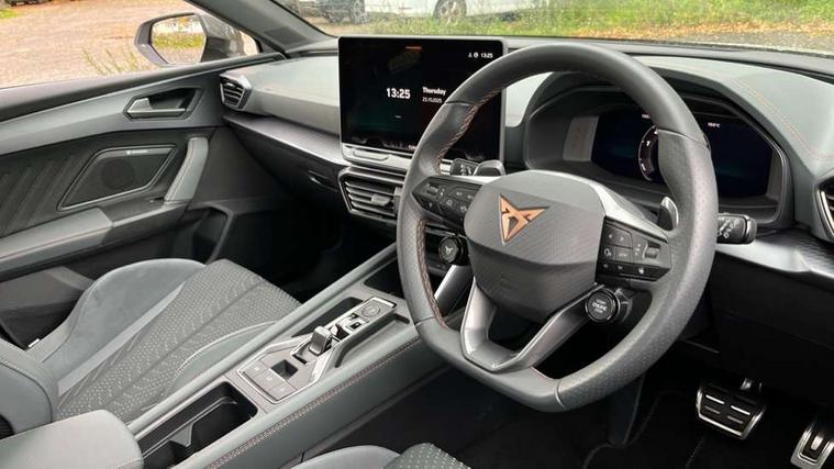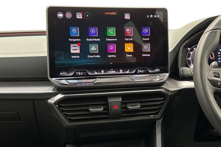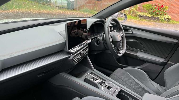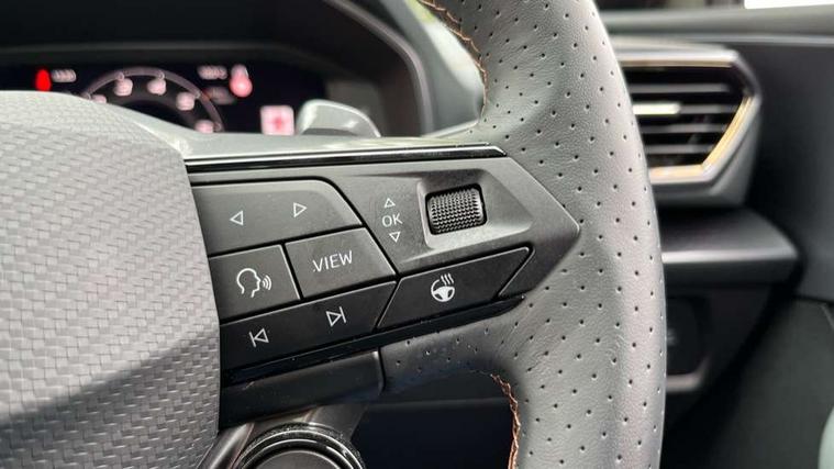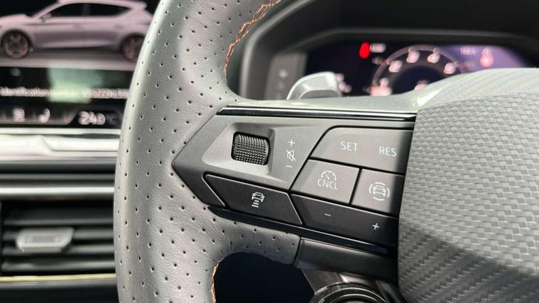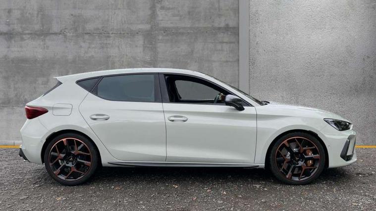 Adaptive cruise control with follow-to-stop and speed limiter, CUPRA drive profile selection with (Comfort/Sport/Individual), throttle response and gearshift mode, Digital cockpit, Dynamic road sign display, E-call, Four x USB Type C ports (2 in front and 2 in rear), Front and rear parking sensors, Front assist with forward collision warning braking reaction to vehicles, pedestrians and cyclists, Full link smartphone integration with Mirror Link, wireless Apple CarPlay and wired Google Android Auto, Intelligent park assist, Lane change assist with emergency assist, Lockable tailgate, Rear view camera, RPM, trip computer, outside temp gauge, instrument light brightness, low fuel warning light, lights on reminder, gearshift indicator, Service interval indicator, Side and exit assist, Start/stop system with regenerative braking, Wireless phone charger, Auxiliary input socket, Immersive by Sennheiser TM - 10 speakers, 1 central speaker, 1 subwoofer, Auto dimming rear view mirror, Body colour door handles, Body coloured bumpers, Cupra sports bumpers, Dark tinted rear windows, Electric front/rear windows, Electrically adjustable, heated and folding door mirrors, High beam assist, LED front fog lamps with cornering function, LED rear fog lamp, Matrix LED Headlights with variable light distribution, Matrix Beam and Dynamic headlight range control, Rain sensing wipers, Rear side wing doors, Rear wash/wipe, Separate daytime running light with automatic headlight control and coming home feature, Third brake light, Welcome light with logo projector in door mirrors, 12v power supply in centre console, 3 seat bench in 2nd row, 5 headrests, 60/40 split rear bench seat with armrest, Ambient lighting (glovebox, footwell, ambient lighting multicoloured), Black headlining, Cupra sports pedals, CUPRA Supersports, heated steering wheel with satellite buttons, Electrically adjustable driver seat and lumbar support with memory function + manually adjustable passenger seat, Folding boot cover, Front and rear reading lights X 4, Front centre armrest, Heated front seats, Height/reach adjust steering wheel, Illuminated interior front door sills, Interior wraparound lighting, ISOFIX points in outer rear seats with top tether anchorage points, Single front passenger seat, Sunvisors with illuminated mirror, Textile cloth upholstery, Three zone climate control, Dynamic and comfort pack - Leon Cupra, Media system plus with 12.9" display + navigation pack - Leon Cupra, 3 point seatbelts on all rear seats, ABS, Akebono performance brake calipers, Brake control system - ESC and brake booster, Child proof door locks, Driver and front passenger airbags with front passenger airbag de-activation, front side and curtain airbags, Electronic parking brake, Hill hold control, Pre-crash front and rear seat belt tensioner, window closure and hazard lights, Rear disc brakes, Seat belt reminder for front and rear seats, Tiredness recognition system, Tyre pressure monitoring system, Anti theft alarm system with interior monitoring in cab, backup horn and towing protection, KESSY Advanced - Keyless start, keyless entry, Locking wheel bolts, Chrome and copper interior detailing, 19" Hailstorm forged machined R black and copper alloy wheel with 91Y tyres, Breakdown kit, Tool kit,
