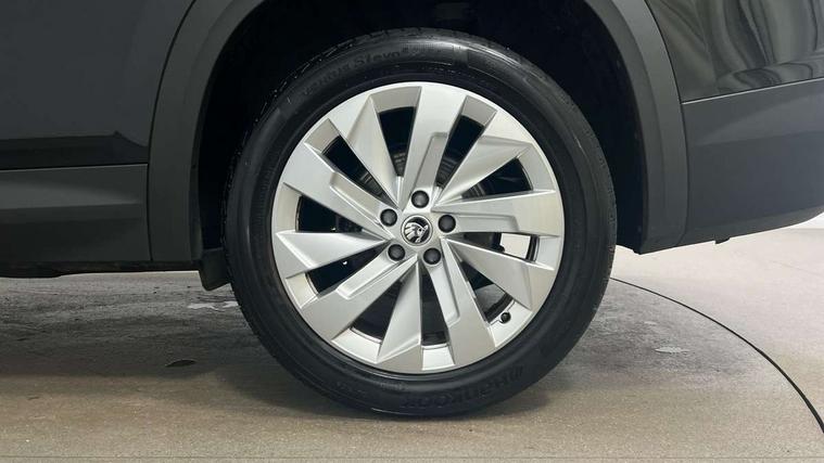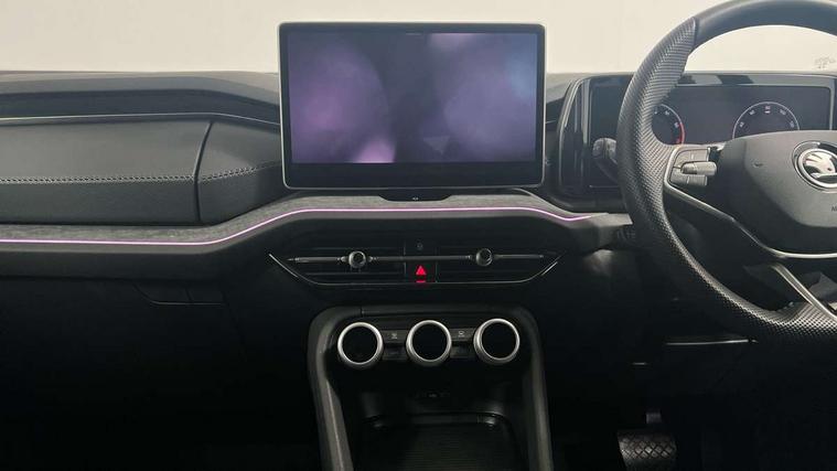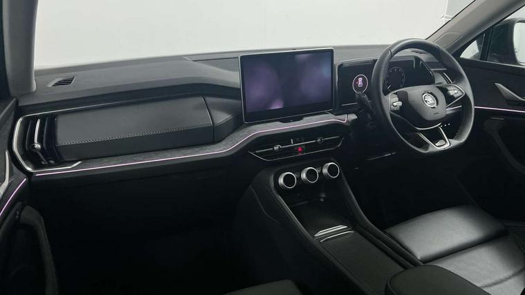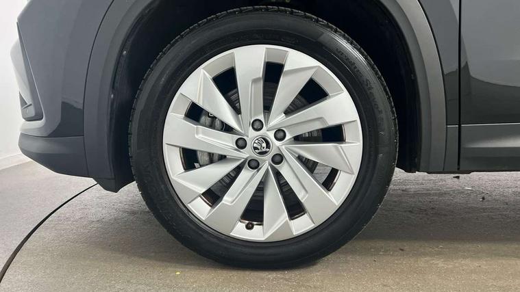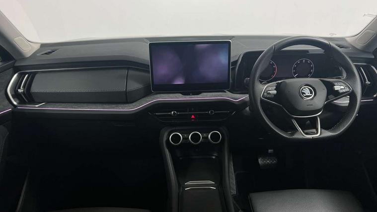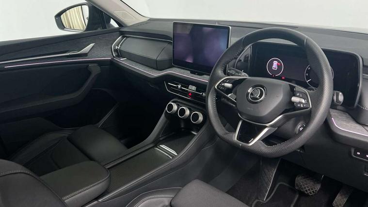 13" satellite navigation touchscreen display, Blind spot detection with door exit warning, Bluetooth system, ChatGPT functionality, Drive mode selector, Driver alert with fatigue sensor, Driver drowsiness alert system, Dry display cleaner, e call+, Front cross traffic assist, Lane assist, PAS, Rear traffic assist, Tailgate unlocking from outside, Traffic sign recognition, USB C Port x 2 in front centre console, Virtual Cockpit - 10.25" digital display, Voice control system, Wireless charging for two smartphones (15W) with cooling function, Wireless SmartLink for Apple CarPlay and Android Auto, Stop/start function, 2x USB-C in the rear, DAB Digital radio, Aero front windscreen wipers with intermittent function, Auto dimming rear view mirror, AWL (all weather lighting) and all weather light with cornering function, Black wheel arch surrounds, Body colour bumpers, Body colour door mirrors and handles, Cornering light and poor weather light, Electric folding /adjustable/separted heated/folding door mirrors, auto dimming with boarding sports and memory function, Electric front and rear windows, Exterior black decorative trims, Heat insulating glass in windshield, Heated rear window, Ice scraper in fuel tank cap, Invisible tailpipe, LED daytime running lights, LED third brake light in rear spoiler, Light assistant with automatic headlight control and coming home feature, Logo projection in door mirrors, Privacy glass, Rear side wing doors, Rear spoiler, Rear window wiper, Red decorative strip between rear LED lights, Safety reflectors on front and rear doors, Unique dark chrome design logo on alloy wheels, Window control switches with black trim, Windscreen wipers with rain sensor, Without engine designation, 1.5l bottle holder points in all door, 12V socket in boot, 1x centre rear reading light, 2 seat bench in 3rd row, 3 configurable smart dials with 32mm coloured display, 3 seat bench in 2nd row, 4 foldable roof handles with rear coat hooks, Ambient interior lighting - Dashboard, front-door stowage compartments, front and rear door panels and footwell lighting, Automatic gear selector on steering wheel, Chrome interior door handles, Driver/front passenger reading lights, Fabric headlining, Fixed bench 40:60:40 split folding backrests, Front and rear floor mats, Front centre armrest with jumbo box storage compartment, cup holder and 12V socket, Front courtesy lights, Height adjustable front headrests, Isofix child seat fittings in outer middle row rear seats and front passenger with top tether, Manually adjustable steering column, Pollen filter, Rear centre armrest with cupholders, Rear seat boot backrest release, Retractable luggage compartment cover, Single front passenger seat, Skoda lettering on steering wheel, Sliding trunk cover, Small Bags on the inner sides of the front backrests, Storage pocket including mobile phone pockets on the backs of the front seats, Sunvisors with illuminated vanity mirrors, Three rear height adjustable headrests, Ticket holder on A Pillar, Tri zone climate control, Umbrella in door panel x1 made from sustainable materials, Upper and lower glovebox with card holder and coin compartment, USB C port by rear view mirror for charging only (15W), Exterior styling pack - Kodiaq, Auto door release and activation of warning lights in the event of an accident, Driver and front passenger airbag with knee airbag and front passenger airbag deactivation, Electric child locks, Electronic parking brake, ESC (incl. ABS+EMD+MSR+ASR+EDL+HBA+DSR+RBS+ESBS+MCB+TSA+XDS), Front assist with braking reaction to vehicles, pedestrians and cyclists, Front disc brakes, Fuel cut off safety device, Height adjustable front 3 point seatbelts + pretensioners, Hill hold control, Junction assist with automatic emergency braking, Rear disc brakes, Safety vest holder in door, Seat belt reminder for all seats, Three point rear seat belts, Two tone horn, Tyre pressure monitor, Anti-theft wheel bolts, Immobiliser, Remote central locking with 2 keys, Breakdown kit,