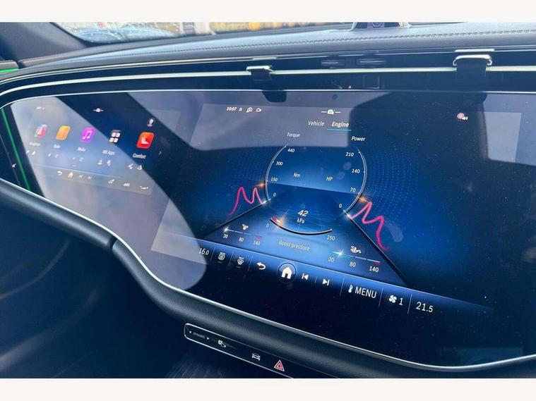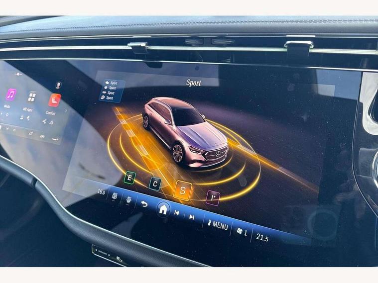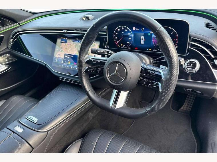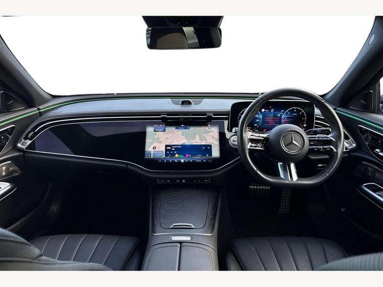 12.3" Driver display screen, 14.4" central media display, 5G Communications module, Attention assist, Augmented reality navigation, Blind spot assist, Brake wear warning display, Direct steer speed sensitive steering, Easy-pack tailgate - Powered opening/closing automatically, ECO start/stop function, Emergency call assistance, Evasive manoeuvre support, Fluorescent jacket for driver, Hard disc navigation, Head up Display, MBUX navigation premium, MBUX superscreen with 12.3" passenger display and privacy function, MBUX voice control, Mercedes connect me, Outside temperature display, Preinstallation for live traffic, Remote bootlid closing, Remote Services Premium, Selfie and video camera, Service indicator (ASSYST), Status display for rear seat belts in instrument cluster, Trip computer in multifunction display showing current fuel consumption, Wireless charging, Wireless smartphone integration with Apple CarPlay and Android auto, 48V Mild hybrid technology, 66 litre fuel tank, 9G TRONIC automatic transmission, Agility control suspension with selective damping and lowering, Bluetec emission control, Diesel particulate filter, Integrated starter generator Gen 2, Rear air suspension with level control, Sporty engine sound system, 2 USB ports in centre console, 2 USB ports in the rear, Burmester 4D premium sound system, DAB Digital radio, Preinstallation for MBUX Entertainment Plus, Sound visualisation, 3rd brake light, Acoustic glass, Adaptive brake lights, Aerial integrated in rear window, AMG bodystyling, Auto dimming driver's door mirror, Auto dimming rear view mirror, Black radiator grille, Chrome roof rails, Digital air vent control, Electric folding door mirrors, Electric windows with one touch opening/closing and obstruction sensors, Electrically adjustable and heated door mirrors, Heat insulating privacy glass, LED daytime running lights, LED digital light with adaptive highbeam assist plus, Pre-installation for roof rail systems, Rear side wing doors, Rear wiper, Surround lighting with logo projection, 3 seat bench in 2nd row, 4 way lumbar support, Active ambient lighting, AMG brushed stainless steel sports pedals with rubber studs, AMG floor mats, AMG line interior, Automatic child seat recognition sensor, Central stowage compartment with USB socket for use with Android Auto and Apple CarPlay, Comfort seats, Courtesy lights in rear grab handles with reading light functionality, Folding rear seat backrest, Front centre armrest with stowage compartment, Glove compartment - lockable, air conditioned and illuminated, Head restraints for driver and front passenger (four-way adjustability) and in rear (two-way), Heated front seats, Illuminated door sills, Multifunction sports steering wheel in nappa leather, Roof liner in black fabric, Seat occupancy sensor for front passenger seat, Single front passenger seat, Steering wheel touch control buttons for audio and onboard settings, Sunvisors with illuminated vanity mirrors, Thermotronic 4 zone climate control, Keyless Go comfort package - E Class, Leather package - E Class, Memory package - E Class, Parking package with 360 degree camera - E Class, USB plus package - E Class, 3x3 point rear seatbelts, Active bonnet pedestrian safety measure which detects an impact and raises bonnet, Adaptive brake system with HOLD function and brake drying in the wet, Airbags - sidebag for driver and front passenger with combined thorax/pelvis bag, Anti-lock braking system (ABS), Automatic front passenger airbag deactivation, Central airbag, Childproof locks manually operated for rear doors and electrically operated for rear power windows, Driver and adaptive front passenger airbags, Electronic parking brake, Electronic Stability Programme, Hill start assist, ISOFIX child seat attachment points two outer rear seats, Knee airbags, Pedestrian protection, Pre-Safe anticipatory safety system, Tyre pressure monitoring system, Warning triangle and first aid kit, Window airbags, Alarm system with interior monitoring, Central locking with interior switch, automatic locking and crash sensor with emergency opening function, Dashcam, Digital vehicle key, Guard 360 degree vehicle protection plus, Increased anti theft protection, Urban guard vehicle protection plus, Centre console trim in open pore black ash wood, Dash trim deleted for MBUX Superscreen, 19" AMG 5 twin spoke bi colour alloy wheels, Summer tyres, Tirefit,