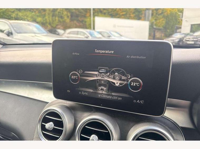 8.4" high resolution display, Active park assist with parktronic system, Attention assist, Bluetooth interface for hands free telephone, Collision prevention assist plus, COMAND online nav with colour display, radio/CD/DVD/MP3, SD card, 10GB music, Emergency Call system, speed limit assist, linguatronic voice control, Crosswind Assist, DYNAMIC SELECT with a choice of driving modes (ECO, Comfort, Sport, Sport+ and Individual), Instrument cluster with 5.5-inch TFT multi-function display, Multi function trip computer, Outside temperature gauge, Power opening/closing tailgate, Remote boot release, Service indicator (ASSYST), Speed sensitive steering, Touch pad controller for infotainment system, Traffic sign recognition, 66 litre fuel tank, Burmester surround sound system, DAB Digital radio, USB connection, Adaptive brake lights, Aerodynamic rear spoiler, Aluminium roof rails, Automatic headlights, Body colour door mirrors, Body coloured bumpers, Chrome exterior trim, Electric panoramic sunroof with sunblind, Electric windows one touch open/close, Electrically adjustable and heated door mirrors, Exhaust tailpipe finisher, Heated windscreen washers, LED daytime running lights, LED rear lamps, Privacy glass (to rear of B post), Radiator grille with integral star and 2 louvres in matt iridium silver with chrome trim, Rain sensor windscreen wipers, Range adjustable headlights, Rear wiper, Tinted glass all round, 2 cupholders in front centre console, 2 way rear head restraints, 3 spoke leather steering wheel, 4 way adjustable front head restraints, 4 way electric lumbar support for driver and front passenger, 40:20:40 split folding rear seats, Ambient lighting, Auto Mercedes-Benz child seat recognition sensor, Automatic climate control, Dividing net - rear, Electric front seat height adjustment, Front armrest with storage box, Front door sills with Mercedes Benz lettering, Gearshift paddles, Heated front seats, Illuminated glovebox, Multifunction steering wheel, Rear top tether child seat ISOFIX attachment, Sunvisors with illuminated vanity mirrors, Velour floormats, Easy-pack load compartment cover, Interior lighting pack - GLC, Memory pack - GLC, Mirror pack - GLC, Storage pack - GLC, 3 rear 3 point seatbelts, ABS with Brake Assist, Active bonnet, Adaptive brake system, Child proof door locks, Drivers knee airbag, Dual stage driver/passenger airbags, Electronic parking brake, ESP with ASR, Front and rear seatbelt reminder, Front passenger seat occupancy sensor, Front side airbags, Hill hold function, Tyre pressure monitoring system, Warning triangle and first aid kit, Window airbags, Alarm system/interior protection/immobiliser, Automatic door locking, Keyless entry and keyless start, Remote central locking, All season tyres, Tyre inflation kit,