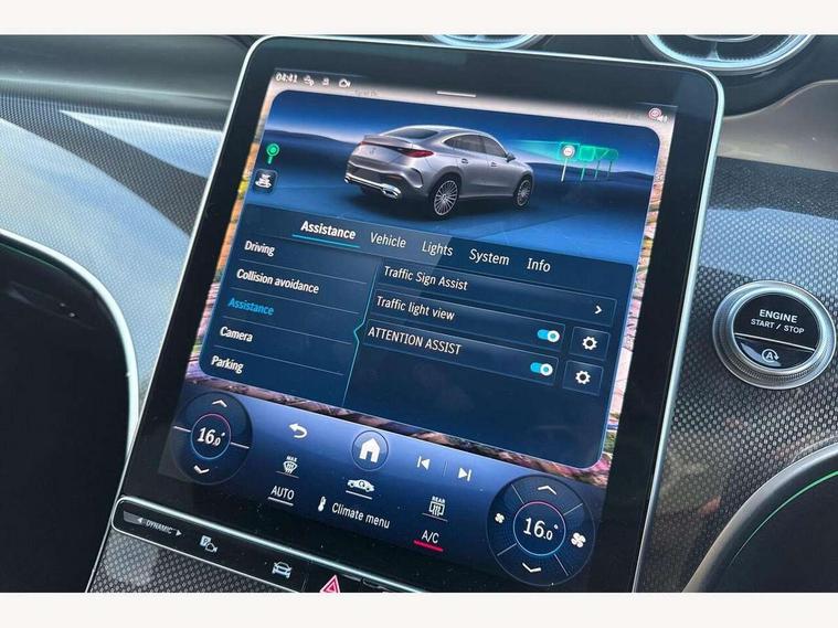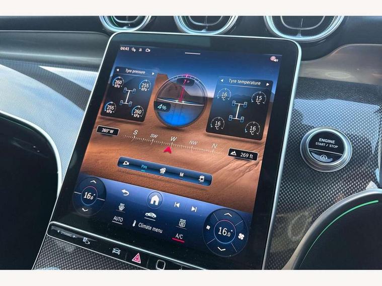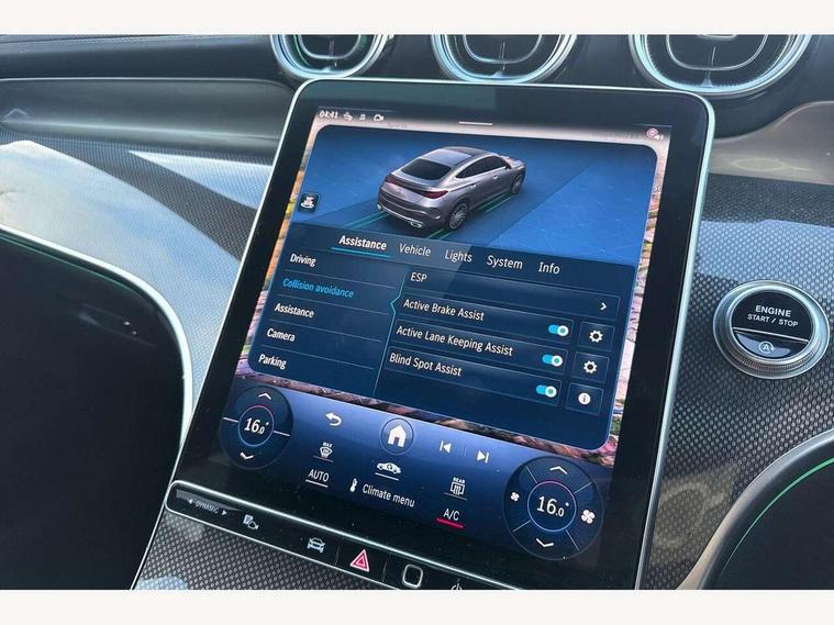 11.9" high resolution multimedia colour display, 12.3" Digital individually configurable instrument display, Acoustic presence indicator, Active lane keeping assist, Attention assist, Blind spot assist, Bluetooth interface for hands free telephone, Collision prevention assist plus, Cruise control with speedtronic variable speed limiter, Dashcam - front camera for video recording, Direct steer speed sensitive steering, DYNAMIC SELECT with a choice of driving modes (ECO, Comfort, Sport, Sport+ and Individual), eCall emergency call system, ECO start/stop function, Fingerprint scanner, Fluorescent jacket for driver, Hard disc navigation, Instrument display in miles with English lettering, MBUX augmented reality for navigation, MBUX navigation premium, MBUX voice control activated by keywords "Hey Mercedes", Mercedes me connect, Multi function trip computer, Outside temperature display, Remote boot release, Remote services, Road sign recognition system, Service indicator (ASSYST), Smartphone integration, Status display for rear seat belts in instrument cluster, Traffic sign assist, Wireless charging, 48V Mild hybrid technology, 4MATIC permanent four wheel drive, 62 litre fuel tank, 9G TRONIC plus automatic transmission, Petrol Particulate Filter (PPF), Sport suspension, DAB digital radio tuner, MBUX extended functions, Mercedes benz sound system, Pre installation for Mercedes Benz Link, Adaptive brake lights, Adaptive high beam assist plus, Aluminium look running boards with rubber studs, AMG bodystyling front apron, rear apron and side skirts, AMG Line exterior, Auto headlights, Body colour bumpers, Body colour door mirrors, Digital light LED headlights, Electrically adjustable door mirrors, Front and rear electric windows, Headlight washers, Heat insulating dark tinted glass, Heated rear window, High level LED brake light, Integrated LED daytime running lights, LED indicator lights, LED rear fog lights, LED tail lamp, Motor way mode function and locator lighting, Noise acoustic glass, Radiator grille with Mercedes Benz pattern and integreated Mercedes star and louvre in dark grey matt with chrome inlay and black frame, Rain sensor windscreen wipers, Range adjustable headlights, Rear side wing doors, Rear wiper, Transparent Bonnet, Two chrome plated tailpipe trim elements, Variable front intermittent wipers, Welcome and follow-me home light functionality, Wider wheel arch for AMG wheels, 3 seat bench in 2nd row, 40:20:40 split folding rear seats, Ambient lighting premium, AMG line interior, Artico man-made leather upholstery, Audio and onboard settings control on multifunction steering wheel, Automatic child seat recognition sensor, Black fabric roof lining, Black floor mats with AMG lettering, Double cup holder in centre console, Easy-pack removable load compartment cover, Electrically height/reach adjustable steering column, Front centre armrest with stowage compartment, Front head restraints, Galvanised steering wheel gearshift paddles, Heated front seats, Illuminated door sill panels with Mercedes Benz lettering, Illuminated glove compartment, Instrument panel and beltlines in ARTICO manmade leather in nappa look, Multifunction sports steering wheel in nappa leather, Rear centre headrest, Rear head restraints, Rear top tether child seat ISOFIX attachment, Single front passenger seat, Sports pedals with stainless steel surfaces and rubber studs, Sports seats, Sun visors, THERMATIC 2 zone automatic climate control, Anti theft protection package - GLC, Boot comfort package - GLC, Exterior chrome package - GLC, Interior chrome package - GLC, Interior lighting pack - GLC, Keyless-Go comfort package - GLC, Memory pack - GLC, Mirror pack - GLC, Parking package with 360 degree camera - GLC, Seat comfort package - GLC, Stowage space package - GLC, USB Plus Pack - GLC, 3 rear 3 point seatbelts, Active braking assist, Anti-lock braking system (ABS), ASR traction control, Automatic front passenger airbag deactivation, Black seat belts, Brake calipers with Mercedes-Benz lettering + perforated brake discs, Braking system with larger brake discs on the front axle, Child proof door locks, Dual-stage airbags - driver and front passenger, driver knee bag and window bags for driver, front passenger and rear passengers, Electronic parking brake, Electronic stability programme (ESP) with curve dynamic assist and cross wind assist, Front and rear seatbelt reminder, Front passenger seat occupancy sensor, Front seatbelt pretensioners, Hill start assist, Tyre pressure monitoring system, Warning triangle and first aid kit, Automatic door locking, Guard 360 degree vehicle protection plus, Interior protection/immobiliser, Remote central locking, Centre console in metal structure finish, Metal structure trim, 20" AMG 5 spoke aerodynamically optimised light alloy wheels in painted black with high sheen finish, Summer tyres, TIREFIT with tyre inflation compressor,