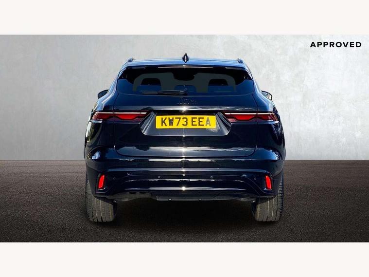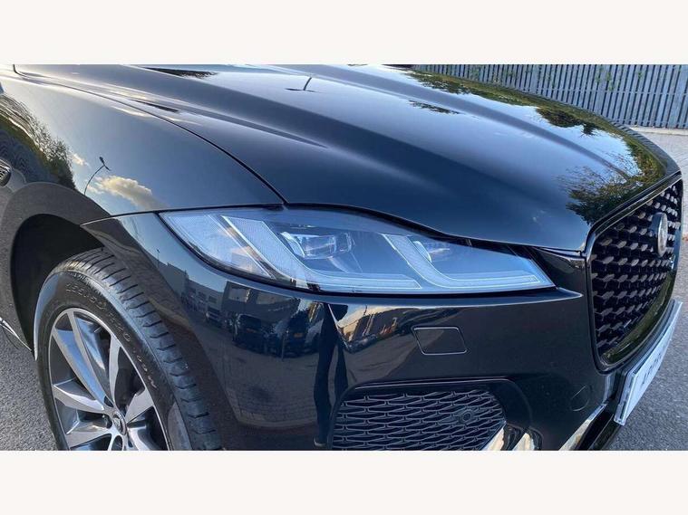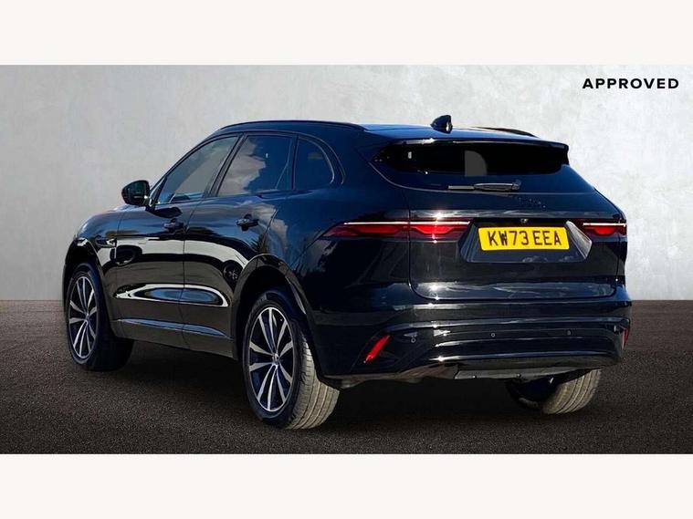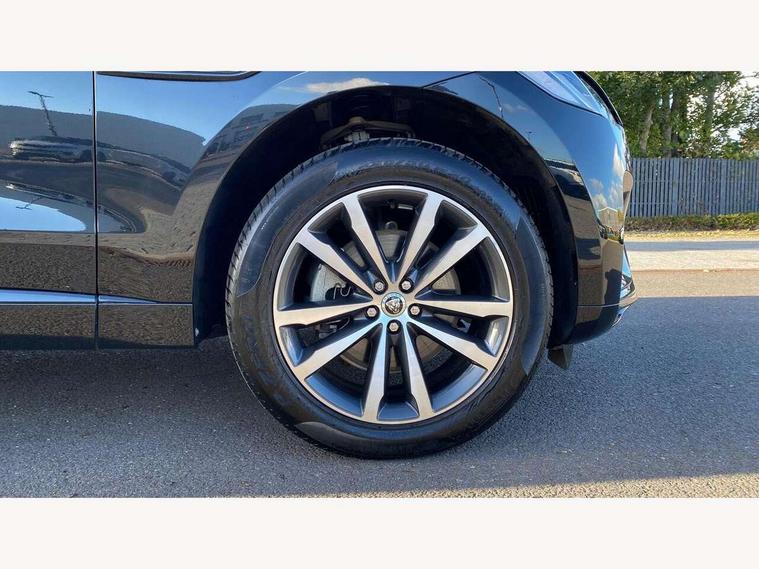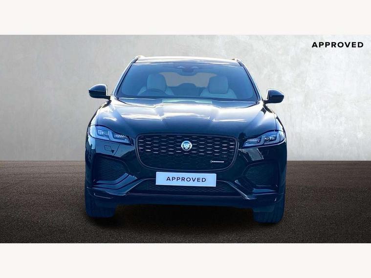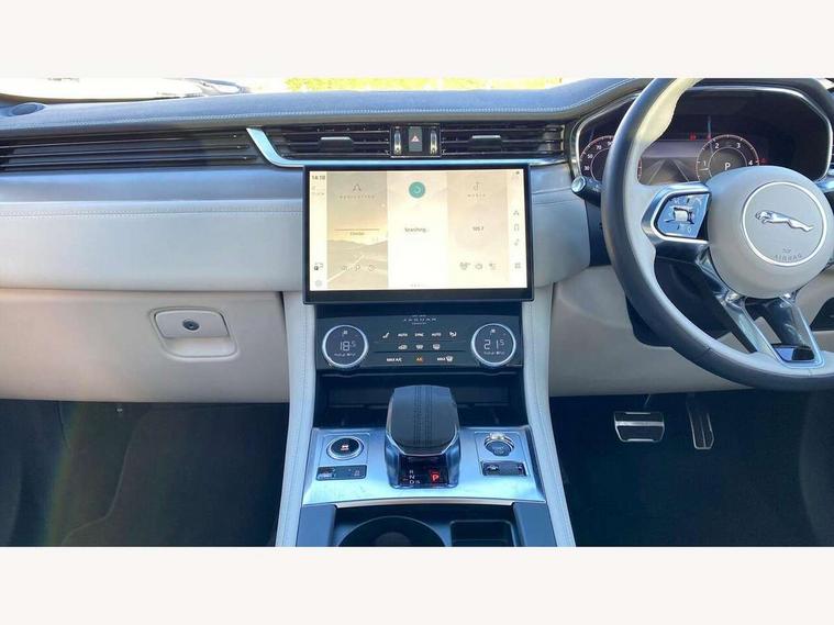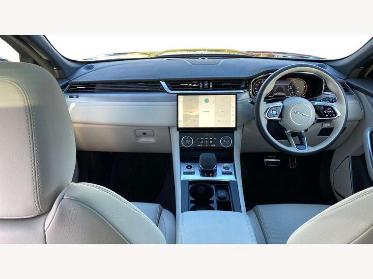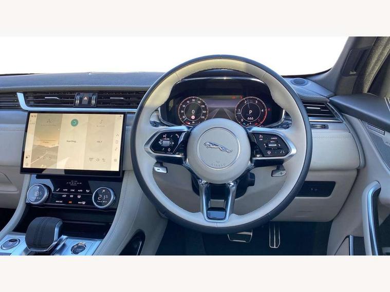 11.4" touchscreen, Android Auto, Apple car play, Blind spot assist, Bluetooth connectivity, Clear exit monitor, Driver alert system, Driver condition monitor, eCall emergency call system, Eco driving style assistant, Electric power assisted steering, InControl remote, Interactive driver display digital with 12" TFT display, Jaguar Toggle shift selector, Lane departure warning system, Lane keep assist, Outside temperature gauge, Personalisation profile management, Pivi pro connected navigation system with app interface and media storage, Pro services and wifi hotspot, Push button starter, Rear traffic monitor, Service interval indicator, Speed proportional steering, Start up sequence with movement in dials and lighting, Traffic sign recognition with adaptive speed limiter, Trip computer, Voice control system, Wireless device charging, 8 speed automatic transmission, All terrain progress control, All Wheel Drive (AWD), Open differential with torque vectoring by braking, AM/FM radio, Bluetooth streaming, DAB Radio (Digital Audio Broadcasting), Dynamic volume control, InControl apps, InControl protect, iPod integration, 3 flash lane change indicators, Animated directional indicators, Approach Illumination, Auto dimming rear view mirror, Auto high beam assist, Automatic headlights, Electric heated/power fold memory door mirrors with approach lights and auto dimming driver side, Electric windows with one touch open/close and anti trap, F-Pace and R Dynamic badge, Green tinted glass, Heated front windscreen + heated washer jets, Heated rear window with timer, Jaguar script and leaper, LED High level third brake light, LED tail lights, Metal load space scuff plates, Non acoustic front windscreen, Privacy glass, R Dynamic badge on side door, Rain sensor windscreen wipers, Rear fog lights, Rear metal tread plates, Rear side wing doors, Rear wiper, Trailer stability assist, Variable front intermittent wipers, 12V power point front, 3 rear headrests, 3 seat bench in 2nd row, Additional power sockets - Two additional USB sockets in rear centre console and one 12V socket in trunk, Air distribution speed, Bright metal foot pedals, Centre armrest console, Centre console with side storage, Configurable cabin lighting, Deletion loadspace storage rails, Door sill tread plates, Fold flat front seats, Front centre armrest with storage compartment, Front door storage space, Glovebox finisher with jaguar script, Heated steering wheel, Hooks in loadspace, Illuminated glovebox, Interior front door handles with separate locking switches, ISOFIX on outer rear seats, Jaguar sense, Leather steering wheel, Luggage tie downs in loadspace, Mist sensing, Multifunction steering wheel, Overhead lighting console, Overhead stowage for sunglasses, Passive front head restraints, Premium carpet mats, Rear air vents, Rear armrest with twin cupholders, Rear centre headrest, Rear door storage space, Reversible boot floor, Satin chrome gearshift paddles, Shopping bag hook, Single front passenger seat, Sunvisors with illuminated vanity mirrors, Twin front cupholders with cover, Online Pack with data plan - F-Pace, 355mm front brakes and 325mm rear brakes, 3x3 point rear seatbelts, ABS, All surface progress control (ASPC), Brake pad warning light, DSC - Dynamic Stability Control, Electric parking brake (EPB), Emergency brake assist, Front airbags with passenger seat occupant detector, Front and rear seatbelt reminder, Front side airbags, Full length side window curtain airbag, Hill launch assist, Power operated child locks, Traction control, Tyre pressure monitoring system, Immobiliser, Keyless entry, Keyless Start, Locking wheel nuts, Perimeter alarm, Remote central locking, Valet mode,