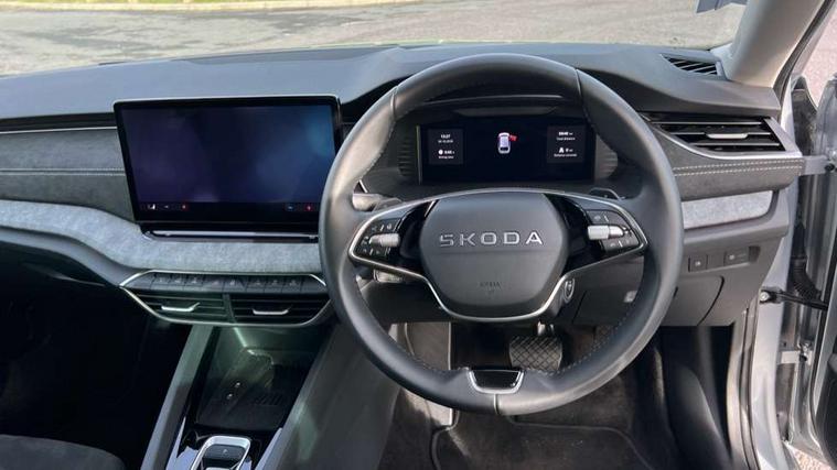 1x USB Typc C port in rear view mirror, 4x USB Type C ports - 2x in front centre console and 2x in rear (45W), Drive mode selection, Driver fatigue sensor, eCall emergency system, Electro-mechanical power steering, Front assist system, Traffic jam assist, Traffic sign recognition, Turn Assist, Virtual Cockpit - 10.25" digital display, Voice control system, Wireless charging (15W) with cooling function, Wireless SmartLink for Apple CarPlay and Android Auto, 13" touchscreen display with navigation, DAB Digital radio, Aero front windscreen wipers with intermittent function, Auto dimming rear view mirror, Body colour bumpers, Body colour door mirrors and handles, Chrome grille surround, Chrome roof rails, Chrome strip in lower front bumper, Chrome window surrounds, Electric front and rear windows, Heated rear windscreen, High level third brake light, Ice scraper in fuel cap, LED daytime running lights, LED Headlights, Logo projection in front doors, Rain and light sensors, Rear fog light on one side, Rear privacy glass, Rear side wing doors, Rear spoiler, Rear window wiper, 12 volt socket in boot, 3 rear headrests, 3 seat bench in 2nd row, 4 foldable roof handles, Front head restraints, Heated front seats, Illuminated glovebox, Interior door handles in dark chrome, Jumbo Box storage, Luggage compartment lighting x2 lights, Mechanical rear seat release from boot, Single front passenger seat, Steering wheel in black leather with black stitching, Storage compartments in left and right of boot, Sun visors with mirrors, Sunglasses storage, Ticket holder, Umbrella in door panel, Unsplit rear bench seat, split folding backrest with centre armrest with cupholder, Comfort package - Octavia Estate, Simply clever package premium - Octavia, 3x3 point rear seat belts, Alarm with interior monitoring, tilt sensor and back up horn, Curtain airbags and front side airbags, Driver and front passenger airbags, Drivers knee airbag, Electronic parking brake, ESC including ABS, EBV, MSR, ASR, EDS, HBA, DSR, Front central airbag, Hill hold assist, ISOFIX on front passenger seat and outer rear seats, Passenger airbag deactivate switch, Three point seat belts in front and rear, Two tone horn, Tyre pressure monitor, Visual and acoustic seat belt reminder, Warning reflectors in front door, Anti-theft wheel bolts, Keyless start/stop, Remote central locking, Chrome air vent surrounds,