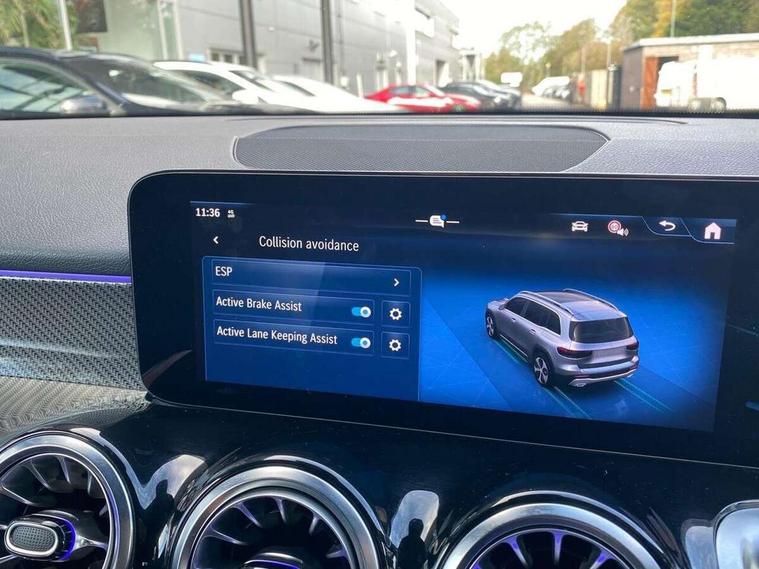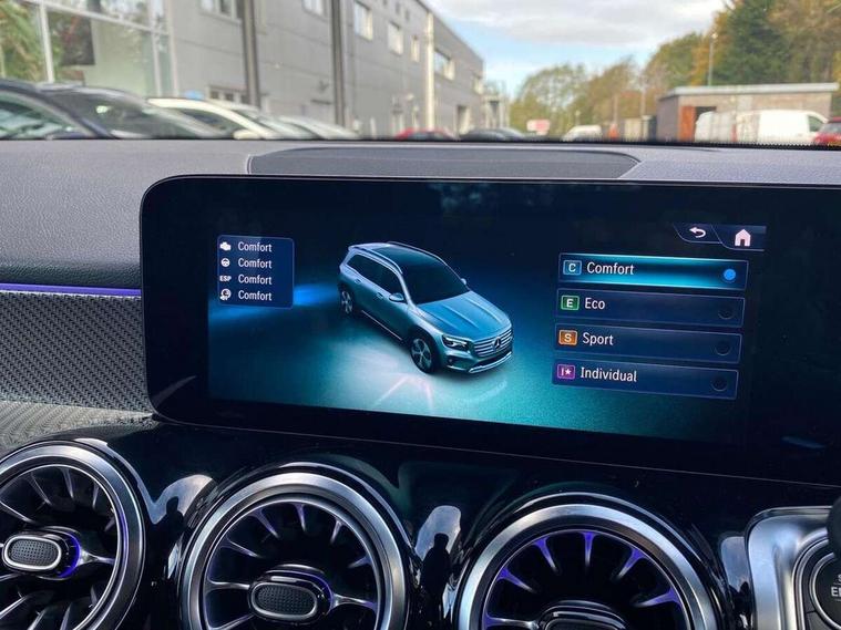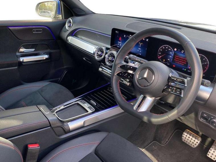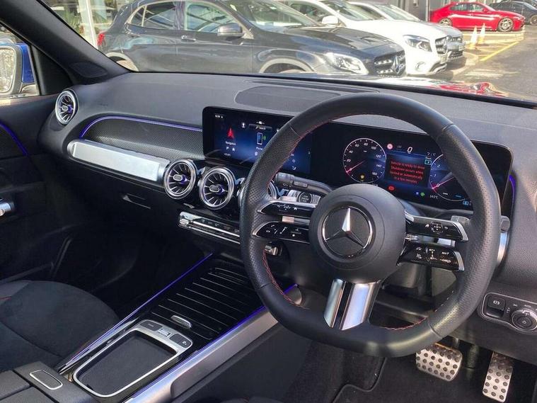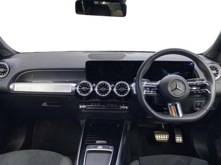 10.25 inch touchscreen central media display, 10.25" Digital instrument cluster display screen, 12 ultrasonic sensors in front and rear bumpers, 180 degree reversing camera with parking guidelines, Assisted parking: reversing backwards into perpendicular and parallel parking spaces, Attention assist - Monitors steering behaviour and long journey fatigue, Bluetooth connection, Brake pad wear indicator warning light, Car wash mode, Convenience opening and closing, Direct steering, DYNAMIC SELECT with a choice of driving modes (ECO, Comfort, Sport and Individual), ECO start/stop function, Engine start/stop button, Fluid level warning indicator for fuel, oil, coolant and washer fluid, Hard disk navigation, Hey Mercedes Voice activation, Lamp failure indicator, Lane keep assist, MBUX navigation premium, Mercedes me connect including emergency call system, accident recovery, breakdown and maintenance management, Mercedes me remote services, Outside temperature gauge, Owners manual and service booklet in English, Pre-installation of private car share, Preinstallation for parking damage notification, Radio aerial integrated into front and rear windshields, Remote boot closing, Service indicator (ASSYST), Smartphone integration with Apple CarPlay and Android auto, Speed limit assist, Tailgate, Trip computer in multifunction display with current consumption indicator, Ultrasound sensors - positioned in the handle of the tailgate, Wireless charging, Comfort suspension with ride height lowering, Rear axle multi-link, 1 USB-C port in the oddments compartment (Charge + Data transfer), 2 USB-C ports for the rear on the centre armrest (Charge only), 2 USB-C ports under the front centre armrest (Charge + Data transfer), DAB digital radio tuner, MBUX multimedia system, Mercedes Benz sound system (100 W) with 6 speakers, Pre installation for Mercedes Benz Link, Adaptive brake lights, Adaptive high beam assist, AMG front apron with front splitter in the colour of the vehicle with chrome trim element, AMG rear apron with visible tailpipe trim and chrome trim element, AMG specific/dual flow exhaust pipes in chrome (non-functional), Auto dimming rear view mirror, Beltline trim and window line trim strip in high gloss aluminium, Black grained side sill trim with chrome inlay, Body coloured door handles, Electric adjustable and heated door mirrors with integrated LED side indicators, Electric folding door mirrors, Front and rear electric windows, Headlamp assist automatic headlamp activation, Heat insulating dark-tinted glass starting from B-pillar, Heated glass rear windscreen + timer control, High level LED third brake light, Interior mirror with black reading lamps and frameless, LED high performance headlamps with integrated LED daytime running lights, LED tail lamp, Polished aluminium roof rails, Radiator grille as a diamond grille with chrome pins and central Mercedes star, Rain sensor windscreen wipers, Rear fog lamp, Rear side wing doors, Rear wiper, Single louvre in matt grey with chrome inserts and black highlights, Two visible tailpipe trim elements exhaust, Ultrasonic sensors - positioned in the front and rear bumpers, Wheel arch liners in the colour of the vehicle, 12V socket in the oddments compartment, 3 seat bench in 2nd row, 3 twin spoke flattened multifunction steering wheel in nappa leather - horizontal twin spoke in high gloss black, vertical twin spoke in silver chrome, 4 way adjustable lumbar support, 40:20:40 split folding rear seats, Air vents with silver chrome surrounds, AMG floor mats, AMG sports pedals with brushed stainless steel surfaces and black rubber studs, Automatic child seat recognition sensor, Black roof lining, Door handles with chrome inserts, Fluorescent jacket, Front and rear headrests, Front centre armrest with stowage, Galvanised steering wheel gearshift paddles in silver chrome, Handle recess lighting, Heated front seats, Height adjustable head restraints, Height/reach adjustable steering column, Interior lighting - 64 colour Ambient lighting, Luggage net on driver/front passenger seat backrest, Single front passenger seat, Sports seats, Stowage compartment with retractable cover, Sun visors with illuminated vanity mirrors, THERMATIC automatic climate control, Third row of seats for two people on rear seat, Twin front cup holders, Two outer rear seat isofix and top tether child seat fixing points, Easy pack tailgate, Interior lighting with light and sight pack - GLB, Seat comfort package - GLB, 3 rear 3 point seatbelts, Active bonnet pedestrain safety measure which detects an impact and raises bonnet by 65mm, Active brake assist includes forward collision warning system with autonomous braking, Adaptive brake assist with hold function and hill start assist, Airbags - kneebag for driver, Anti-lock braking system (ABS) with brake assist, Black seatbelts, Bonnet with power domes, Childproof locks manually operated for rear doors and electrically operated for rear power windows, Crash responsive emergency lighting, Curve dynamic assist, Driver and front passenger head and sidebags, Driver and front passenger windowbags, Dual stage driver and front passenger airbags, Electric parking brake, Electronic stability programme with acceleration skid control, Front and rear seatbelt reminder, Front brake callipers with Mercedes Benz lettering, Front passenger seat occupancy sensor, Perforated front brake discs, Tyre pressure monitoring system, Warning triangle and first aid kit, Guard 360 degree vehicle protection - Anti theft alarm system, tow away protection with visual, acoustic warning and alarm, Interior monitoring system, Keyless Go Access and drive authorisation system, KEYLESS-GO starting function, Remote central locking and crash sensor with emergency opening function, Thatcham category 1 alarm system with immobiliser and interior protection, Vehicle key with KEYLESS GO functionality, Carbon structure trim, 19" AMG 5 twin spoke light alloy wheels aerodynamically optimise