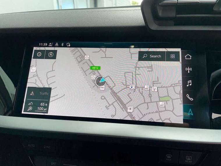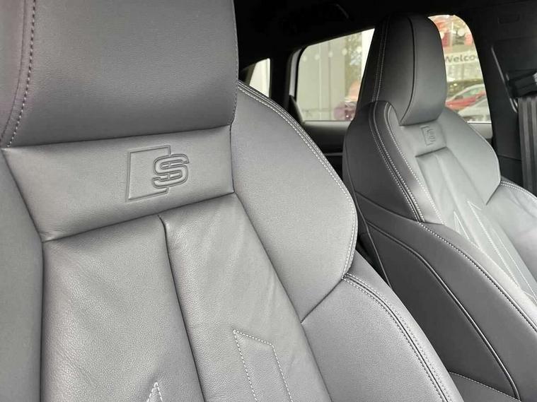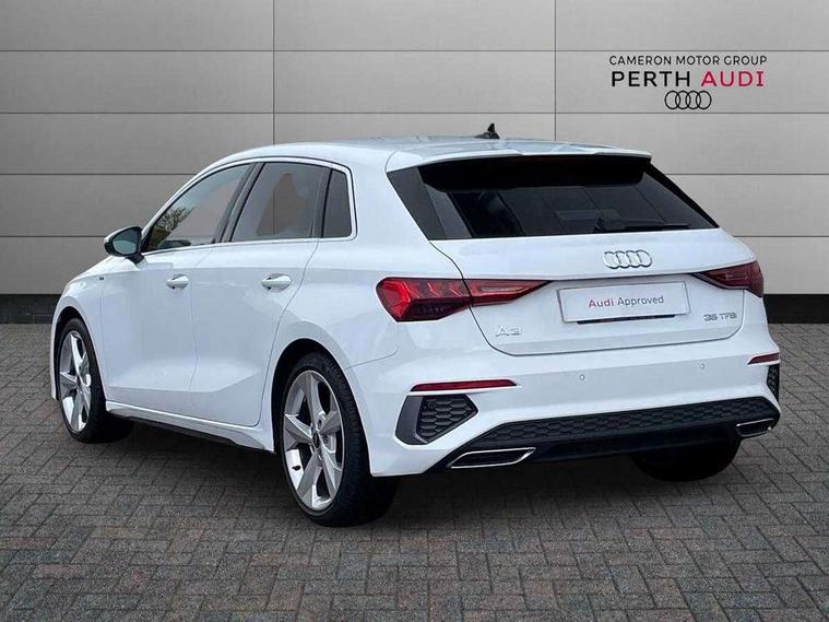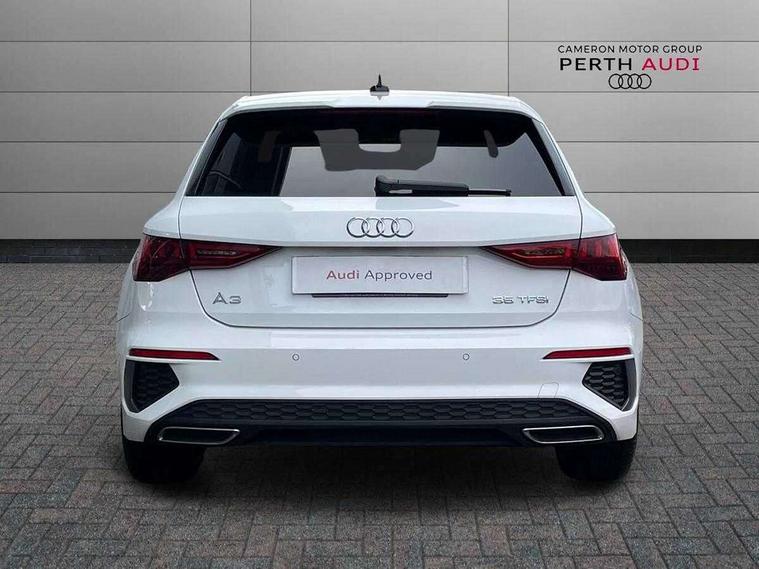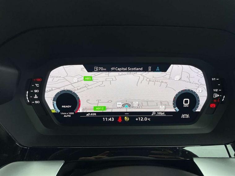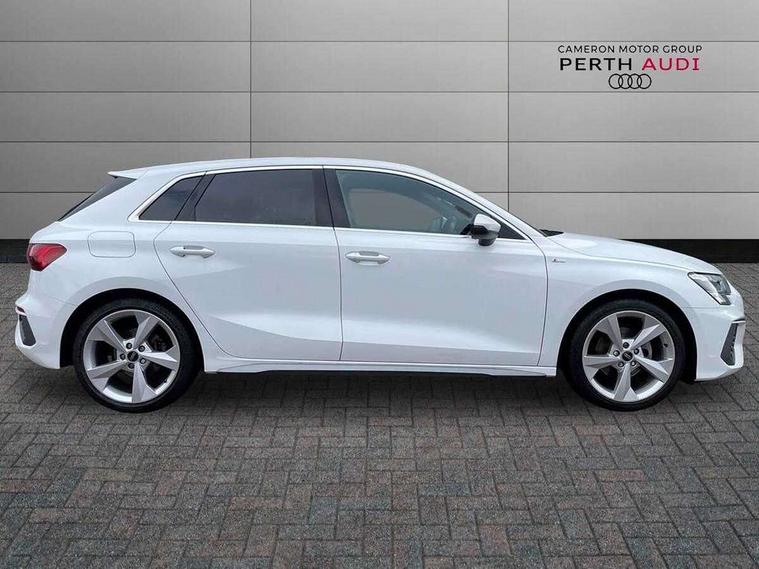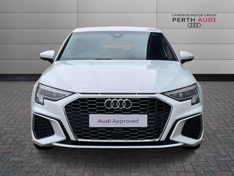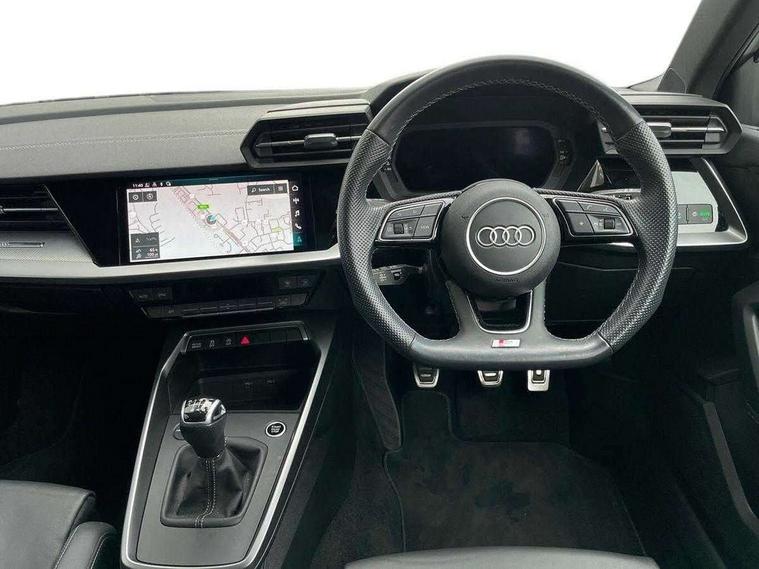 Audi drive select (Auto, Comfort, Dynamic, Efficiency and Individual), Audi smartphone interface, Audi Virtual Cockpit - 10.25" digital and colour instrument cluster, Automatic start/stop system with recuperation, Bluetooth interface, Collision avoidance assistant, Cruise control, e-Call (emergency call), Electromechanical power speed sensitive steering, Lane departure warning system, MMI Navigation Plus with high resolution 10.1" colour touch screen display, Rear parking sensors, Service indicator, Trip computer, Voice control system with natural language interaction, 2xUSB-C connection with data and charging functions, 6 passive loudspeakers, DAB Digital radio, 3rd brake light, Acoustic glass windscreen, Aluminium window trim, Auto dimming frameless rear view mirror, Electrically adjustable/heated/folding/auto dimming door mirrors with integrated LED indications + kerb view function for passenger side, Front electric windows, Illuminated aluminium inserts front door sills with S logo, LED daytime running lights, LED headlights with LED rear lights and dynamic rear indicators, Light and rain sensors, Privacy glass - dark tinted rear window, rear door and side windows, Rear electric windows, Rear side air outlets in grained matt black, Rear side wing doors, Rear wiper, S line bumpers, S roof spoiler, 12V socket and storage compartment in front centre console, 3 seat bench in 2nd row, 40/20/40 split folding rear seat bench with cupholder, Black cloth headlining, Dual zone electronic climate control, Front and rear centre armrest in leather, Front and rear headrests, Front/rear floor mats, Height and reach adjustable steering wheel, Illuminated vanity mirror, Interior lighting - glove compartment light and right hand side, Luggage compartment floor covering, Manual boot compartment lid, Manually adjustable front seats, Seat side bolsters, Single front passenger seat, Stainless steel pedals and front footrest in black, Twin leather upholstery with front sports seats S embossed logo, Aluminium interior elements pack - A3 Sportback, S line styling pack - A3 Sportback, 3x3 point rear seat belts, Audi pre sense front, Driver and front passenger airbag with passenger airbag deactivation, Electronic Stabilisation Control (ESC) including ABS, ASR and EDL, First aid kit with warning triangle and 2 safety vests, Front side airbags with head airbags and interaction airbag, Pre-sense front with pedestrian and cyclist detection, Seatbelt monitoring, Tyre pressure loss indicator, Anti theft alarm, Anti-theft wheel bolts, Immobiliser, Manual child locks, Remote control central locking, Accent surfaces in the dashboard and centre console in platinum grey silk effect paint finish, Dark spectrum aluminium inlays,
