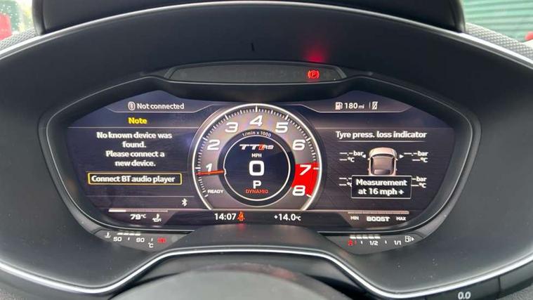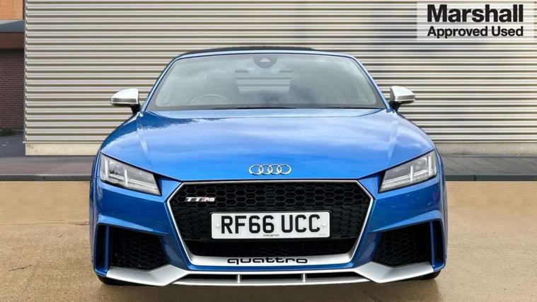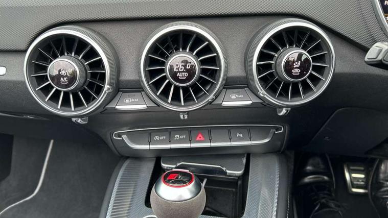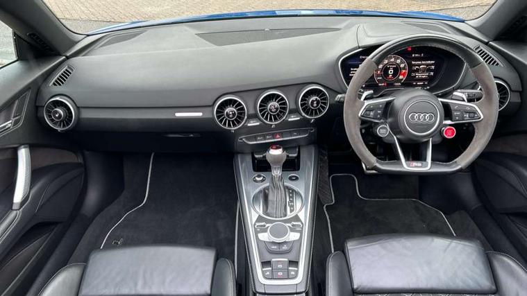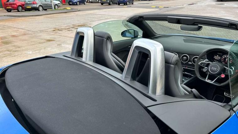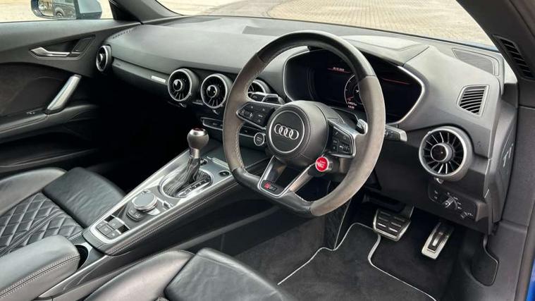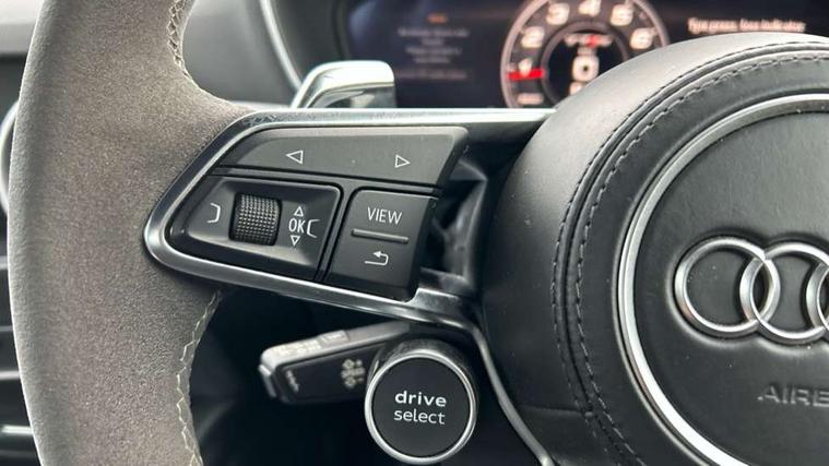 Audi active lane assist, Audi connect, Audi drive select, Audi parking system plus with front and rear sensors, Audi virtual cockpit - 12.3" high-resolution LCD display with fully customisable instrument cluster, Cruise control + speed limiter, MMI navigation plus with MMI touch, MMI touch panel, Mobile phone preparation with bluetooth interface, Progressive power assisted steering, Service interval indicator, Audi music interface, Auxiliary input socket, Bluetooth audio streaming, DAB Digital radio, MMI Radio with CD player and SD/XC card slot, Aluminium door mirror housings, Auto dimming rear view mirror, Auto headlight range control, Body colour bumpers, Electric front windows, Front spoiler, Fully automatic acoustic hood, Green tinted heat insulating glass, LED daytime running lights, LED rear lights, Wind deflector, 3 spoke alcantara sports leather multi-function steering wheel including paddle shift, Alcantara gear knob gaiter, Aluminium door sill trims, Deluxe auto air conditioning with integrated digital display, Electric lumbar support, Extended aluminium look with stainless steel pedals, Front centre armrest, Front head restraints, Front passenger seat isofix location point, Heated front seats, Height adjustable driver's seat, Height/reach adjust steering wheel, Interior elements in slate grey, Top tether anchor plate for isofix child seat, LED interior light pack - TT/TT RS, 3 point front seat belts, ABS, ASR traction control, Curtain airbags, Driver/Front Passenger airbags, EDL traction control, Electromechanical parking brake, ESP, First aid kit, Front passenger airbag deactivation, Front side airbags, Head airbags, Roll over bars, Seatbelt warning, Tyre pressure warning, Warning triangle, Anti theft alarm, Immobiliser, Keyless Start, Locking wheel bolts, Remote central locking, Tyre repair kit,