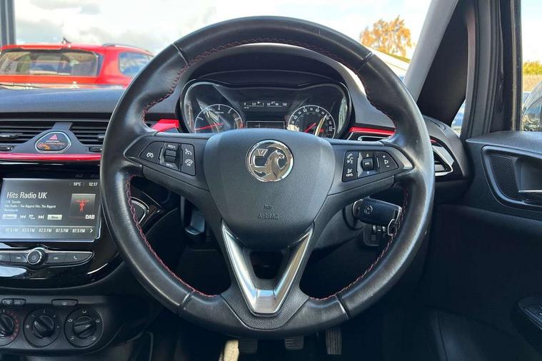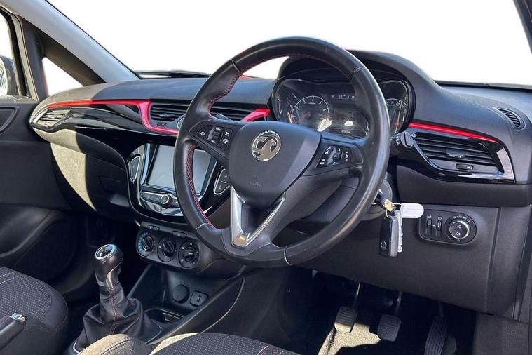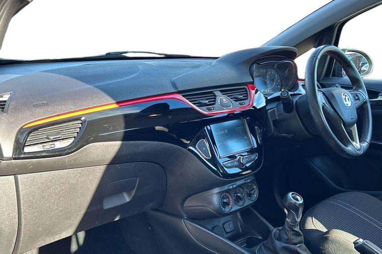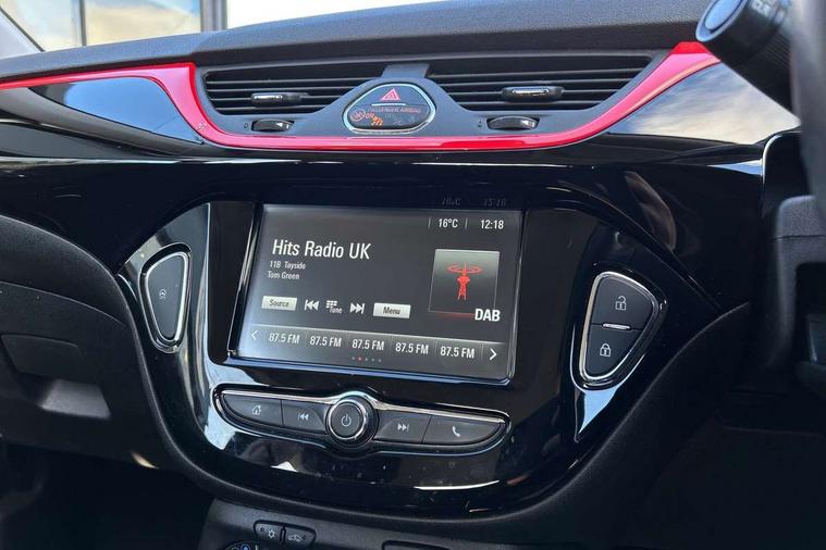 Apple car play/Android Auto, Central facia display, Cruise control + speed limiter, Digital fuel gauge with low fuel warning light, Digital water temperature gauge, Electric speed sensitive power steering, Exterior temperature gauge, Lights on audible warning, Multi function trip computer, Navi 4.0 IntelliLink navigation with 7" touchscreen, traffic program, DAB , USB, Bluetooth audio streaming, Apple CarPlay/Android auto, and microphone, Rev counter, Service indicator, Speed warning indicator, Speedometer, White graphics on black background, Front anti roll bar, Steering wheel mounted audio/cruise controls, Black foil on B-pillars, Body colour bumpers, Body colour door handles, Body coloured door mirrors, Chrome front grille, Dipping rear view mirror, Door to door illumination, Electric adjustable/manual folding heated door mirrors (wide angle on driver's side), Electric headlight beam leveling, Electrically operated front windows with safety auto reverse/one touch facility, Front fog lights with chrome surrounds, Halogen headlights, Hazard warning lamps, Headlamp levelling, Heated rear window, Heated windscreen, High level LED centre brake light, Intermittent rear wash/wipe, Laminated windscreen, LED daytime running lights, Rear fog lights, Rear wiper, Side window demist vents, Two speed windscreen wipers with variable intermittent wipe, Welcome lighting, Windscreen demist vents, 12V electrical accessory socket in front, 3 spoke steering wheel, Anti submarining ramps in all seats, Centre console with cupholders, Chrome gear knob, Chrome interior door handles, Driver's and front passenger's sunvisors, Driver's and front passenger's tiltable assist handles, Driver's and passenger's vanity mirrors with flip up cover, Driver's vanity mirror, Easy entry reclining front seats with memory, Four adjustable facia vents, Front courtesy lights, Front door pockets, Front map reading lights, Front seat belt pre-tensioners with load limiters, Glovebox with lid, Grab handles, Height adjustable driver's seat, Height adjustable front headrests, Height adjustable rear head restraints with adjustable backrest, Illuminated luggage compartment, Instrument panel light dimmer, Interior tailgate handles, Isofix child seat mounting points on outer rear seats, Lace cloth trim, Load restraining lashing points, Luggage compartment cover, Multi function steering wheel, Passenger make up mirror, Pollen filter, Reach + rake adjustable steering column, Rear bottle holder, Rear courtesy lights, Reclining front seats, Sports front seats, Storage box on driver's side lower facia, Stowage facility for luggage compartment cover behind rear seats, Twin gas assisted tailgate struts, Sight and light Pack - Corsa, Anti-lock braking system (ABS), Brake assist function, Electronic brake force distribution, Electronic Stability Programme, Energy absorbing steering column, Front and rear seatbelt reminder, Front and rear seatbelt unfastened audible warning and warning light, Front seatbelt force limiters, Gas pressure dampers, Height adjustable front seatbelts, Hill start assist, Passenger airbag deactivation system, Pedal release system, Rear child proof door locks, Reinforced passenger safety cell, Side impact protection beams, Six airbags - Driver's dual stage airbag/front passenger's dual stage airbag/front seat side impact airbags/full size curtain airbags, Three 3 point rear seatbelts, Three inertia reel lap/diagonal seatbelts, Traction control, Tyre pressure monitoring system, Electronically protected audio, Engine Immobiliser & Deadlocks, Key left in ignition audible warning, Locking wheel bolts, Remote control central locking, Visible vehicle identification number, Low rolling resistance tyres,