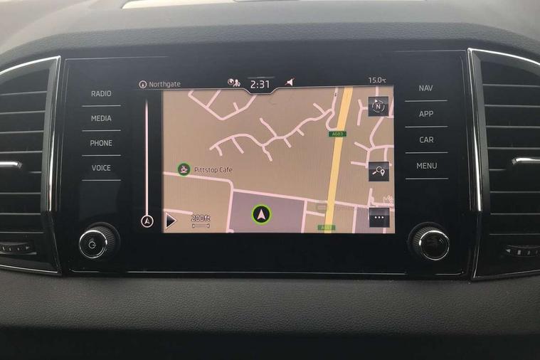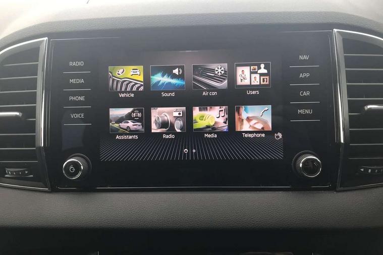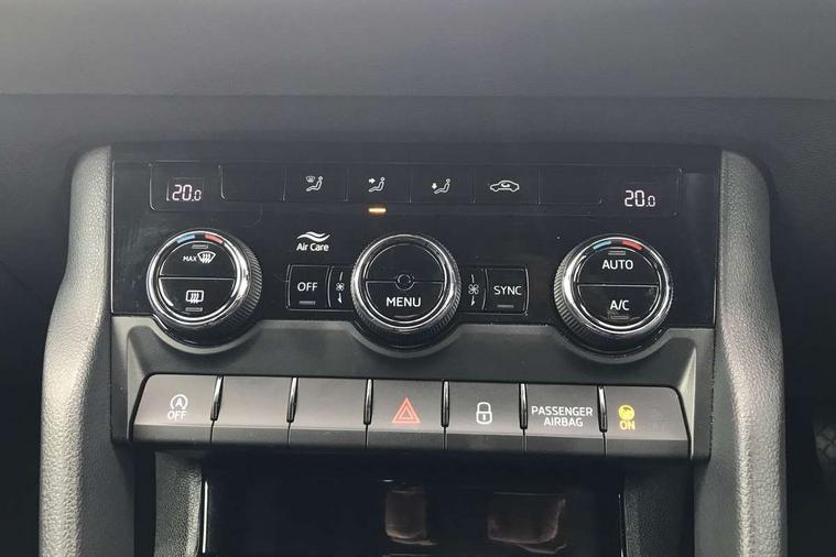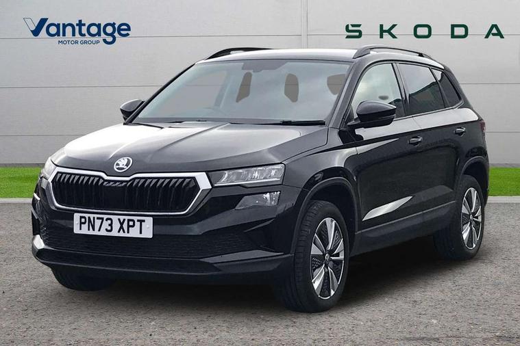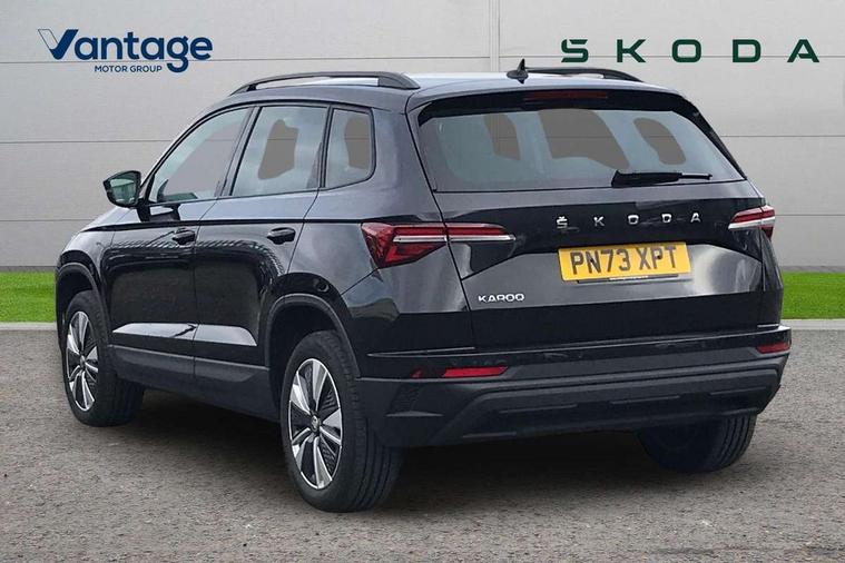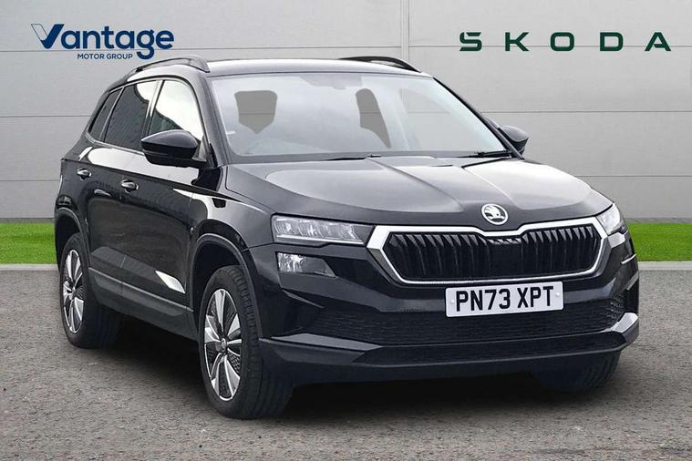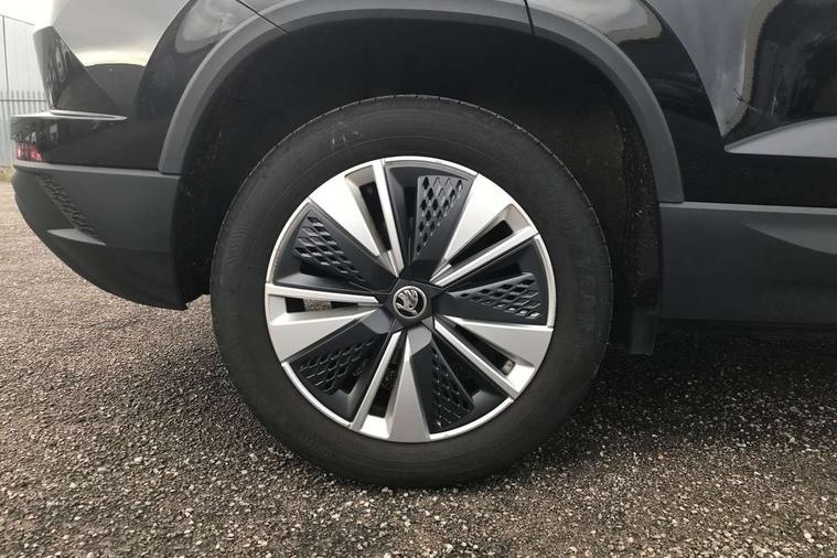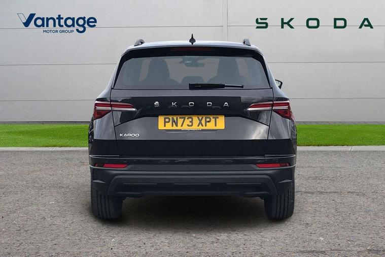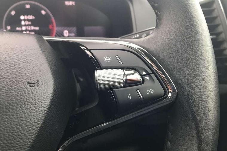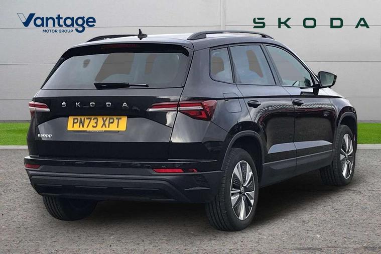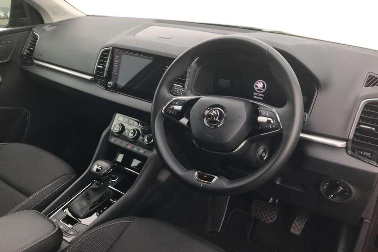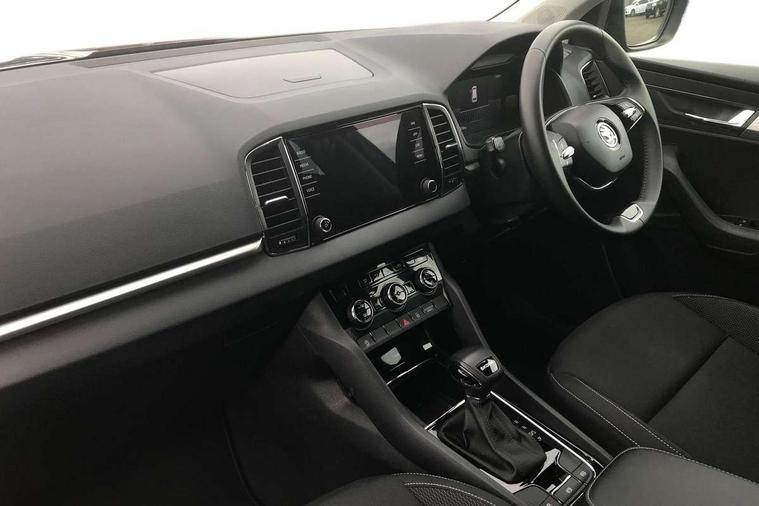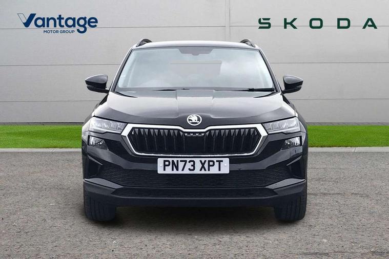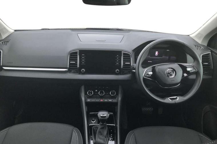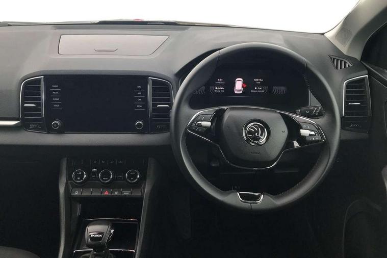 8" Digital display, Amundsen satellite navigation with 8" touchscreen display with maps Europe, WLAN and web radio, Care connect, Driver fatigue sensor, Electro-mechanical PAS, Emergency services call system, Outside temperature gauge, Service interval indicator, SmartLink wireless for Apple and wired for Android, Start/stop system with regenerative braking, USB C Port x 2 in front centre console, Diesel particulate filter, 8 speakers, DAB radio with Bluetooth, USB connection, Acoustic glass, Aero front windscreen wipers with intermittent function, Auto dimming rear view mirror with light and rain sensors, Black electric window control buttons, Body colour door mirrors and handles, Dynamic headlight range control with cornering light function, Electric front and rear windows with child proof lock, Electrically adjustable heated folding and auto dimming door mirrors, Front fog lights, Heated rear windscreen, LED daytime running lights, LED Headlights, LED rear lights with high functionality welcome effect and dynamic indicators, Light assistant (coming/leaving home/tunnel light), Plastic scuff plates, Privacy glass, Rear side wing doors, Rear window wiper with washer system and intermittent control, Safety reflectors on front doors, Third brake light, 1.5 litre bottle holders in driver and front passenger door panels, 12V socket in boot, 12v socket in front centre armrest with storage compartment and rear air vents, 2 x Tablet holder, 3 rear height adjustable headrests, 3 seat bench in 2nd row, 4 foldable roof handles with rear coat hooks, Black floor carpet, Chrome inner door handles, Double sided boot floor, Driver/front passenger reading lights, Foldable hooks in the boot, Folding tables on the front seat backrests, Front head restraints, Height adjustable driver and passenger seat, Height adjustable front three point seats belts with tensioners, Height/reach adjust steering wheel, Ice scraper, Illuminated glovebox, Illuminated luggage compartment, Interior noise suppression, Isofix child seat preparation for front passenger seat, Isofix child seat preparation outer rear, Manual lumbar support for front seats, Pearl grey interior ceiling, Pen holder, Pollen filter, Rear boot cover, Rear reading lights, Rubbish bin door, Safety vest holder, Single front passenger seat, Storage box in upper central dashboard closed, Sunvisors with illuminated vanity mirrors, Textile floor mats, Ticket holder, Tool kit, Umbrella under passenger seat, Boot pack - Karoq, Automatic door unlocking in case of crash, Automatic fuel cut off in case of crash, Child locks on rear doors, Driver airbag, Electronic parking brake with auto hold function, Emergency rear braking signal, ESC including ABS, MSR, ASR, EDS, HBA, DSR, RBS, MKB and traction control, Front side airbags, Hill hold control, Knee airbags, Passenger airbag with switch-off function, Pedestrian monitor, Seatbelt reminder signalisation and pretensioner for all seats, Three point seatbelts rear, Two tone horn, Tyre pressure display, Tyre pressure monitor, Alarm with interior monitoring, back up horn and tilt sensor with safe function, Electronic engine immobiliser, Remote central locking with 2 remote folding keys, Black centre console, Chrome framed air vents, Satin black dashboard, Satin black door trim, Anti-theft wheel bolts protection, Storage on wheel cover,