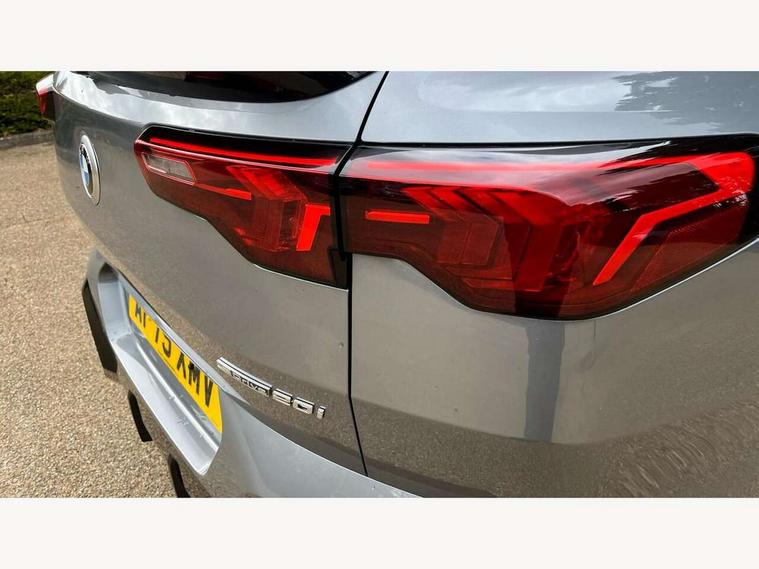 4G LTE connectivity, Attentiveness assist, Automatic start/stop function, Bluetooth / Wi-Fi interface with hands free system, BMW ConnectedDrive store and BMW Remote softwre upgrade, BMW Intelligent Personal Assistant, BMW Live Cockpit Plus - Widescreen display with 10.25" instrument cluster and 10.7" CID display, BMW Maps, BMW Operating System 9 with variable, confirgurable widgets, BMW Teleservices, Brake pad wear indicator, Condition based service, Connected drive services, Drive off assistant, Electrically opening/closing tailgate with opening/closing with remote control and contactless opening and closing, Gear display in instrument cluster including recommended gear, iDrive controller, Language version English, My modes (Personal / Efficient / Sport), Parking assistant with reversing assistant, active PDC, lateral parking aid and rear view camera, Personal Profile, Servotronic PAS, Smartphone integration for Apple CarPlay/Android Auto, Speed limiter, Touch operation on control display, Dynamic stability control, Larger Fuel Tank, Performance Control, Petrol Particulate Filter, Steptronic transmission with double clutch and gear shift paddles, BMW Personal eSim, DAB Digital radio, Tuner with diversity reception and RDS, AM radio and FM radio, B-pillar and front/rear door trim panels and exterior mirrors in matt black with mirror cap in vehicle colour, BMW radiator grille with mesh grid in black high gloss, radiator grille frame in pearl chrome, Dynamic brake lights, Electric adjustable heated door mirrors, Electric windows - front and rear, with open/close fingertip control, anti-trap facility and comfort closing, Folding door handles integrated flush with surface, Front bumper cover with air inlet trims for air curtains in matt black, Front door exit lights, Heated rear window, High Gloss Black rear spoiler, Home light, Invisible exhaust tailpipe, LED 3rd brake light integrated in rear window frame, LED daytime running lights, LED number plate light, Matt black roof strips, Rain sensor including auto headlights activation, Rear side wing doors, Rear wiper, Side sill trim panel in black matt grained, Trailer stabilisation logic, Welcome lighting, Window recess finisher strips and side window frames in matt black, Windscreen washer nozzle for rear view camera, Windscreen wipers front with heated washer nozzles, 12V - Power sockets with front centre console and luggage compartment, 12V socket in right side trim panel, 2 bag hooks in luggage compartment, 2 cup holders in front centre console, 2 front reading lights, 2 x USB Type C ports for charging and data transmission (front centre console) and 1 USB Type C ports for charging (rear centre console), 3 rear headrests, 3 seat bench in 2nd row, 3 upper retaining strap clips integrated into rear panels of seat backrests, 40:20:40 split folding rear seats, Ambient interior lighting, Anthracite front and rear floor mats, Bottle trays in all doors, Child seat ISOFIX attachment for two outer rear seats and front passenger seat with anchorage points, Driver and front passenger heated seats, Dual zone automatic air conditioning, Flat air vents on instrument panel in high gloss black, adjustable seats with elements in pearl chrome, Footrest and pedals in stainless steel look, Front and rear door pockets, Front and rear footwell lights, Front armrest with integrated control panel, Front centre console storage compartment, Front/rear adjustable head restraints, Glove compartment, Interior door handle recess light on all doors, Light on right in luggage compartment, M headliner Anthracite-A pillar trim panels, headliner in anthracite & B, C, D pillar upper trim panels, sun visors, grab handles, microphone cover in black, M leather steering wheel, Map pockets on the seats (version depending on equipment), Middle centre console storage compartment, One piece parcel shelf opens together with tailgate and removable, Rear armrest in door trim panel, Rear coat hooks, Selector lever with toggle operation, Single front passenger seat, Storage compartment lighting in centre console and storage tray in centre stack, Storage compartment net in left side trim panel, Storage compartment with folding cover under centre console armrest cushion, Storage tray in right side trim panel, Sun visors with illuminated vanity mirrors, Tilt adjustment incl. cargo function of 2nd row of seats, ABS, Automatic hold function, BMW emergency call, Braking readiness, Child lock for rear electric windows, Cornering brake control (CBC), Crash Sensor - activates hazard/interior lighting + unlocks doors, Driver/Front Passenger airbags, Driver/front passenger side airbags, Dry braking, Dynamic brake control, Electromechanical parking brake, Energy recovery system, First aid kit, Front and rear brake discs, Front centre airbag between driver and front passenger seats, Front passenger airbag deactivation, Head airbags for all 4 outer seats, Integrated brake system, Locking of doors after driving off, PC iBrake PostCrash approach control warning with light braking function, Rear door child safety locks, Three point seat belts in all seats, Tyre pressure monitor, Warning triangle, Alarm system with tilt sensor, monitoring doors, bonnet interior and tailgate, Closing system with central locking including 2 vehicle keys with integrated emergency key, Locking wheel bolts, Front centre console trim in high gloss black, Luxury instrument panel, Tyre repair kit plus,