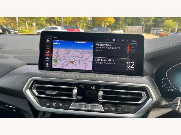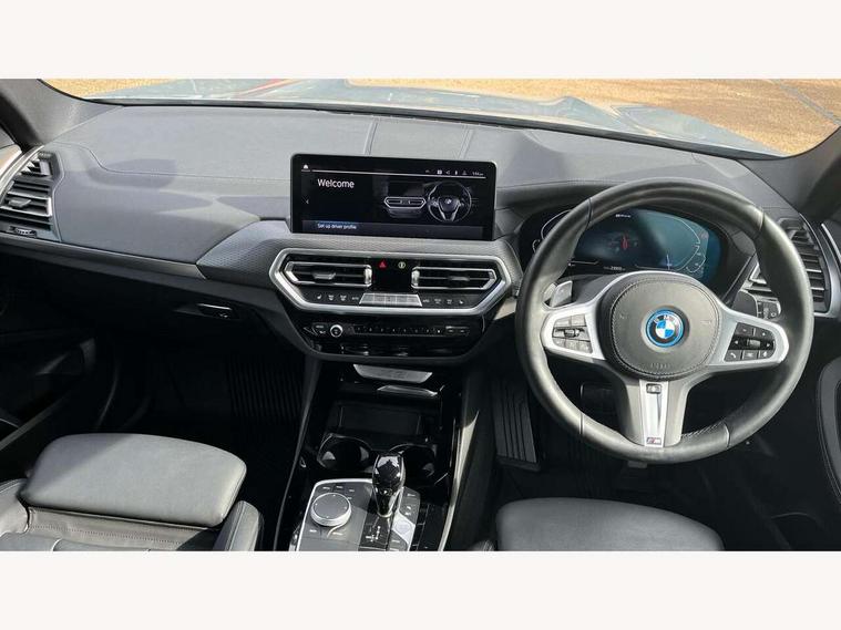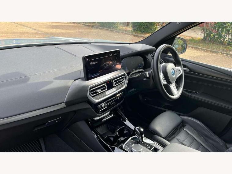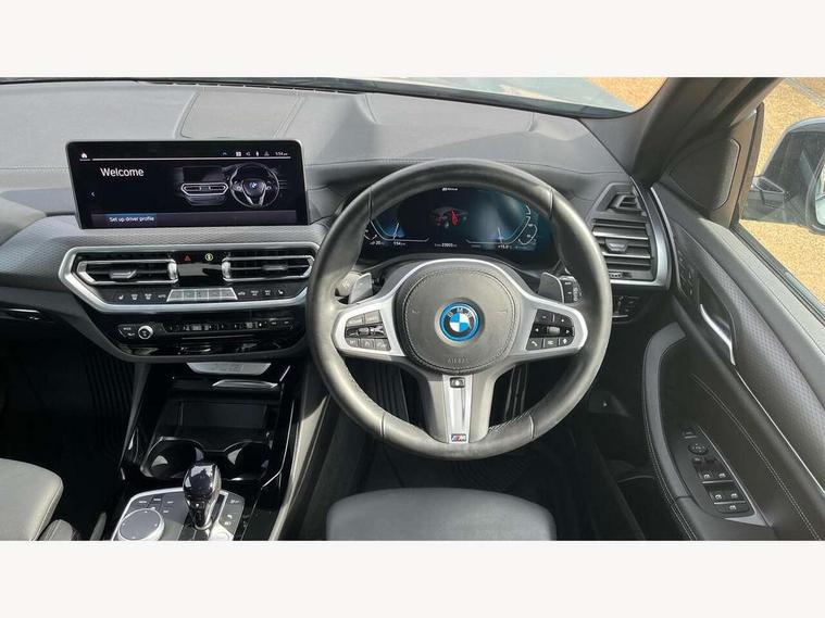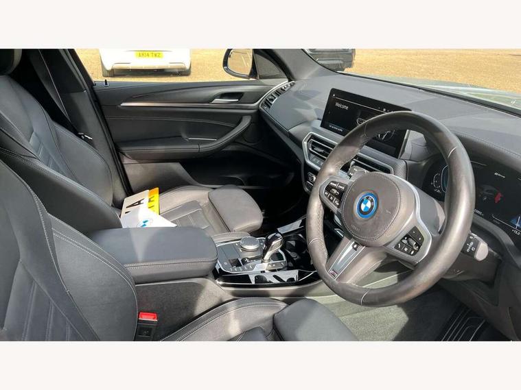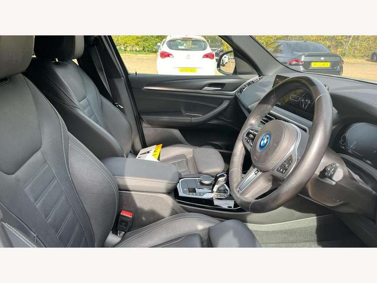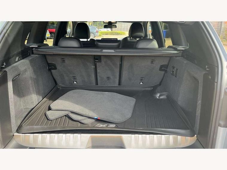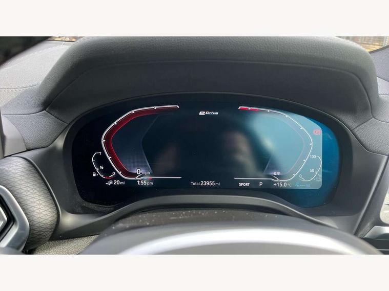 Active Guard, Attentiveness assist, Bluetooth hands free telephone connection with USB audio interface + audio streaming, BMW Live Cockpit Professional nav system including 12.3" instrument display + 12.3 high resolution control display, BMW Online services, BMW Teleservices, Brake pad wear indicator in front and rear, Check Control warning system for monitoring of lights and door/luggage compartment open warning, Condition based service - BMW service history, electronic service booklet, integrated owner's handbook, Connected drive services, Cruise control with brake function + speed limiter, Electric boot lid, Front/rear Parking distance control, iDrive Controller with 8 favourite buttons, Instrument cluster with speedometer with mph readout, tachometer, fuel gauge and oil temperature gauge, Lights on warning by audio warning signal when ignition is switched off, Oil sensor for level and grade, warning by check control system, On board computer - average speed+fuel consumption, service interval, clock/date, odometer/trip meter, outside temperature display and ice warning, Optimum shift indicator, Personal Profile - automatic lock when driving away selectable, Stop/start system, Variable sports power steering, Charging cable - Mode 2, Drive performance control with ECO PRO comfort + sport mode, eDrive exterior sound, Incorrect fuelling protection, Multi-link rear suspension, Performance Control, Sport automatic transmission with gearshift paddles, BMW professional radio/CD/MP3, DAB tuner, HiFi loudspeaker audio system, Acoustic glazing, Automatic windscreen wipers and automatic headlight, Black finish on B pillars, Body colour door handles, Body colour electric adjust heated aspherical door mirrors, Body colour roof mouldings, Body coloured bumpers, Direction indicator, side repeaters, integrated in exterior mirrors, Dynamic brake lights, Exhaust tailpipes - dual, round, split left and right with chrome finisher, Fingertip control / anti-trap function on electric window, Folding wing mirrors with auto dimming, Follow me home headlights, Front and rear bumper system with replaceable deformation elements, Front and rear electric windows, Gloss chrome tailpipes finishers, Green tinted heat insulating glass, Heated windscreen washer jets, High beam assistant, High gloss black shadow line roof rails, High gloss shadowline exterior trim in decorative moulding side frame/recess cover/guide rail/B, C pillars/mirror frame and triangle with mirror base, High level 3rd brake light incorporating LED Technology, Interior rear view electrochromatic mirror with automatic anti dazzle function, LED tail lights, Lightweight engineering, M aerodynamic bodystyling, Model designation, Rear side wing doors, Rear wing door, Rear wiper, Shark fin antenna, Side exterior M designation badges, Visible VIN plate, Welcome lighting, Windscreen wipers with adjustable interval, 12V power socket in front centre console, 3 rear headrests, 3 zone automatic air conditioning, 4 lashing points to secure luggage, 40:20:40 split folding rear seat with loading system, 5 seats, Ambient lighting, Anthracite headlining, Automatic interior light when door is opened/ignition switched off or via remote key, Foldable storage floor with compartment, Four grab handles integrated in roof lining, Front and rear bottle holders integrated into door trim storage compartments, Front and rear side armrests integrated into door trim, Front centre armrest with storage compartment, Front footwell lights, Front head restraints, Front sports seats, Front/rear courtesy lights with soft on/off dimming, Front/rear reading lights, Heated front seats, Isofix rear child seat preparation, Leather gear knob, Luggage area underfloor compartment, Luggage compartment lighting, M sport leather steering wheel, Multifunction steering wheel, Parcel shelf removeable and storable under boot floor, Reach and rake adjustable steering column, Rear centre armrest with 2 cupholders, Removable / retractable luggage cover, Seat backrest width adjustment, Slope adjustable rear seats, Storage compartment in rear centre console and front/rear door trims, Sun visors with vanity mirrors and ticket pocket, Toolkit located in luggage compartment, Two front cupholders with removable oddments tray/lid, Vernasca leather upholstery, Connected pro pack - X3, Driving assistant pack - X3, ADB - Automatic Differential Brake, Anti-lock braking system (ABS) with brake assist, Automatic Stability Control (ASC), Battery safety cut-off, BMW emergency call, Brake drying, Brake energy regeneration, Braking pre-tensioning, Child locks on rear doors, Cornering brake control (CBC), Crash Sensor - activation of central locking release, hazard warning light and interior lighting, Deactivation of fuel pump in the event of a crash, Driver and front passenger front and side airbags with passenger deactivation and ITS front and rear head airbags, DSC+, Dynamic brake control, Dynamic Traction Control - DTC, Electromechanical parking brake, Hill descent control, Hill start assist, Seatbelt security check for front seats, Side impact protection, Three point seatbelts to all seats with front and outer rear pyrotechnic belt tensioners and seat belt force limiters, Two tone horn, Tyre pressure sensor, Ventilated front and rear disc brakes, Warning triangle and first aid kit, Central locking switch for all doors, fuel filler cap and luggage compartment, Electronic engine immobiliser, Locking wheel nuts, Remote control including two integrated key - one button for open/close all lockable content, windows and separate button for open luggage compartment, Remote control Thatcham category 1 alarm, Start/stop button with Comfort Go keyless engine start and auto Start/stop deactivation button, Low rolling resistance tyres,