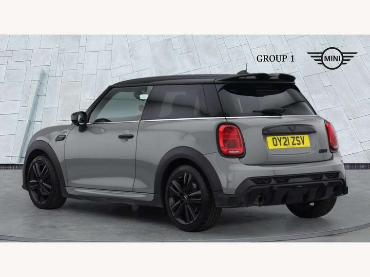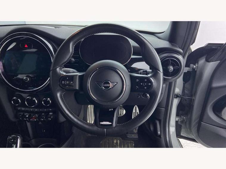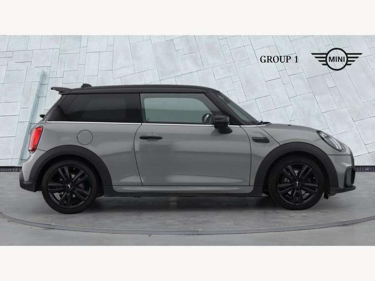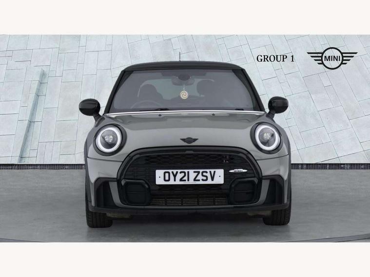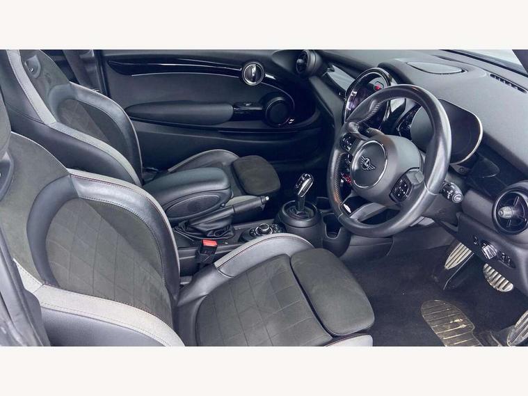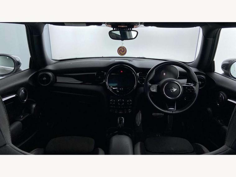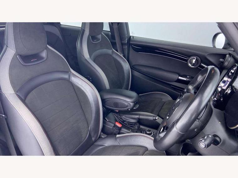 Automatic start/stop function with brake energy recuperation, Compatible mobile phone bluetooth with audio streaming, Cruise control with brake assist, Electro-mechanical speed dependant steering assistance, Flexible car sharing preparation, Instrument cluster, MINI Driving Modes - centre toggle switch to control driving setting (sport, mid and green), Mini E-call, MINI TeleServices, On board computer, Rear park distance control, Service interval indicator, Adaptive suspension, Double Vanos system, Fully variable valve control, High precision injection, Performance Control, Steptronic transmission with double clutch, 8.8" touchscreen with LED ring, FM tuner and DAB digital radio, Automatic headlight activation switch, Body colour fuel filler cap, Chrome border high gloss black slats radiator grille, Dynamic brake lights, Electric front windows, Exhaust tailpipe on left with chrome finisher, Heated rear window, Heated windscreen washer jets, JCW Aerodynamic kit - Front and rear bumpers with sporty JCW styling and part-painted side sills with MINI John Cooper Works door sill finishers, John Cooper Works rear spoiler, LED headlight with closed ring and daytime driving lights, Metal door sill strips with MINI imprint, Model logo Cooper on right of tailgate, Rain sensor window wipers, Rear fog lights, Rear LED lights with union jack design, Rear window wiper, Side scuttle panel with integrated indicator, Sun/heat protection glass, White indicator lenses, 12V Accessory socket in centre console, 4 lashing eyes in luggage compartment, 60/40 split folding rear seat, Anthracite headliner including grab handles and clothes hooks, Carbon black colour line - Knee roll and door armrest, Chrome interior highlights, Cupholders, Front and rear isofix with front passenger airbag deactivation, Glove compartment, Height and length steering column adjustment, Interior lighting with 12 different colours across the dashboard, underneath door bezel with illuminated laser-engraved design on central display, JCW Sport seats with integrated headrests, adjustable thigh support and John Cooper Works logo, Leatherette gearshift lever and handbrake gaiters, LED reading lights, vanity mirror lights, front foot well light and spotlight on front seats, Manual air conditioning, Mechanical seat adjustment - forward/back & backrest for front seats and driver seat height adjust, Multifunction steering wheel, Passenger seat height adjuster, Storage compartments in doors, Sunvisors with vanity mirrors, Velour floor mats, Walknappa leather steering wheel with grey seam and John Cooper Works badge on Piano Black lower steering wheel spoke, Piano black exterior pack - Mini Hatchback Cooper, 3 point seatbelts on all four seats, 6 Airbags - front, side, head and seat belt tensioners, Anti-lock braking system (ABS), DSC - Dynamic Stability Control, Front and rear disc brakes, Single tone fanfare horn, Tyre pressure monitoring system, Alarm system with tilt sensor, monitoring doors, bonnet interior and tailgate, Electronic vehicle immobiliser, Start/stop toggle with keyless go, Piano black interior trim, Tool kit,