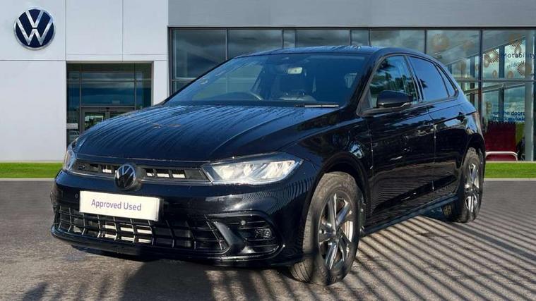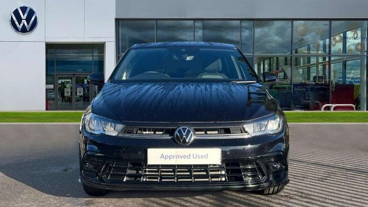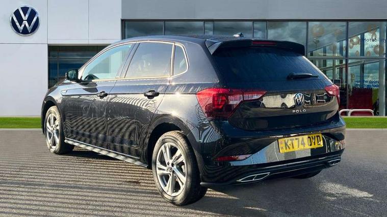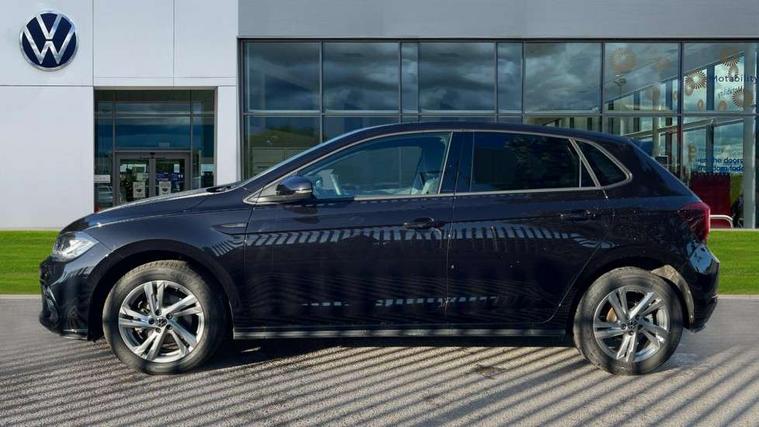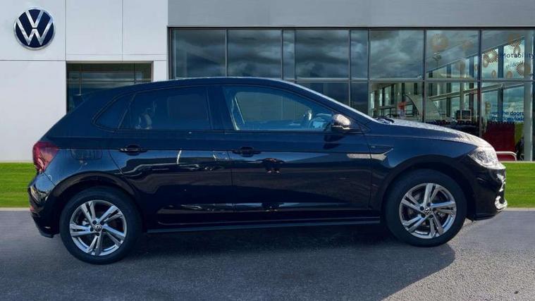 Adaptive cruise control with follow-to-stop and speed limiter, Advanced driver attention and drowsiness monitor, Bluetooth mobile phone interface, Digital Cockpit Pro with 10.25" Display, Dynamic road sign display, Emergency call service, Multifunction camera, Power assisted speed sensitive steering, Preparation for We connect and We connect plus, Speedo and rev counter, electronic odometer, trip, service interval display and fuel gauge, Standard rear axle, Travel Assist - Lane keeping system and traffic jam assist, Travel assist including emergency assist, Trip computer, Warning signal and warning light for front and rear seatbelts not fastened, Washer fluid level indicator, Wireless app connect, Front wheel drive, Rear shock absorpion, Start-stop system with battery regeneration (recuperation - energy recovery during braking), DAB Digital radio, Diversity antenna for FM reception, Front and rear 6 speakers, Body colour bumpers, Body colour door handles, Electric front windows, Front scuff plates with R-Line logo, Heat insulating glass windscreen, Power folding adjustable/heated exterior mirrors and front passenger exterior mirror lowering function, Rear electric windows, Rear fog light, Rear side wing doors, Rear windscreen washer and wiper with interval delay, Third brake light, 12V power socket in centre console, 2 USB-C ports in the front, 2 USB-C charging sockets on the center console in the rear, 3 rear head restraints, 60/40 split folding rear seat and rear seat bench not split, Air care climatronic air conditoning system with active combination filter and 2-zone temperature control, Black roof lining, Carpet mats, front and rear, Chrome plated radiator grille inserts, air vent surrounds and light switch surrounds, Door and side trim panel, Driver and front passenger seat height adjustment, Driver/passenger sunvisors with illuminated vanity mirrors, Front centre armrest, Front footwell illumination, Front seat backrest storage pockets, Front sports comfort seats, Handbrake lever handle in leather, Headliner in recycled material, Isofix child seat preparation easy-fit (for two outer rear seats, and front passenger seat) compatible with I-size, Karoso artvelours cloth upholstery, Leather trimmed gear knob, LED interior light with switch off delay and dimmer, 2 reading lights front and rear, Luggage compartment cover, Luggage compartment floor, Luggage compartment lighting, Lumbar adjustment for front seats, Single front passenger seat, Stainless steel pedals, Standard pedal cluster, Three spoke leather wrapped multifunction steering wheel with shifting paddles, Light and sight pack - Polo R-Line/Black Edition, 3 point height adj front seatbelts + pretensioners, 3x3 point rear seatbelts, ABS, Driver and front passenger airbag with front passenger airbag deactivation, Drivers and front passengers safety optimised head restraints, ESC (Electronic stability control) + EDL (Electronic Differntial lock) and ASR (Traction control), Extended and predictive pedestrian/ cyclist protection, Front curtain and side airbags with center airbag, Front/rear disc brakes, Hill hold control, Manual child lock in rear doors, Single tone horn, Tyre pressure loss indicator, Alarm with interior protection, Anti-theft alarm system with interior monitoring, backup horn, and towing protection, Anti-theft wheel bolts, Electronic engine immobiliser, Chrome applications on rotary light, mirror adjustment, window regulator switches, outlet with frame in black, Dark grey anodised matt decorative inserts in dash and front door panels, 16" Coventry alloy wheels, Low rolling resistance tyres,
