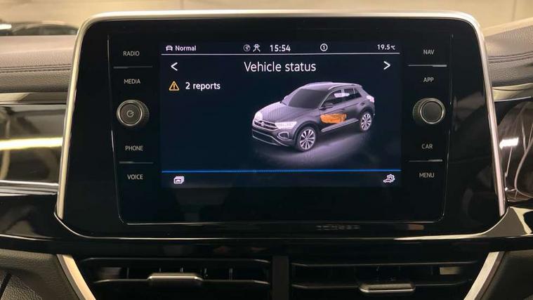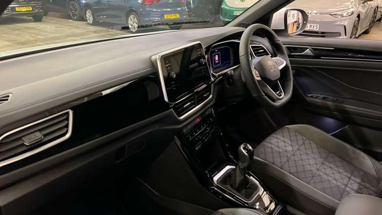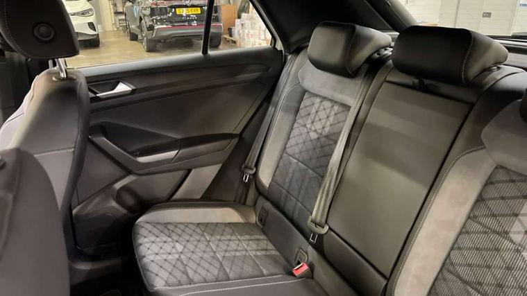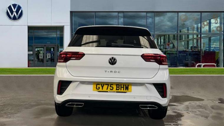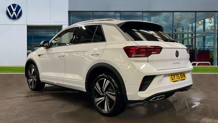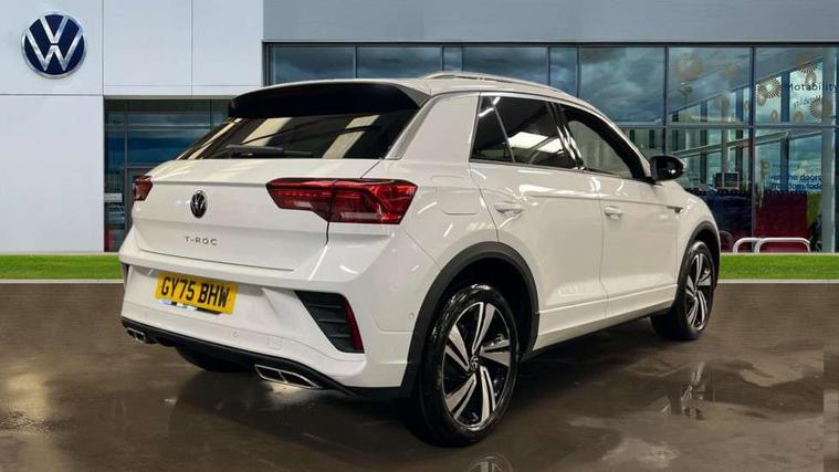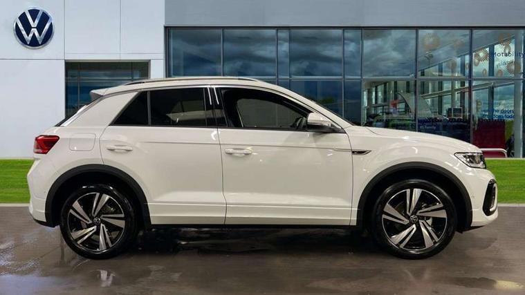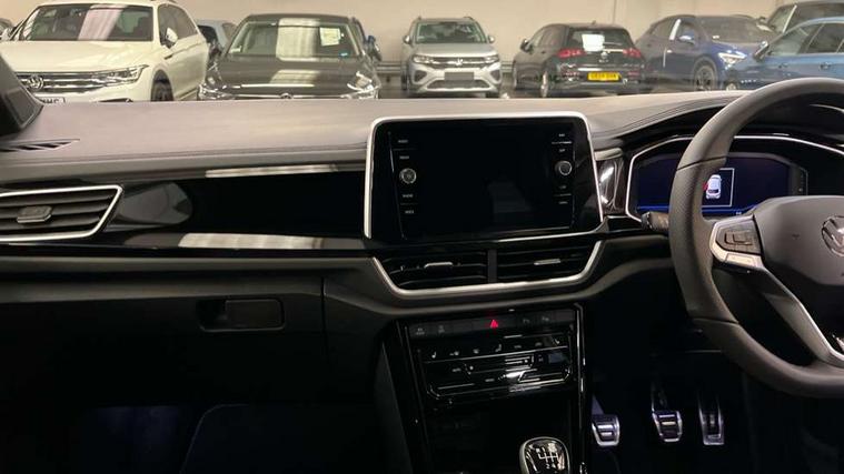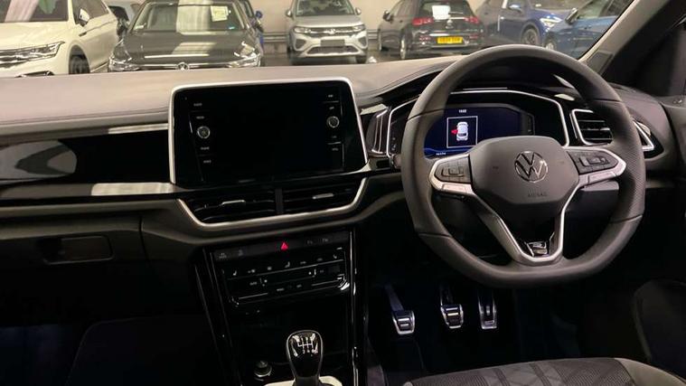 10.25" Digital cockpit pro, Advanced driver attention and drowsiness monitor, Emergency call service, Lane keeping system Lane Assist, Mobile phone interface, Modified key software - reduce switch off time for key status change to Long no motion, Online services, Park assist including front and rear parking sensors, Service interval indicator, Tailgate/trunk lid release from outside, Think blue trainer driver tips and journey analysis, Warning sound and light for front seatbelts unfastened, Wireless app connect, Battery regeneration during braking, Start/stop function with battery regeneration, DAB Digital radio, Diversity antenna for FM reception, Front and rear 6 speakers, Music playback - MP3, WMA and AAC files, Premium USB cable in choice of either Apple or Android smartphone compatibility, SD card slot, Simultaneous pairing of 2 compatible mobile devices, Title and cover art display, We Connect and We Connect Plus functionality, Auto dimming interior rear view mirror, Automatic hazard lights activation under emergency braking, Automatic headlight control with LED separate daytime running lights with coming/leaving home function, Body coloured exterior mirror housings and door handles, Electrically adjustable and heated door mirrors, Extended roof spoiler, Exterior mirrors aspherical on driver side, convex on front passenger side, External USB type C socket and charging sockets, Front windscreen wiper with intermittent wipe and 4 position delay, Heated rear window, LED 3rd brake light, LED rear combination lamps, LED rear number plate lights, Power windows with comfort operation and circuit breaker, Privacy glass for rear side windows and rear window, R-Line design body coloured bumpers, Rain sensor, Rear exhaust tailpipe, Rear fog light on one side and reversing lights on both sides, Rear side wing doors, Rear wash/wipe with intermittent wipe setting, Remote electrically foldable door mirrors, puddle lights and reverse activated passenger's door mirror, 12V power socket in centre console, 3 rear head restraints, 3 seat bench in 2nd row, 4 load lashing points in luggage compartment, Air care climatronic air conditoning system with active combination filter and 2-zone temperature control, Black roof lining, Chrome plated decorative trims, Chrome plated radiator grille inserts, air vent surrounds and light switch surrounds, Door and side trim panel with leatherette insert, Front + rear carpet mats, Front centre armrest, Front cupholders x 2, Front footwell illumination, Front reading light, Front scuff plates with R Line logo, Front seat back storage pockets, Glove compartment door with light, Instrument lighting, white adjustable panel illumination, Interior ambient lighting and surround lighting, Interior light delay, Isofix child seat preparation, Leather gearshift handle, Load-through provision with cup holder when folded down ('Unsplit rear seat bench, split folding backrest, with centre armrest), Luggage compartment lighting, Single front passenger seat, Stainless steel pedals, Storage compartment in left and right luggage area, Storage compartment in rear doors, Storage compartments in driver and front passenger doors, Sunvisors with illuminated vanity mirrors, Variable boot floor, height adjustable and removable, Driver assistance pack without proactive passenger protection - T-Roc, 3 point height adj front seatbelts + pretensioners, 3 point seatbelts in outer rear with ECE label, ABS, Child locks on rear doors, City emergency braking and pedestrian monitoring, Driver and front passenger airbag with front passenger airbag deactivation, Driver and front passenger safety-optimised head restraints, Drivers seatbelt reminder, Electronic parking brake, Electronic Stability Control (ESC) inc EDL (Electronic Differential Lock) and ASR (Traction Control), Front and rear passengers curtain airbag system including front side airbags, Hill start assist, Predictive pedestrian protection, Rear disc brakes, Two tone horn, Tyre pressure loss indicator, Volkswagen roadside assistance, Piano black decorative inserts in dashboard and front door trim panels, Trims for alloy wheels,