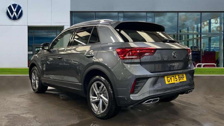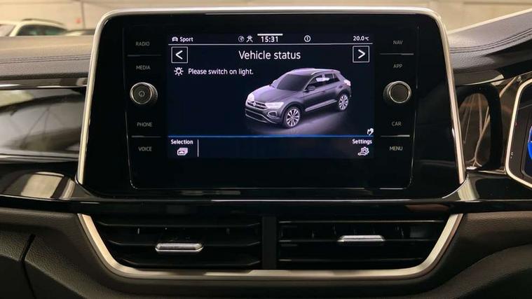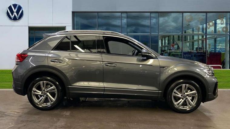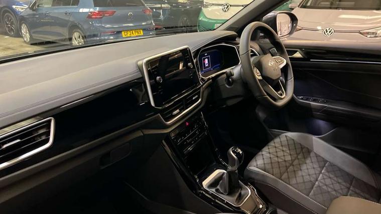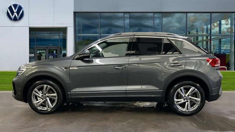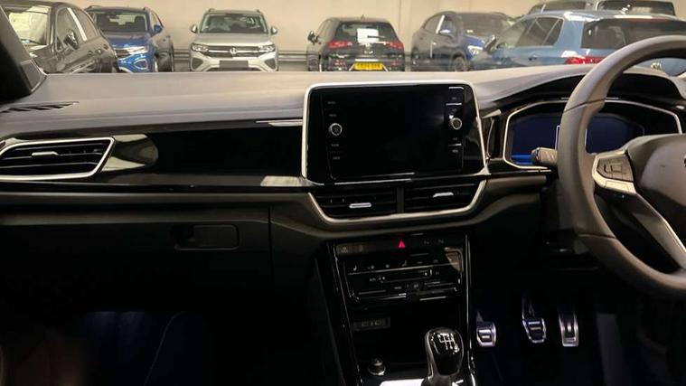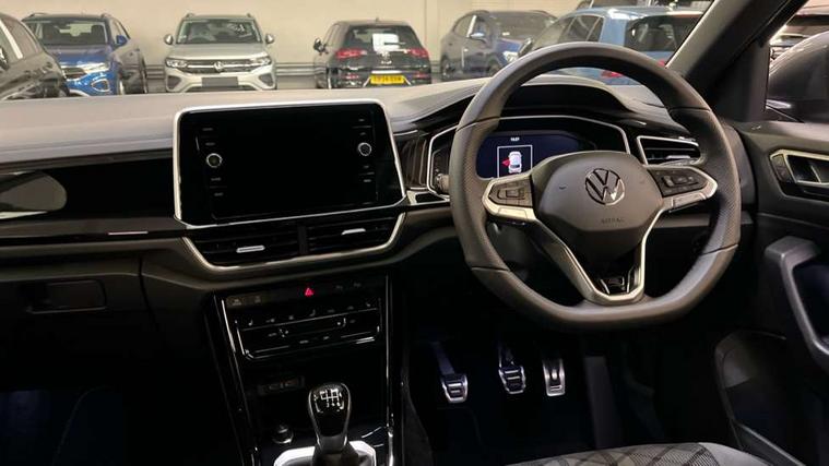 10.25" Digital cockpit pro, Advanced driver attention and drowsiness monitor, Emergency call service, Lane keeping system Lane Assist, Mobile phone interface, Modified key software - reduce switch off time for key status change to Long no motion, Online services, Park assist including front and rear parking sensors, Service interval indicator, Tailgate/trunk lid release from outside, Think blue trainer driver tips and journey analysis, Warning sound and light for front seatbelts unfastened, Wireless app connect, Battery regeneration during braking, Start/stop function with battery regeneration, DAB Digital radio, Diversity antenna for FM reception, Front and rear 6 speakers, Music playback - MP3, WMA and AAC files, Premium USB cable in choice of either Apple or Android smartphone compatibility, SD card slot, Simultaneous pairing of 2 compatible mobile devices, Title and cover art display, We Connect and We Connect Plus functionality, Auto dimming interior rear view mirror, Automatic hazard lights activation under emergency braking, Automatic headlight control with LED separate daytime running lights with coming/leaving home function, Body coloured exterior mirror housings and door handles, Electrically adjustable and heated door mirrors, Extended roof spoiler, Exterior mirrors aspherical on driver side, convex on front passenger side, External USB type C socket and charging sockets, Front windscreen wiper with intermittent wipe and 4 position delay, Heated rear window, LED 3rd brake light, LED rear combination lamps, LED rear number plate lights, Power windows with comfort operation and circuit breaker, Privacy glass for rear side windows and rear window, R-Line design body coloured bumpers, Rain sensor, Rear exhaust tailpipe, Rear fog light on one side and reversing lights on both sides, Rear side wing doors, Rear wash/wipe with intermittent wipe setting, Remote electrically foldable door mirrors, puddle lights and reverse activated passenger's door mirror, 12V power socket in centre console, 3 rear head restraints, 3 seat bench in 2nd row, 4 load lashing points in luggage compartment, Air care climatronic air conditoning system with active combination filter and 2-zone temperature control, Black roof lining, Chrome plated decorative trims, Chrome plated radiator grille inserts, air vent surrounds and light switch surrounds, Door and side trim panel with leatherette insert, Front + rear carpet mats, Front centre armrest, Front cupholders x 2, Front footwell illumination, Front reading light, Front scuff plates with R Line logo, Front seat back storage pockets, Glove compartment door with light, Instrument lighting, white adjustable panel illumination, Interior ambient lighting and surround lighting, Interior light delay, Isofix child seat preparation, Leather gearshift handle, Load-through provision with cup holder when folded down ('Unsplit rear seat bench, split folding backrest, with centre armrest), Luggage compartment lighting, Single front passenger seat, Stainless steel pedals, Storage compartment in left and right luggage area, Storage compartment in rear doors, Storage compartments in driver and front passenger doors, Sunvisors with illuminated vanity mirrors, Variable boot floor, height adjustable and removable, Driver assistance pack without proactive passenger protection - T-Roc, 3 point height adj front seatbelts + pretensioners, 3 point seatbelts in outer rear with ECE label, ABS, Child locks on rear doors, City emergency braking and pedestrian monitoring, Driver and front passenger airbag with front passenger airbag deactivation, Driver and front passenger safety-optimised head restraints, Drivers seatbelt reminder, Electronic parking brake, Electronic Stability Control (ESC) inc EDL (Electronic Differential Lock) and ASR (Traction Control), Front and rear passengers curtain airbag system including front side airbags, Hill start assist, Predictive pedestrian protection, Rear disc brakes, Two tone horn, Tyre pressure loss indicator, Volkswagen roadside assistance, Piano black decorative inserts in dashboard and front door trim panels, Trims for alloy wheels,