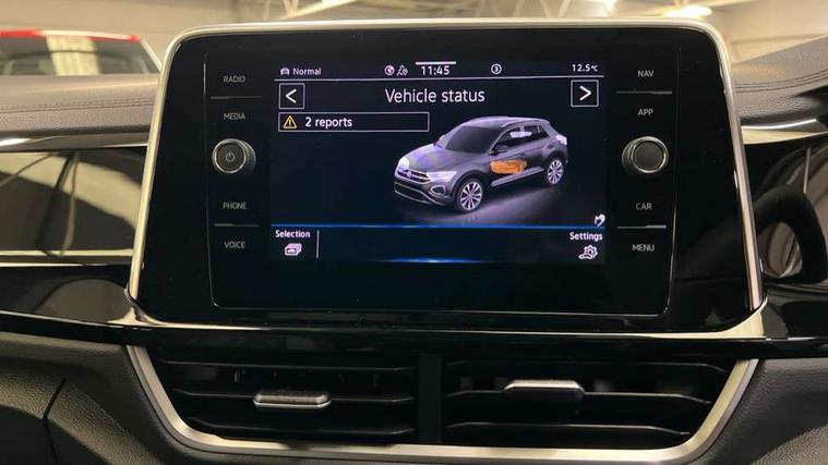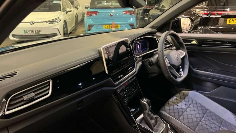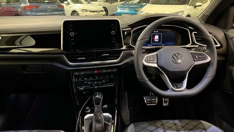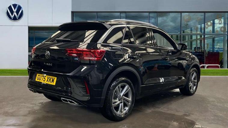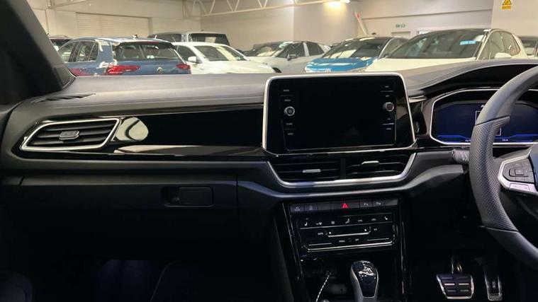 10.25" Digital cockpit pro, Advanced driver attention and drowsiness monitor, Emergency call service, Lane keeping system Lane Assist, Mobile phone interface, Modified key software - reduce switch off time for key status change to Long no motion, Online services, Park assist including front and rear parking sensors, Service interval indicator, Tailgate/trunk lid release from outside, Think blue trainer driver tips and journey analysis, Warning sound and light for front seatbelts unfastened, Wireless app connect, Battery regeneration during braking, Start/stop function with battery regeneration, DAB Digital radio, Diversity antenna for FM reception, Front and rear 6 speakers, Music playback - MP3, WMA and AAC files, Premium USB cable in choice of either Apple or Android smartphone compatibility, SD card slot, Simultaneous pairing of 2 compatible mobile devices, Title and cover art display, We Connect and We Connect Plus functionality, Auto dimming interior rear view mirror, Automatic hazard lights activation under emergency braking, Automatic headlight control with LED separate daytime running lights with coming/leaving home function, Body coloured exterior mirror housings and door handles, Electrically adjustable and heated door mirrors, Extended roof spoiler, Exterior mirrors aspherical on driver side, convex on front passenger side, External USB type C socket and charging sockets, Front windscreen wiper with intermittent wipe and 4 position delay, Heated rear window, LED 3rd brake light, LED rear combination lamps, LED rear number plate lights, Power windows with comfort operation and circuit breaker, Privacy glass for rear side windows and rear window, R-Line design body coloured bumpers, Rain sensor, Rear exhaust tailpipe, Rear fog light on one side and reversing lights on both sides, Rear side wing doors, Rear wash/wipe with intermittent wipe setting, Remote electrically foldable door mirrors, puddle lights and reverse activated passenger's door mirror, 12V power socket in centre console, 3 rear head restraints, 3 seat bench in 2nd row, 4 load lashing points in luggage compartment, Air care climatronic air conditoning system with active combination filter and 2-zone temperature control, Black roof lining, Chrome plated decorative trims, Chrome plated radiator grille inserts, air vent surrounds and light switch surrounds, Door and side trim panel with leatherette insert, Front + rear carpet mats, Front centre armrest, Front cupholders x 2, Front footwell illumination, Front reading light, Front scuff plates with R Line logo, Front seat back storage pockets, Glove compartment door with light, Instrument lighting, white adjustable panel illumination, Interior ambient lighting and surround lighting, Interior light delay, Isofix child seat preparation, Leather gearshift handle, Load-through provision with cup holder when folded down ('Unsplit rear seat bench, split folding backrest, with centre armrest), Luggage compartment lighting, Single front passenger seat, Stainless steel pedals, Storage compartment in left and right luggage area, Storage compartment in rear doors, Storage compartments in driver and front passenger doors, Sunvisors with illuminated vanity mirrors, Variable boot floor, height adjustable and removable, Driver assistance pack without proactive passenger protection - T-Roc, 3 point height adj front seatbelts + pretensioners, 3 point seatbelts in outer rear with ECE label, ABS, Child locks on rear doors, City emergency braking and pedestrian monitoring, Driver and front passenger airbag with front passenger airbag deactivation, Driver and front passenger safety-optimised head restraints, Drivers seatbelt reminder, Electronic parking brake, Electronic Stability Control (ESC) inc EDL (Electronic Differential Lock) and ASR (Traction Control), Front and rear passengers curtain airbag system including front side airbags, Hill start assist, Predictive pedestrian protection, Rear disc brakes, Two tone horn, Tyre pressure loss indicator, Volkswagen roadside assistance, Piano black decorative inserts in dashboard and front door trim panels, Trims for alloy wheels,