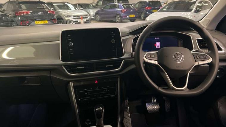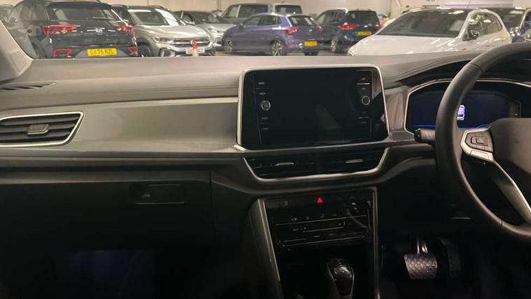 10.25" Digital cockpit pro, Advanced driver attention and drowsiness monitor, Emergency call service, Lane keeping system Lane Assist, Mobile phone interface, Modified key software - reduce switch off time for key status change to Long no motion, Online services, Park assist including front and rear parking sensors, Power assisted speed sensitive steering, Service interval indicator, Tailgate/trunk lid release from outside, Think blue trainer driver tips and journey analysis, Warning sound and light for front seatbelts unfastened, Wireless app connect, Battery regeneration during braking, Start/stop function with battery regeneration, DAB Digital radio, Diversity antenna for FM reception, Front and rear 6 speakers, Music playback - MP3, WMA and AAC files, Premium USB cable in choice of either Apple or Android smartphone compatibility, SD card slot, Simultaneous pairing of 2 compatible mobile devices, Title and cover art display, We Connect and We Connect Plus functionality, Auto dimming interior rear view mirror, Automatic hazard lights activation under emergency braking, Automatic headlight control with LED separate daytime running lights with coming/leaving home function, Body colour sports bumpers with silver metallic underbody fascia, Body coloured exterior mirror housings and door handles, Dynamic headlight range control with self adjusting whilst driving, Electrically adjustable and heated door mirrors, Extended roof spoiler, Exterior mirrors aspherical on driver side, convex on front passenger side, External USB type C socket and charging sockets, Front windscreen wiper with intermittent wipe and 4 position delay, Heated rear window, LED 3rd brake light, LED rear combination lamps, LED rear number plate lights, Light mode for poor weather, rain, fog or snow, Power windows with comfort operation and circuit breaker, Privacy glass for rear side windows and rear window, Rain sensor, Rear exhaust tailpipe, Rear fog light on one side and reversing lights on both sides, Rear side wing doors, Rear wash/wipe with intermittent wipe setting, Remote electrically foldable door mirrors, puddle lights and reverse activated passenger's door mirror, 12V power socket in centre console, 3 rear head restraints, 3 seat bench in 2nd row, 4 load lashing points in luggage compartment, Air care climatronic air conditoning system with active combination filter and 2-zone temperature control, Chrome plated radiator grille inserts, air vent surrounds and light switch surrounds, Door and side trim panel with leatherette insert, Drawer under drivers seat, Front + rear carpet mats, Front centre armrest, Front comfort sports seats, Front cupholders x 2, Front footwell illumination, Front seat back storage pockets, Glove compartment door with light, Instrument lighting, white adjustable panel illumination, Interior ambient lighting and surround lighting, Interior light delay, Isofix child seat preparation, Leather gearshift handle, LED interior light with switch off delay/dimmer and 2 front/rear LED reading lights, Load-through provision with cup holder when folded down ('Unsplit rear seat bench, split folding backrest, with centre armrest), Luggage compartment lighting, Non-folding front passenger seat backrest, Single front passenger seat, Storage compartment in left and right luggage area, Storage compartment in rear doors, Storage compartments in driver and front passenger doors, Sunvisors with illuminated vanity mirrors, Variable boot floor, height adjustable and removable, Driver assistance pack without proactive passenger protection - T-Roc, 3 point height adj front seatbelts + pretensioners, 3 point seatbelts in outer rear with ECE label, ABS, Child locks on rear doors, City emergency braking and pedestrian monitoring, Driver and front passenger airbag with front passenger airbag deactivation, Driver and front passenger safety-optimised head restraints, Drivers seatbelt reminder, Electronic parking brake, Electronic Stability Control (ESC) inc EDL (Electronic Differential Lock) and ASR (Traction Control), Front and rear passengers curtain airbag system including front side airbags, Predictive pedestrian protection, Rear disc brakes, Two tone horn, Tyre pressure loss indicator, Volkswagen roadside assistance, Deep iron grey decorative inserts in dashboard, centre console and front door trim panels, Trims for alloy wheels,