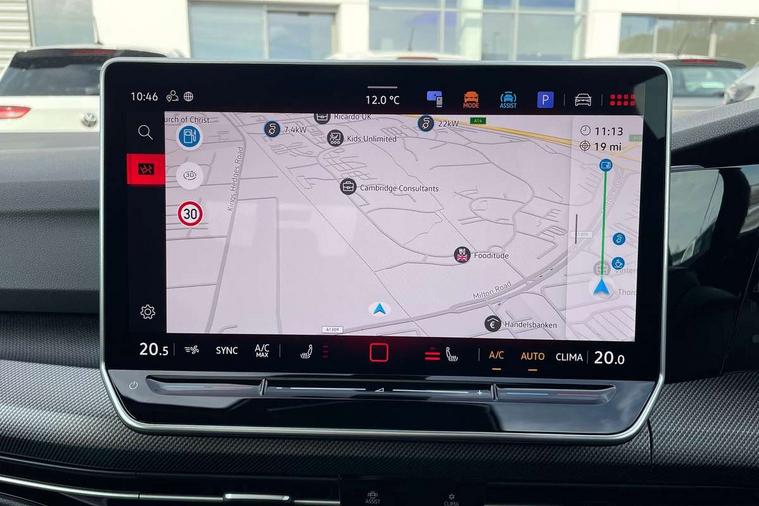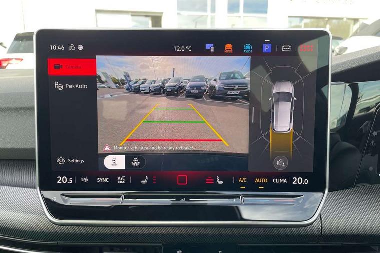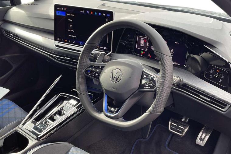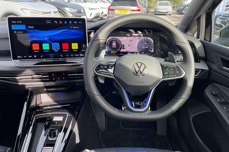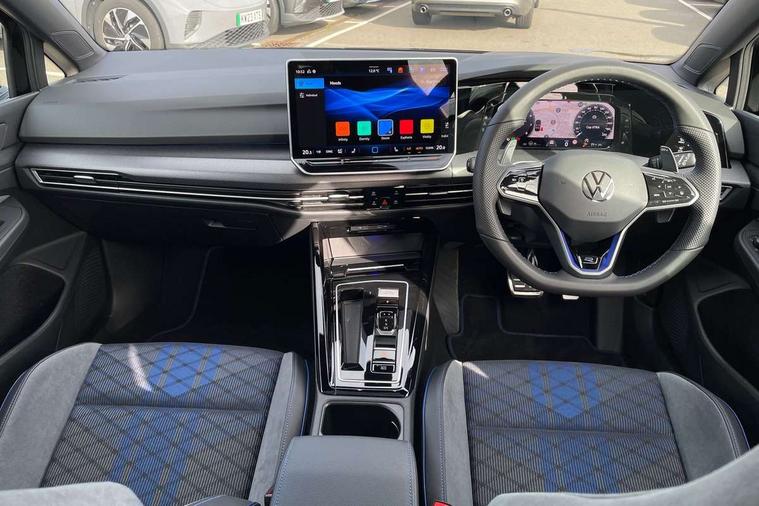 Activated carbon canister, Adaptive cruise control (ACC), Advanced driver attention and drowsiness monitor, Dynamic road sign display, E-Sim card for online connectivity, eCall emergency call system, Electronic maximum speed limit increased to 270 km/h, includes driving Modes 'drift' and 'special', larger roof spolier and GPS laptimer + G-Meter, Multi-color Digital cockpit pro, selection of different info profile possible, Multifunction front facing camera for distance control, Navigation system, Oncoming vehicle braking when turning including swerve support, Side assist blind spot lane change system, rear traffic alert and exit warning system, Speed limiter, Speedo, rev counter, electronic odometer, trip, service interval display, exterior temperature and fuel gauge, Traffic jam assist, Voice enhancer and voice control, Warning signal and warning light for front and rear seatbelts not fastened, We connect plus preparation, We connect preparation, Wireless app connect, All wheel drive - 4Motion, Petrol Particulate Filter, Start-stop system with battery regeneration (recuperation - energy recovery during braking), XDS electronic differential lock for improved traction and handling, 2 USB C ports in front, 2 USB charging sockets on the centre console in the rear charging capacity upto 45W, Digital radio reception (DAB), Diversity antenna for FM reception, Gaming platform via car app, Infotainment system with 12.9" display, Mobile phone interface with inductive charging feature, 3rd brake light, Auto dimming rear view mirror, Automatic headlamp activation with Coming home and Leaving home feature, Black badge on B-pillar, Black mirror caps, Black strips on radiator grille and headlights, Body colour door handles, Darkened headlights, Darkened R Logos and VW logos in front, rear and on fender, Exterior mirrors convex on the left and aspherical on the right, Front and rear electric windows, Front fog lamps and cornering light, Heat insulating windshield made of laminated glass, LED matrix headlights with ambient light V2, advanced high beam, dynamic range contol with cornering, LED rear lamp with indicator, poor weather, LED separate daytime running light, R name plate, Rain sensor, Rear fog light on one side and reversing lights on both sides, Rear side wing doors, Rear tinted glass 65% light absorbing from B pillar backwards, Rear windscreen washer and wiper with interval delay, Remote electrically foldable door mirrors, puddle lights and reverse activated passenger's door mirror, Welcome light with surround lighting, 12V socket in front centre console, 12V socket in luggage compartment, 3 rear head restraints, 3 seat bench in 2nd row, 30 colour ambient lighting, illuminated center console storage compartment in front, Air care climatronic 3 Zone automatic climate control with rear air conditioning control panel, Aluminium gearshift handle, Brushed stainless steel pedals, Chrome plated radiator grille inserts, air vent surrounds and light switch surrounds, Entry lights, Front + rear black carpet mats, Front centre armrest, Integrated front head restraints, ISOFIX anchors for child seats on outer rear bench seats and on front passanger seat compatible for i-Size, Luggage compartment lighting, Rear cupholder and loadthough, Single front passenger seat, Soul black instrument panel, Soul black roof lining, Split folding backrest with centre armrest and unsplit rear seat bench, Sun visors with illuminated vanity mirrors, Driver assistance pack - Golf Estate/Hatchback Auto, R styling pack - Golf, Technology park and comfort pro package - Golf Hatchback, 3 point height adj front seatbelts + pretensioners, 3 rear three point seatbelts, ABS, Autonomous emergency braking front assist with pedestrian and cyclist monitoring, Child locks on rear doors, Driver and front passenger airbag with front passenger airbag deactivation, Electronic parking brake with auto hold, ESC (Electronic Stability Control), Extended pedestrian protection measures, Front and rear black brake calipers with darkened R-logo, Hill start assist, Rear disc brakes, Two tone horn, Tyre pressure loss indicator, Volkswagen roadside assistance, Anti theft wheel bolts, Preparation for alcohol interlock, 19" Estoril alloy wheels in black with progressive steering, Sporty vehicle dynamics, Tool kit for tyre mobility set, Tyre mobility kit Includes 12V compressor and tyre sealant, Wheel hub cover with darkened R-logo,
