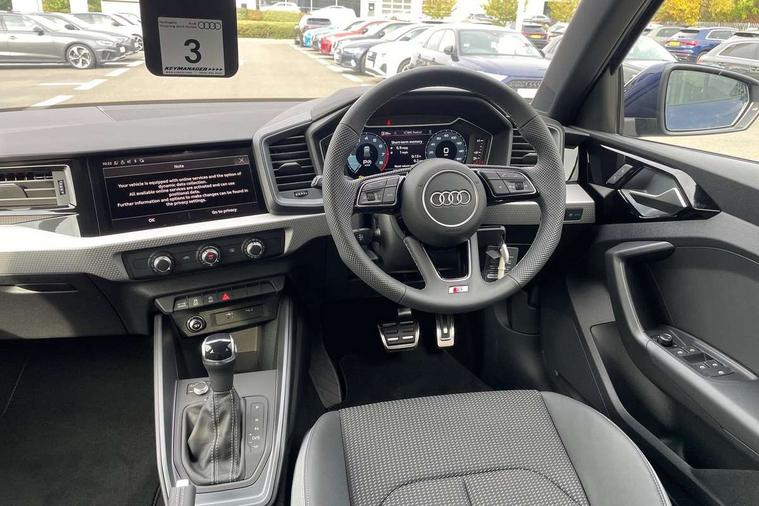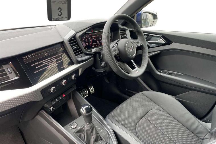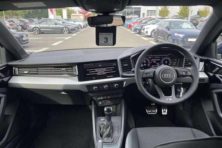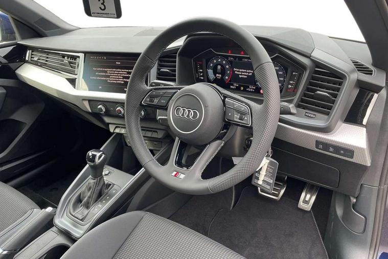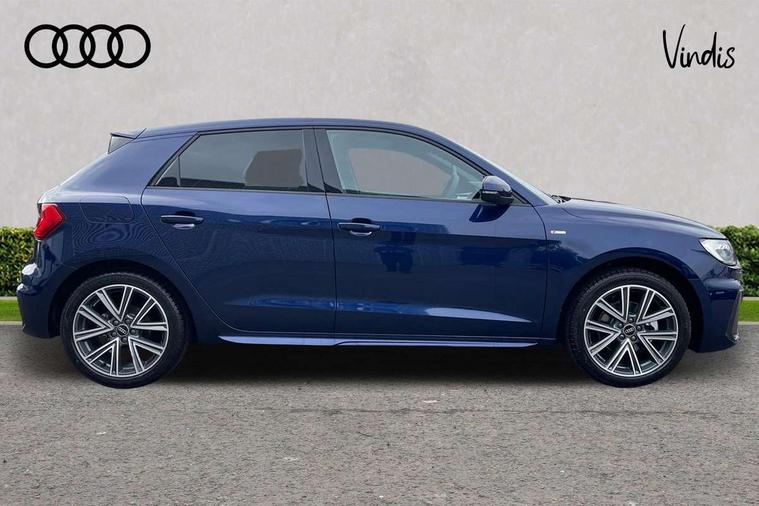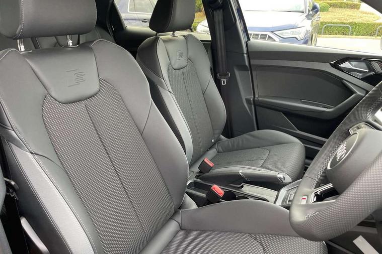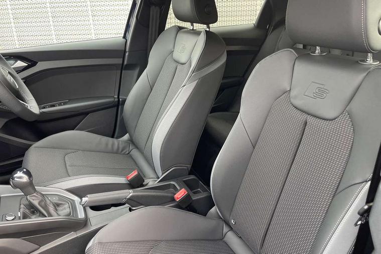 10.25" Digital instrument cluster display classis style instrument dials + speed, odometer, time, outside temperature, telephone menu + fuel level warning, Advanced driver attention and drowsiness monitor, Audi connect emergency call and service, Audi drive select, Audi remote connect and control, Audi smartphone interface, Bluetooth interface, Camera based traffic sign recognition, Cruise control, Driver's information system, Electromechanical power steering, Lane departure warning system, Rear parking sensor, Service interval indicator, Speed limiter, Start stop system with recuperation, Voice control system, Washer fluid level indicator, Sports suspension, 2 x USB type C connection points, 6 loudspeakers, DAB Digital radio, MMI radio plus with 10.1" colour MMI display screen and MMI touch, Auto dimming rear view mirror, Body coloured door mirrors, Door sill trims with aluminium inlays and S line logo in front, Electric front and rear windows, Electrically adjustable, heated, folding door mirrors with integrated LED side indicator, Front side air inlets in grained matt black and C frame in anthracite black, Headlight cleaning system, Heat insulating glass windscreen and side windows, Heated rear windscreen, High level LED brake light, LED daytime running lights, LED headlights with range control LED rear lights + dynamic rear indicators, Light and rain sensors, Privacy glass, Radiator grille and rear diffuser in matt anthracite black, Radiator protective grille frame in matt aluminium silver, Rear fog lights, Rear side wing doors, Rear wiper, S line badges on front wings, Side front spoiler lips in grained matt black, 12V socket in centre console with two cup holders, 3 rear seats with headrests, 3 seat bench in 2nd row, 3 spoke leather multi-function plus steering wheel features S badging and grips in perforated leather with contrast stitching, 40:60 Split folding rear seat or fully collapsed, Black cloth headlining, Front and rear velour black floor mats with contrast stitching in fine silver, Front head restraints, Front passenger seat, Height and reach adjustable steering wheel, Interior lighting includes roof module, front and rear reading lights and right luggage compartment lighting, ISOFIX child seat mounting for front passenger and outer rear seats including top tether attachment point of outer rear seats, Leather gear knob with aluminium trim, Leather handbrake grip, Manual air conditioning, Manual height adjustable for driver and front passenger seat, Manually adjustable lumbar support in front seats, Stainless steel pedals, Ambient lighting package - A1, Luggage compartment pack - A1, S line exterior styling pack - A1 Sportback, 3x3 point rear seatbelts, Audi pre-sense front with pedestrain and cyclist recognition, Brake assist function, Driver and front passenger airbag with front side and head airbags, Electronic Stability Control including ABS, EBD, ASR and EDL, Front passenger airbag deactivation switch, Hill hold assist, Manual rear child locks, Seatbelt height adjustment for front seats, Seatbelt monitoring, Tyre pressure loss indicator, Warning triangle and first aid kit, Anti theft alarm, Anti theft wheel bolts, Immobiliser, Remote control key with safelock, Aluminium trim for control switches, air vents and digital instrument cluster, Black dashboard, Silver grey inlays polygon structure in diamond paint finish, Structured grey accent surfaces insert of air vents, interior door handle recesses and centre console in quartz paint finish,
