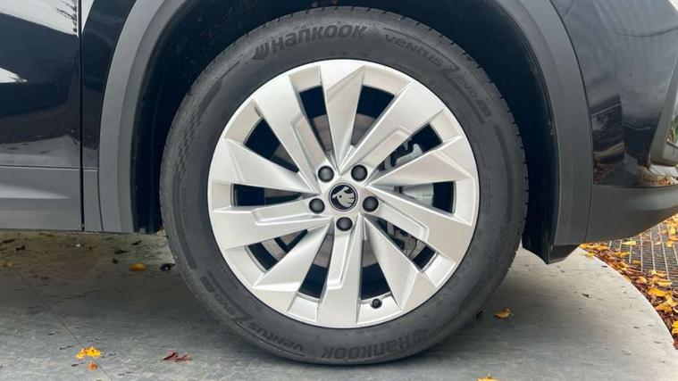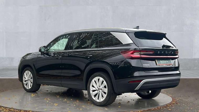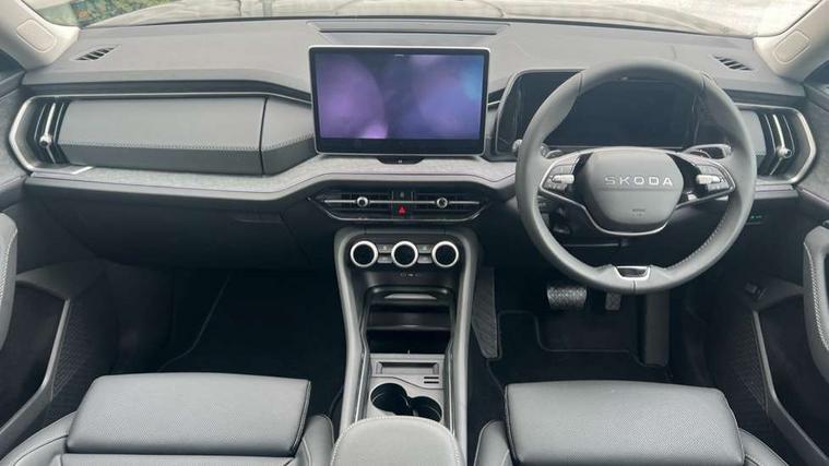 13" satellite navigation touchscreen display, Blind spot detection with door exit warning, Bluetooth system, ChatGPT functionality, Driver alert - Fatigue and drowsiness monitor, Dry display cleaner, Emergency call, Front and rear parking sensors, Front cross traffic assist, Lane assist, PAS, Rear traffic assist, Tailgate unlocking from outside, Traffic sign recognition, USB C Port x 2 in front centre console, Virtual Cockpit - 10.25" digital display, Voice control system, Wireless charging for two smartphones (15W) with cooling function, Wireless SmartLink for Apple CarPlay and Android Auto, Stop/start function, 2x USB-C in the rear, DAB Digital radio, Aero front windscreen wipers with intermittent function, Auto dimming rear view mirror, AWL (all weather lighting) and all weather light with cornering function, Black wheel arch surrounds, Body colour bumpers, Body colour door mirrors and handles, Cornering light and poor weather light, Electric folding /adjustable/separted heated/folding door mirrors, auto dimming with boarding sports and memory function, Electric front and rear windows, Exterior black decorative trims, Heat insulating glass in windshield, Heated rear window, Ice scraper in fuel tank cap, Invisible tailpipe, LED daytime running lights, LED third brake light in rear spoiler, Light assistant with automatic headlight control and coming home feature, Logo projection in door mirrors, Privacy glass, Rear roof spoiler, Rear side wing doors, Rear window wiper, Red decorative strip between rear LED lights, Safety reflectors on front and rear doors, Unique dark chrome design logo on alloy wheels, Window control switches with black trim, Windscreen wipers with rain sensor, Without engine designation, 1.5l bottle holder points in all door, 1x centre rear reading light, 2 seat bench in 3rd row, 3 configurable smart dials with 32mm coloured display, 3 seat bench in 2nd row, 4 foldable roof handles with rear coat hooks, Ambient interior lighting - Dashboard, front-door stowage compartments, front and rear door panels and footwell lighting, Automatic gear selector on steering column, Chrome interior door handles, Driver/front passenger reading lights, Fabric headlining, Fixed bench 40:60:40 split folding backrests, Front and rear floor mats, Front centre armrest with jumbo box storage compartment, cup holder and 12V socket, Height adjustable front headrests, Isofix child seat fittings in outer middle row rear seats and front passenger with top tether, Manually adjustable steering column, Pollen filter, Rear centre armrest with cupholders, Rear seat boot backrest release, Single front passenger seat, Skoda lettering on steering wheel, Storage pocket including mobile phone pockets on the backs of the front seats, Sunvisors with illuminated vanity mirrors, Three rear height adjustable headrests, Ticket holder on A Pillar, Tri zone climate control, Umbrella in door panel x1 made from sustainable materials, Upper and lower glovebox with card holder and coin compartment, USB C port by rear view mirror for charging only (15W), Exterior styling pack - Kodiaq, Auto door release and activation of warning lights in the event of an accident, Driver and front passenger airbag with knee airbag and front passenger airbag deactivation, Electric child locks, Electronic parking brake, ESC (incl. ABS+EMD+MSR+ASR+EDL+HBA+DSR+RBS+ESBS+MCB+TSA+XDS), Front assist with braking reaction to vehicles, pedestrians and cyclists, Front disc brakes, Fuel cut off safety device, Height adjustable front 3 point seatbelts + pretensioners, Hill hold assist, Junction assist with automatic emergency braking, Rear disc brakes, Safety vest holder in door, Seat belt reminder for all seats, Three point rear seat belts, Two tone horn, Tyre pressure monitor, Anti-theft wheel bolts, Immobiliser, Remote central locking with 2 keys,
