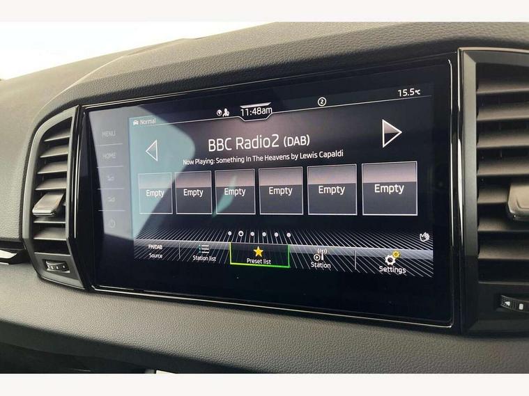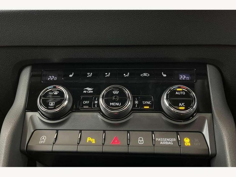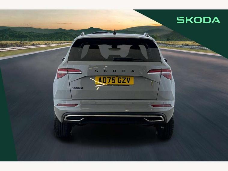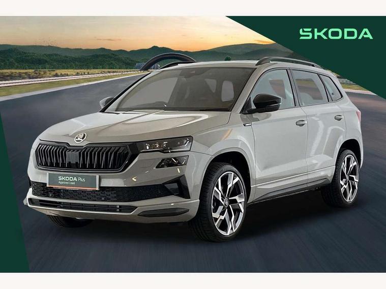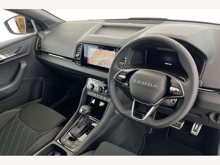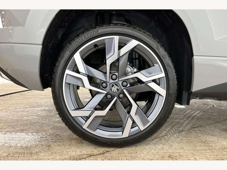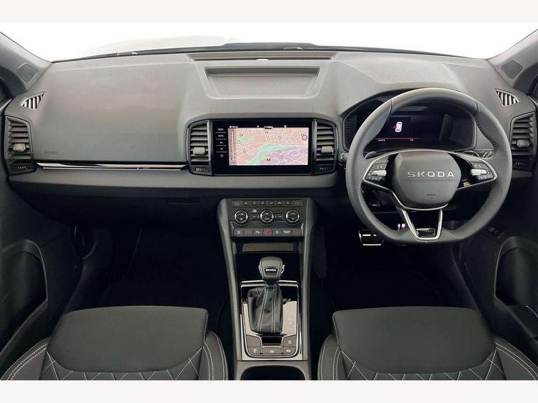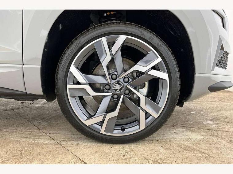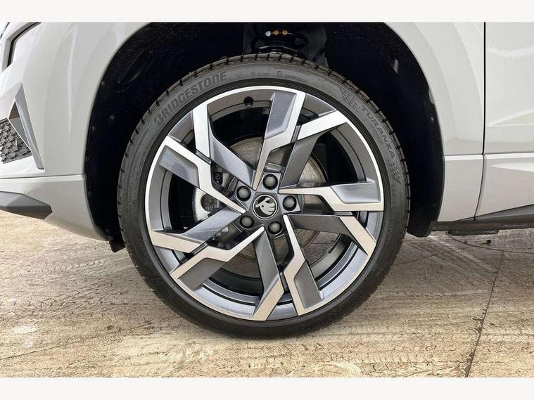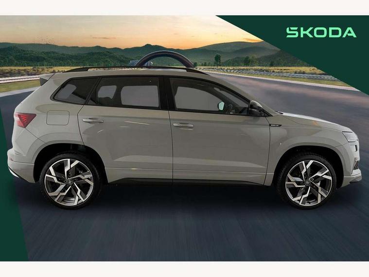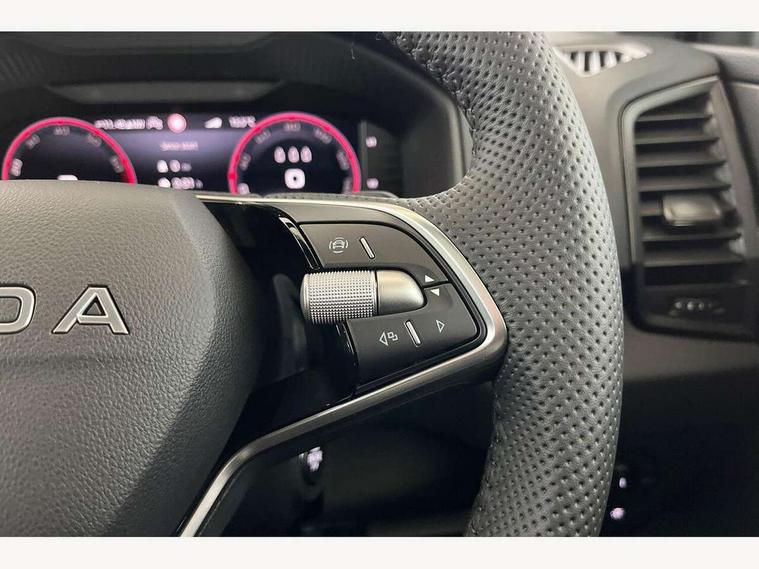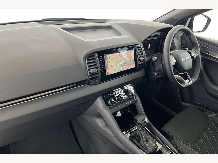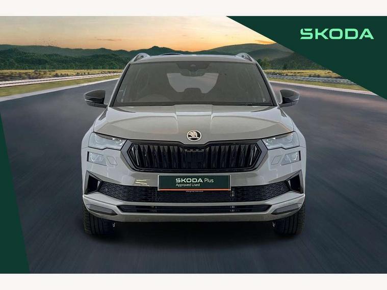 Advanced driver attention and drowsiness monitor, Emergency services call system, Outside temperature gauge, Sensor for driver assistance systems, Service interval indicator, SmartLink wireless for Apple and wired for Android, Start/stop system with regenerative braking, Traffic sign recognition, USB C Port x 2 in front centre console, Virtual Cockpit - 10.25" digital display, Virtual pedal with electrically operated boot door, Wireless smartphone charging, DAB radio with Bluetooth, USB connection, Acoustic glass, Aero front windscreen wipers with intermittent function, Auto dimming rear view mirror with light and rain sensors, Black door mirrors, Black electric window control buttons, Black radiator grille, Black roof rails, Body colour door handles, Electric front and rear windows with child proof lock, Extended rear roof spoiler, Front door steps with SportLine logo, Heated rear windscreen, LED daytime running lights, LED rear lights with high functionality welcome effect and dynamic indicators, Light assistant (coming/leaving home/tunnel light), Panoramic sliding sunroof, Plastic scuff plates in door apertures, Privacy glass, Protective door side sills in body colour, Rear diffuser, Rear side wing doors, Rear window wiper with washer system and intermittent control, Safety reflectors on front doors, Skoda lettering on tailgate in black, Sportline badge on front fender, Sports front and rear bumpers, Third brake light, Unique dark chrome design logo on alloy wheels, 1.5 litre bottle holders in driver and front passenger door panels, 12V socket in boot, 12v socket in front centre armrest with storage compartment and rear air vents, 2 x Tablet holder, 3 rear height adjustable headrests, 3 seat bench in 2nd row, 3 spoke sports leather heated multifunction steering wheel with DSG paddles, 4 foldable roof handles with rear coat hooks, Black floor carpet, Cargo elements in boot, Chrome inner door handles, Foldable hooks in the boot, Front head restraints, Height adjustable front three point seats belts with tensioners, Height/reach adjust steering wheel, Ice scraper, Illuminated glovebox, Illuminated luggage compartment, Isofix child seat preparation for front passenger seat, Isofix child seat preparation outer rear, Manual lumbar support for front seats, Pen holder, Pollen filter, Rear backrest release from boot, Rear boot cover, Rear package tray, Rear reading lights, Rear seats fixed folding and divided 60:40, Rubbish bin door, Safety vest holder, Single front passenger seat, Skoda lettering on steering wheel, Sportline decorative inserts, Storage box in upper central dashboard closed, Sunvisors with illuminated vanity mirrors, Textile floor mats, Ticket holder, Titan black interior ceiling, Umbrella under passenger seat, Under passenger seat storage compartment, Columbus pack - Karoq, LED Interior lighting pack with Skoda welcome logo - Karoq, Light Pack - Karoq, Non Smokers pack, Performance pack - Karoq, Winter plus pack with heated front and rear seats - Karoq, Automatic door unlocking in case of crash, Automatic fuel cut off in case of crash, Driver airbag, Electronic parking brake with auto hold function, Emergency rear braking signal, ESC (incl. ABS+MSR+ASR+EDS+HBA+DSR+RBS+MKB), Front side airbags, Head airbags, Hill hold control, Knee airbags, Passenger airbag with switch-off function, Pedestrian monitor, Power operated child safety locks, Seatbelt reminder signalisation and pretensioner for all seats, Three point seatbelts rear, Two tone horn, Tyre pressure monitor, Alarm with interior monitoring, back up horn and tilt sensor with safe function, Electronic engine immobiliser, Keyless entry and start/stop, Remote central locking with 2 remote folding keys, Black air vent surround, Black centre console, carbon door decor, Satin black dashboard, Satin black door trim, 19" Sagittarius anthracite alloy wheels, Anti-theft wheel bolts protection, Breakdown and tool kit,