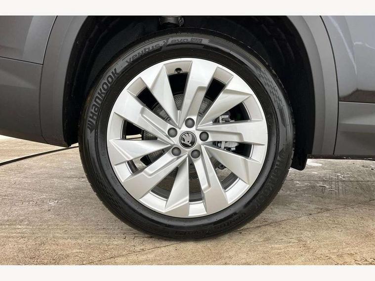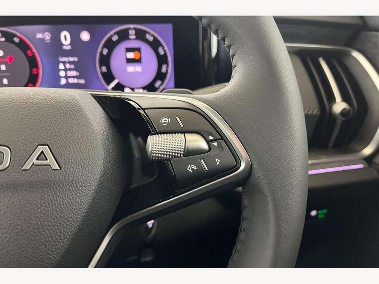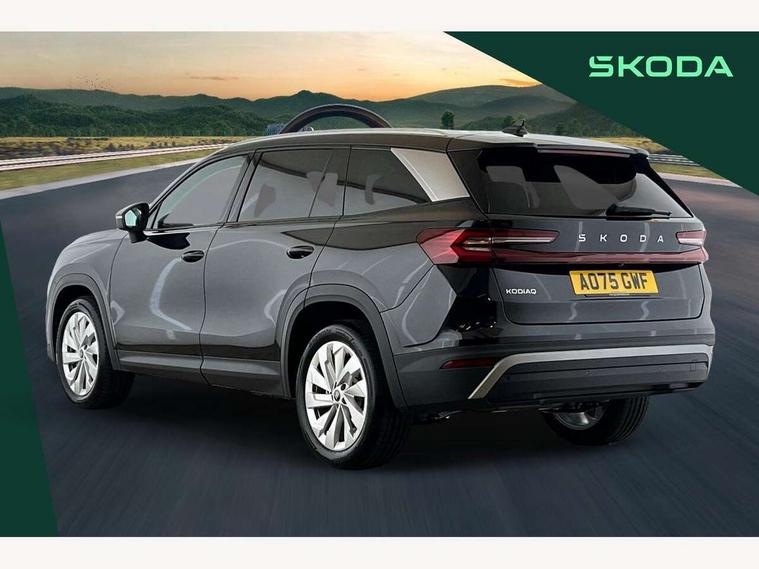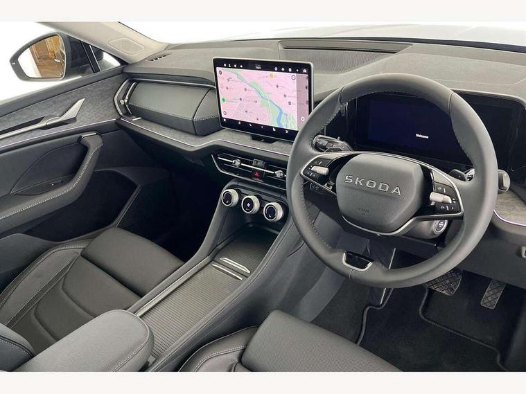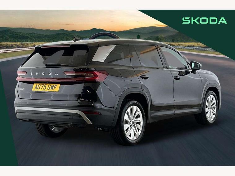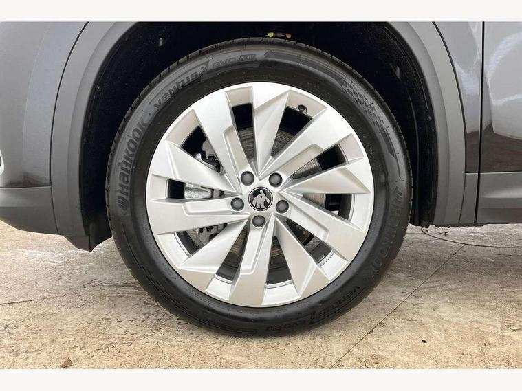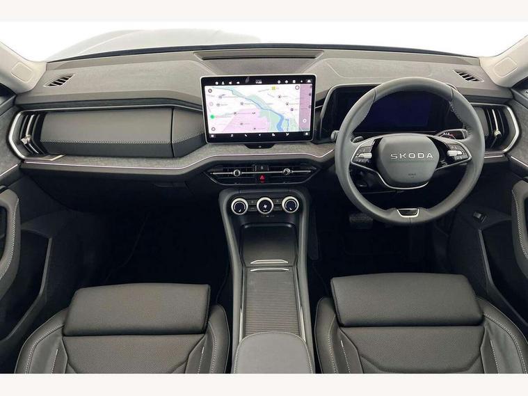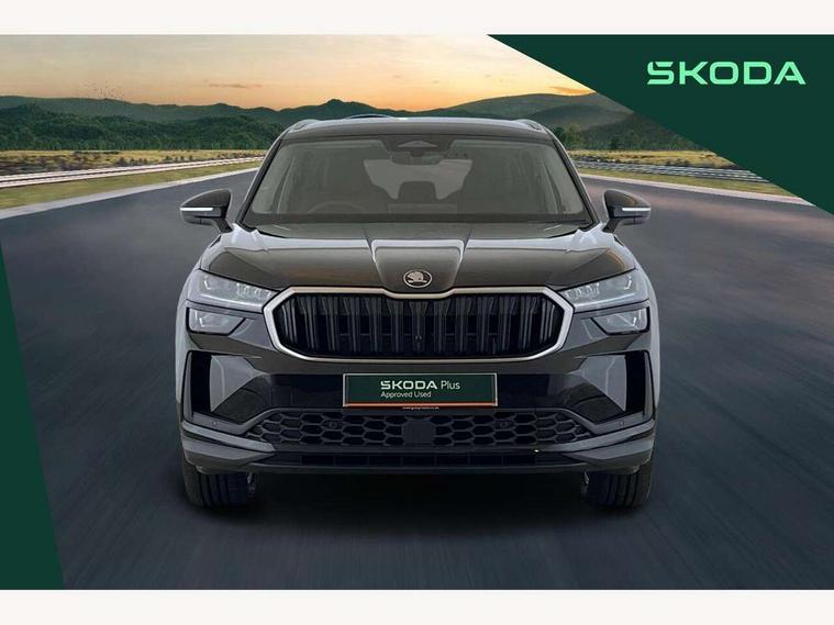 13" satellite navigation touchscreen display, Blind spot detection with door exit warning, Bluetooth system, ChatGPT functionality, Driver alert - Fatigue and drowsiness monitor, Dry display cleaner, Emergency call, Front and rear parking sensors, Front cross traffic assist, Lane assist, PAS, Rear traffic assist, Tailgate unlocking from outside, Traffic sign recognition, USB C Port x 2 in front centre console, Virtual Cockpit - 10.25" digital display, Voice control system, Wireless charging for two smartphones (15W) with cooling function, Wireless SmartLink for Apple CarPlay and Android Auto, Stop/start function, 2x USB-C in the rear, DAB Digital radio, Aero front windscreen wipers with intermittent function, Auto dimming rear view mirror, AWL (all weather lighting) and all weather light with cornering function, Black wheel arch surrounds, Body colour bumpers, Body colour door mirrors and handles, Cornering light and poor weather light, Electric folding /adjustable/separted heated/folding door mirrors, auto dimming with boarding sports and memory function, Electric front and rear windows, Exterior black decorative trims, Heat insulating glass in windshield, Heated rear window, Ice scraper in fuel tank cap, Invisible tailpipe, LED daytime running lights, LED third brake light in rear spoiler, Light assistant with automatic headlight control and coming home feature, Logo projection in door mirrors, Privacy glass, Rear roof spoiler, Rear side wing doors, Rear window wiper, Red decorative strip between rear LED lights, Safety reflectors on front and rear doors, Unique dark chrome design logo on alloy wheels, Window control switches with black trim, Windscreen wipers with rain sensor, Without engine designation, 1.5l bottle holder points in all door, 1x centre rear reading light, 2 seat bench in 3rd row, 3 configurable smart dials with 32mm coloured display, 3 seat bench in 2nd row, 4 foldable roof handles with rear coat hooks, Ambient interior lighting - Dashboard, front-door stowage compartments, front and rear door panels and footwell lighting, Automatic gear selector on steering column, Chrome interior door handles, Driver/front passenger reading lights, Fabric headlining, Fixed bench 40:60:40 split folding backrests, Front and rear floor mats, Front centre armrest with jumbo box storage compartment, cup holder and 12V socket, Height adjustable front headrests, Isofix child seat fittings in outer middle row rear seats and front passenger with top tether, Manually adjustable steering column, Pollen filter, Rear centre armrest with cupholders, Rear seat boot backrest release, Single front passenger seat, Skoda lettering on steering wheel, Storage pocket including mobile phone pockets on the backs of the front seats, Sunvisors with illuminated vanity mirrors, Three rear height adjustable headrests, Ticket holder on A Pillar, Tri zone climate control, Umbrella in door panel x1 made from sustainable materials, Upper and lower glovebox with card holder and coin compartment, USB C port by rear view mirror for charging only (15W), Exterior styling pack - Kodiaq, Auto door release and activation of warning lights in the event of an accident, Driver and front passenger airbag with knee airbag and front passenger airbag deactivation, Electric child locks, Electronic parking brake, ESC (incl. ABS+EMD+MSR+ASR+EDL+HBA+DSR+RBS+ESBS+MCB+TSA+XDS), Front assist with braking reaction to vehicles, pedestrians and cyclists, Front disc brakes, Fuel cut off safety device, Height adjustable front 3 point seatbelts + pretensioners, Hill hold assist, Junction assist with automatic emergency braking, Rear disc brakes, Safety vest holder in door, Seat belt reminder for all seats, Three point rear seat belts, Two tone horn, Tyre pressure monitor, Anti-theft wheel bolts, Immobiliser, Remote central locking with 2 keys,