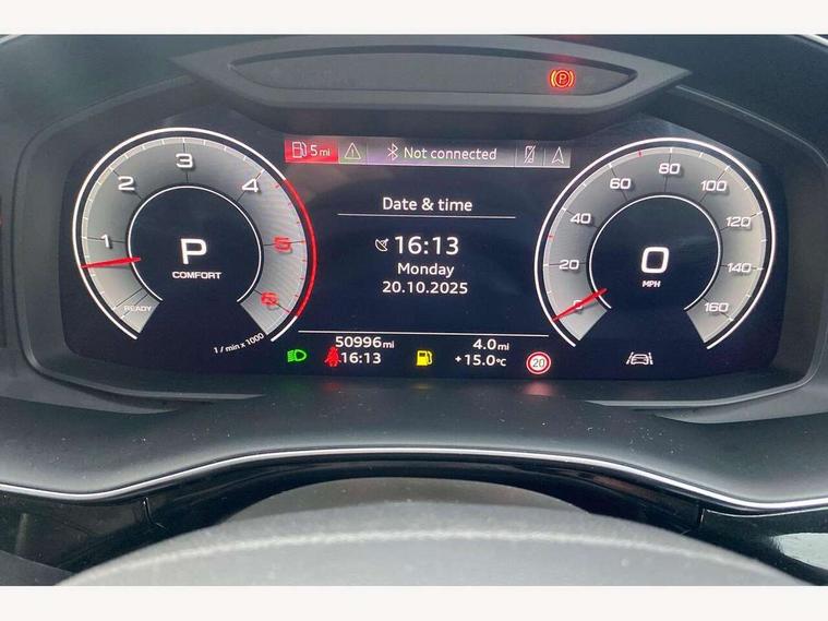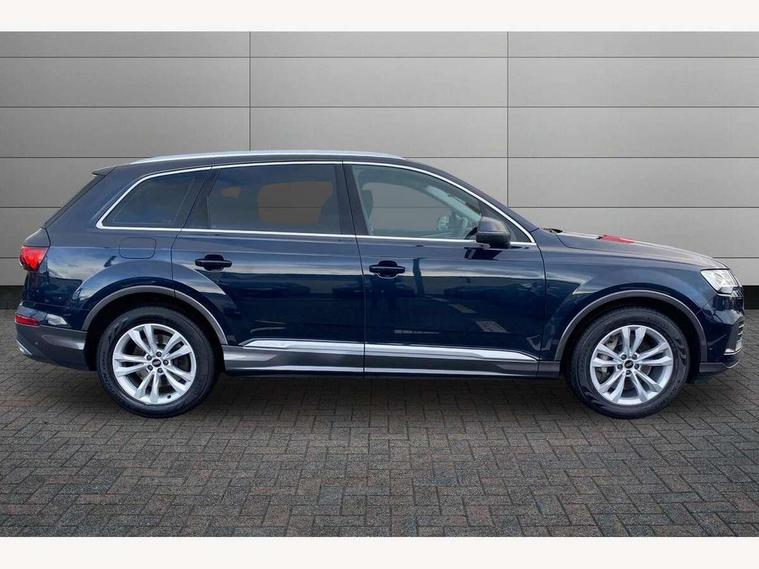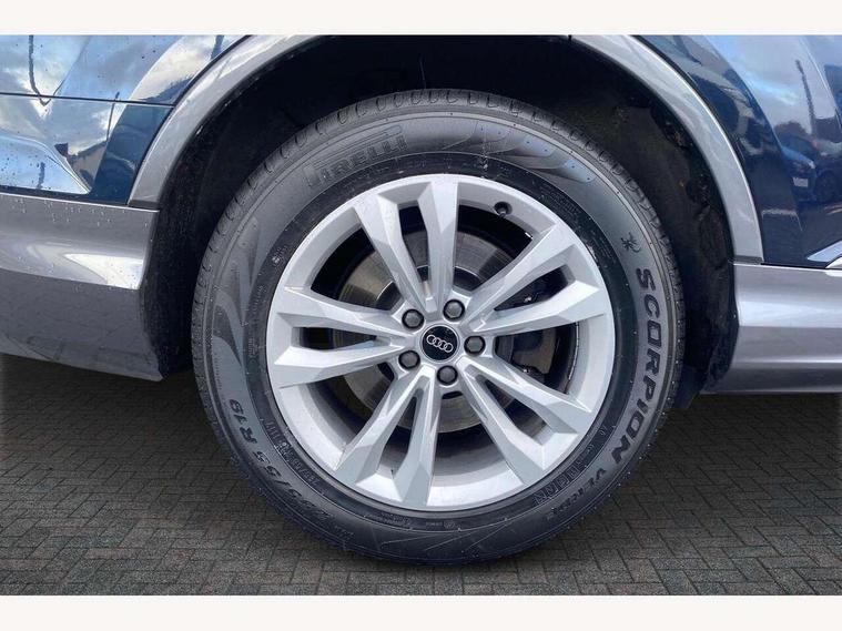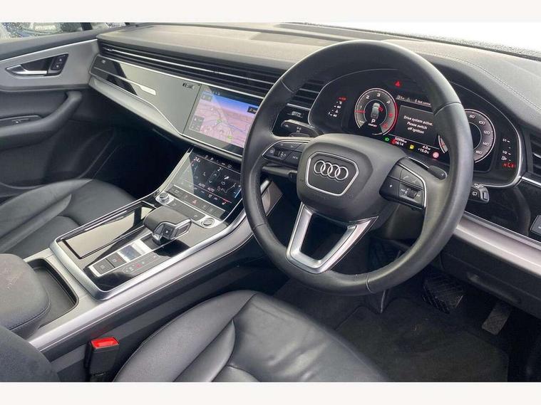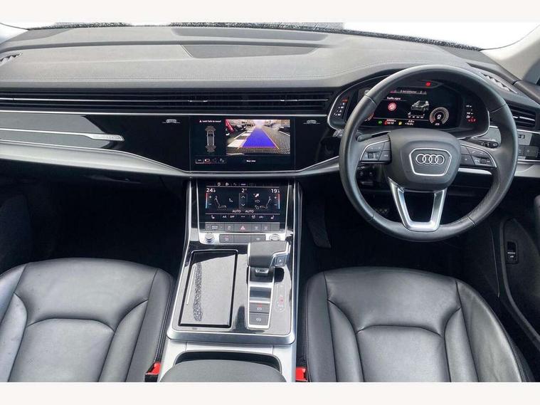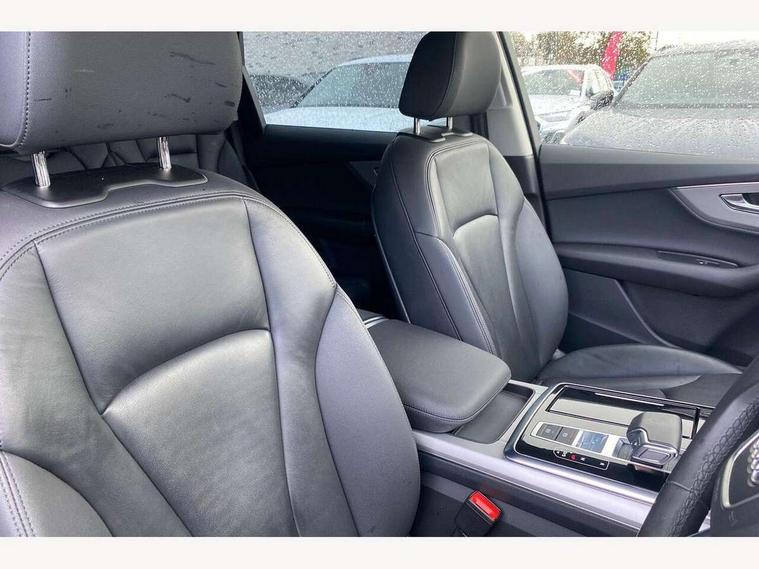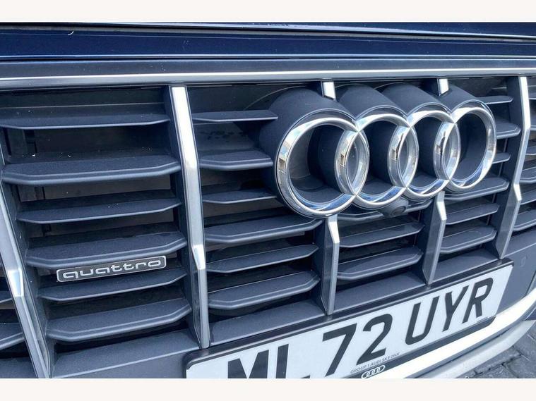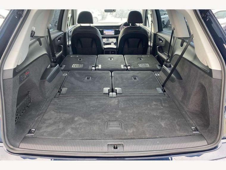 Audi connect safety and service (e-call), Audi connect with Amazon Alexa Integration, Audi drive select (Auto, Comfort, Dynamic, Individual, Off-road and All road), Audi virtual cockpit - 12.3" high-resolution LCD display with fully customisable instrument cluster, Bluetooth interface, Camera based traffic sign recognition, Electromechanical steering, MMI navigation plus with MMI touch screens includes 10.1" and 8.6" screens with haptic feedback, Natural voice recognition, Parking system plus with 360 degree display (front, rear and side sensors) - acoustic and visual park assist system, Power operated tailgate, Rear view camera, Smartphone interface includes wireless Apple carplay/Android Auto, Start/stop system, 48V Mild hybrid technology, Adaptive air suspension, Quattro all wheel drive with self locking centre differential, Audi music interface - front 2 USB-C ports with charger and data functions, Audi sound system with 6 channel amplifier, 180 watt amplifying capacity and 10 loudspeakers including subwoofer, DAB digital radio module, 3rd brake light, Aluminium roof rails, Aluminium window trim, Audi matrix LED headlights with dynamic front and rear indicators, Auto dimming frameless rear view mirror, Body coloured door mirrors, Bumpers in contrast paint scandium grey finish includes door trim and wheel arch trim strips, inlays in door strip contain quattro embossing, Electrically adj heated/folding + automatically dimming exterior mirrors with memory + automatic kerb side function for passenger side exterior mirror, Heat insulating glass in windshield, Integrated LED indications in door mirrors, LED daytime running lights, LED rear tail lights, Rear side wing doors, Rear wiper, 2 seat bench in 3rd row, 2 zone automatic climate control, 3 seat bench in 2nd row, 7 seat layout with ISOFIX points for the front passenger seat and rear passenger seat, Comfort front centre armrest, Electric adjustable front seat with 4 way lumbar support, driver memory functionality, Folding rear seats, Front head restraints, Front/rear floor mats, Heated front seats, LED interior ambient lighting, Luggage compartment cover, Lunar silver fabric headlining trim, Rear head restraints, Single front passenger seat, Sunvisors with illuminated vanity mirrors, Twin leather upholstery, 3 point seatbelts on all rear seats, Audi pre sense front, Child locks on rear doors, Driver and front passenger, front side and curtain airbags, Electromechanical parking brake, Electronic Stabilisation Control (ESC) including ABS, ASR and EDL, Extended pedestrian protection measures, Hill hold assist, Seatbelt monitoring, Tyre pressure loss indicator, Warning triangle and first aid kit, Anti theft alarm, Anti-theft wheel bolts and wheel loosening detection, Keyless Go, Remote central locking, Silver grey interior inlays, Tool kit, Tyre repair kit,
