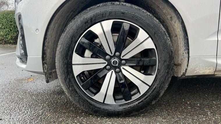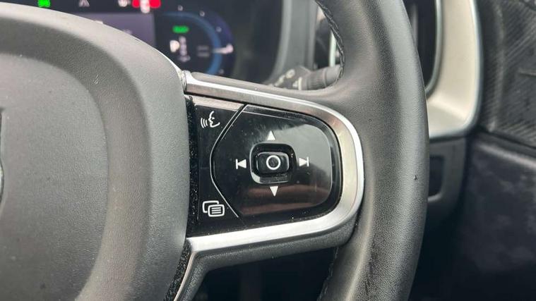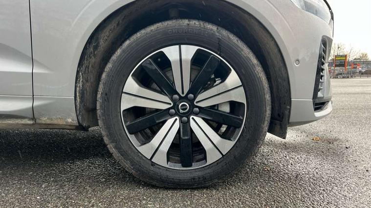 12.3" Progressive Driver Display, 360 degree surround view parking camera with side proximity sensors, 9" centre console touch screen, Adjustable steering wheel force, Apple carplay (wired), Bluetooth handsfree system, Drive mode settings, Driver alert control with lane keeping aid, Driver assistance (pilot assist and adaptive cruise control), Emergency services call system, Front and rear park assist, Google Automotive Services, Oncoming Lane Mitigation, PAS, Service interval indicator, Speed limiter, Speed sensitive steering, Trip computer, Volvo on call with App, Wireless/Inductive Mobile Phone Charging, 3.7 kW monophase on board charger, 7m 10amp charge cable with 3 pin plug and 6m 3 phase 16amp type 2/mode 3 charge cable, 8 speed automatic transmission with start/stop + manual change functions, Dynamic chassis, Electric rear axle drive, Recharging port located in nearside front wing, DAB Digital radio, Low speed exterior sound speaker, Premium Sound by Harman Kardon, dirac unison, dolby pro logic II surround sound, 13 speakers/600W output and fresh air subwoofer, Steering wheel remote infotainment controls, Adaptive brake lights with high level LED brake lights, Auto dimming interior + exterior mirrors, Automatic headlight levelling system, Automatic LED Headlights + Active high beam incorporating daytime running lights, Electric adjustable/heated/auto power folding door mirrors, Electric front+rear windows, Heated front windscreen, High gloss black door mirrors and window surround, High gloss black front and rear bumper decoratives, High gloss black mesh front grille with high gloss black surround, Home safe and approach lighting, Integrated roof rails in high gloss black, Power glass tilt and slide panoramic sunroof with sun curtain, Puddle lights, Rain sensor with automatic windscreen wiper activation, Rear side wing doors, Rear wiper, Roof antenna, Roof spoiler, Tinted windscreen, Visible VIN plate, 12V socket in front tunnel console and luggage compartment, 2 zone electronic climate control with Clean zone air quality system and pollen filter, 3 seat bench in 2nd row, A-pillar parking ticket holder, Air purifier particulate matter (PM) 2.5 filter, B Pillar ventilation, Bright metal luggage threshold, Centre console cupholders and storage, Charcoal floor mats, Front and rear courtesy lights, Front and rear door pocket illumination, Front cupholder illumination, Front footwell illumination, Front reading lights, Front seat cushion extensions, Glovebox compartment with illumination, Head restraints for all seats, Heated front seats, Heated steering wheel, Height/reach adjustable steering column, Illuminated luggage compartment, Illuminated vanity mirrors + ticket holder, ISOFIX attachment on outer rear seats, Load cover, Load protection net, Multi directional lumbar support, Power driver seat with memory + exterior mirrors memory, Power height adjustable passenger seat, Rear armrest with cupholder, Rear footwell and front and rear side step illumination, Rear seat concealed storage, Recharge aluminium tread plates, Single front passenger seat, Tailgate illumination and ambient door lighting, Underfloor stowage compartment, Versatile split folding rear seat - 60/40, 5 three point seatbelts, City safety with steering support with Pedestrian + cyclist + front collision warning with full auto brake and rear auto brake, Drivers knee airbag, Dual stage driver/passenger airbags, Electronic parking brake with auto hold, First aid kit, Front seats SIPS airbags, Hill descent control - Off-road drive mode, Hill start assist, IC (Inflatable Curtains) - Full Length, Passenger airbag cut-off device, Power child locks on rear doors, Road sign information display, Run off Road Mitigation, Run off Road Protection, Seatbelt reminder and pretensioners, SIPS (Side Impact Protection System), Slippery road and hazard light alert, Stability and Traction Control with Spin control, Engine Drag Control and Corner Traction Control, Tyre pressure monitoring system, Vehicle deceleration control with Anti-lock Brake System, Electronic Brake Distribution and Emergency Brake Assist, Warning triangle, WHIPS whiplash protection system - front, Anti-theft alarm including immobiliser/volume sensor + level sensor, Care key with user defined top speed, Key integrated remote control central locking + fuel flap with deadlocking system and auto open/close power windows, Keyless Drive (includes Keyless Entry and Keyless Start) with Handsfree Tailgate Opening/Closing, Locking wheel nuts, Private locking for tailgate, Tyre sealant kit + 12v compressor,
