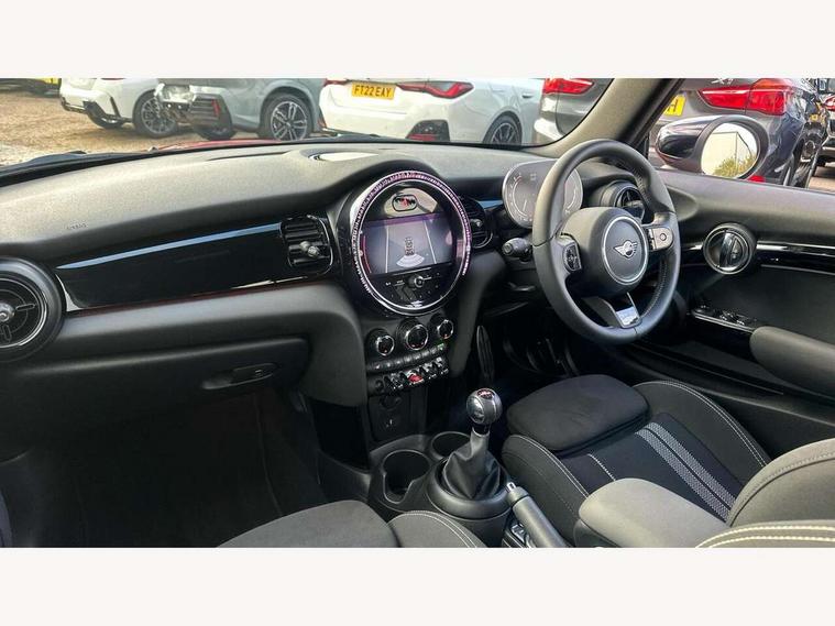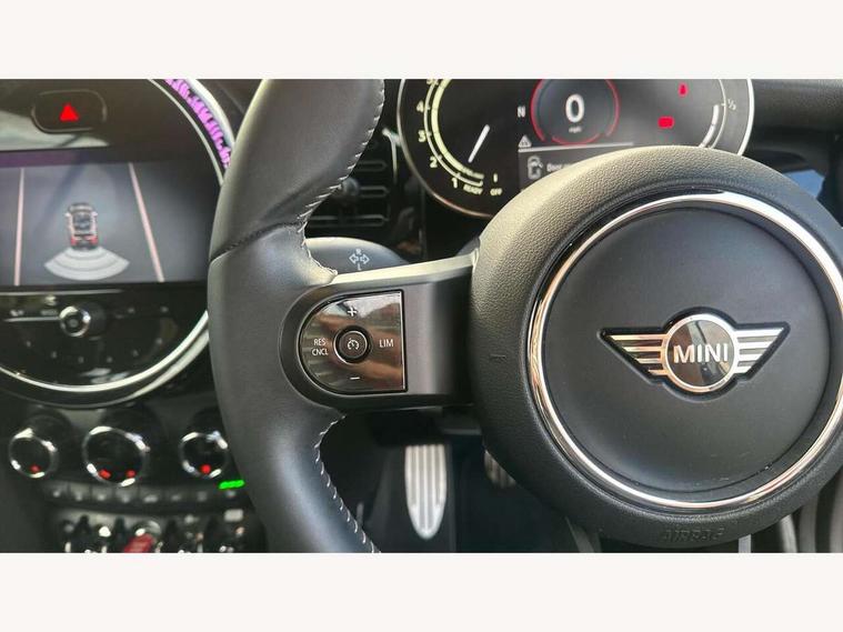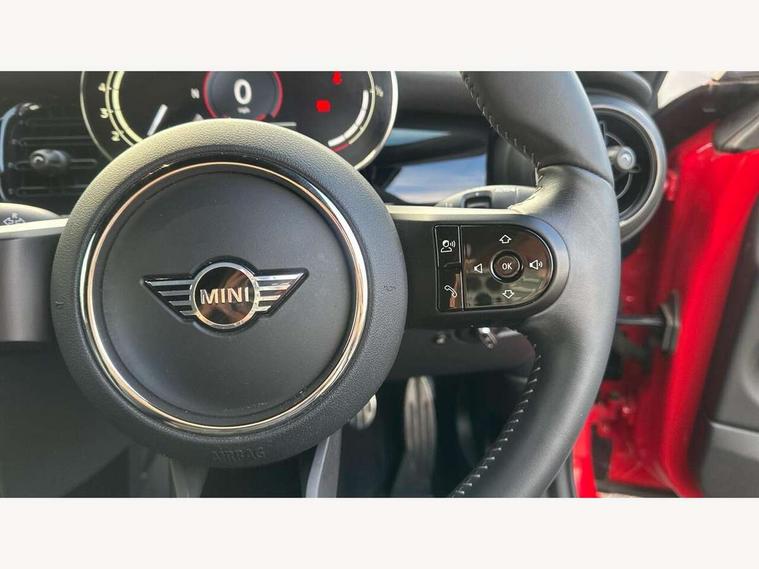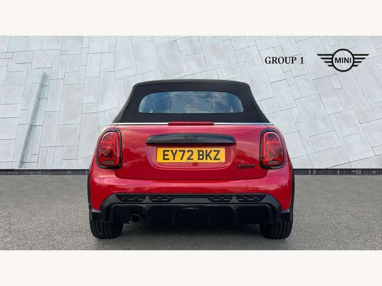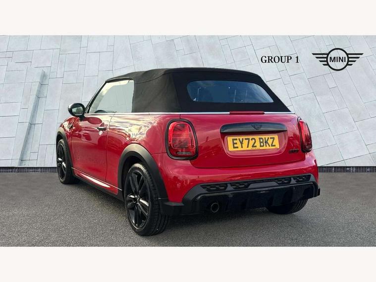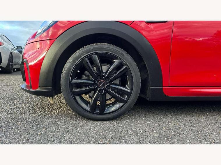 Apple CarPlay, Automatic start/stop function with brake energy recuperation, Compatible mobile phone bluetooth with audio streaming, Cruise control with brake assist, Electro-mechanical speed dependant steering assistance, Instrument cluster, MINI Driving Modes - centre toggle switch to control driving setting (sport, mid and green), Mini E-call, MINI TeleServices, On board computer, Rear park distance control, Service interval indicator, 6 Speed manual transmission including gear change indicator display, Adaptive suspension, Double Vanos system, Fully variable valve control, High precision injection, Performance Control, 8.8" touchscreen with LED ring, FM tuner and DAB digital radio, Automatic headlight activation switch, Body colour fuel filler cap, Chrome border high gloss black slats radiator grille, Dynamic brake lights, Electric windows, Fully electric black softtop with integrated sunroof functionality, Heated rear window, Heated windscreen washer jets, John Cooper Works - aerodynamic kit (front and rear apron, spoiler), front and rear sport bumpers and part-painted side sills with door sill finishers, LED headlight with closed ring and daytime driving lights, Left exhaust tailpipe with chrome finisher, Metal door sill strips with MINI imprint, Model logo Cooper on right of tailgate, Rain sensor window wipers, Rear boot, Rear fog lights, Rear LED lights with union jack design, Side scuttle panel with integrated indicator, Sun/heat protection glass, Third brake light, White indicator lenses, 12V Accessory socket in centre console, 2 seat bench in 2nd row, 4 lashing eyes in luggage compartment, 50/50 split folding rear seats, Chrome interior highlights, Colour line - Carbon black, Cupholders, Easy Load boot handles, Front and rear isofix with front passenger airbag deactivation, Glove compartment, Height and length steering column adjustment, Interior lighting with 12 different colours running across the dashboard, underneath door bezel illuminated laser engraved design on central display, John Cooper Works walk nappa leather steering wheel with grey seam and John Cooper Works badge on piano black lower steering wheel spoke, Leather gearshift lever and handbrake gaiters, Leatherette integrated headrest, adjustable thigh support with john cooper works logo, LED reading lights, vanity mirror lights, front foot well light and spotlight on front seats, Manual air conditioning, Mechanical seat adjustment, driver seat height adjust, forward/back and front seats backrest, Multifunction steering wheel, Rear head restraints, Single front passenger seat, Sports steering wheel, Storage compartments in doors, Sunvisors with vanity mirrors, Velour floor mats, Convertible pack with comfort access - Mini Convertible, Piano black exterior pack - Mini Convertible, 3 point seatbelts on all four seats, 6 Airbags - front, side and seat belt tensioners, Active rollover protection, Anti-lock braking system (ABS), DSC - Dynamic Stability Control, Front and rear disc brakes, Hill start assist, Single tone fanfare horn, Tyre pressure monitoring system, Alarm system with tilt sensor, monitoring doors, bonnet interior and tailgate, Electronic vehicle immobiliser, Keyless Go, Piano black interior trim, Tool kit,