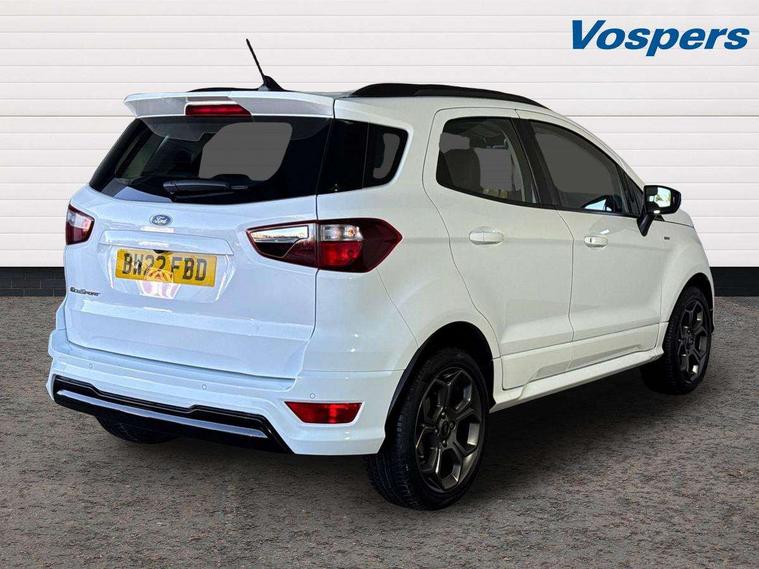 Cruise control, e-Call (emergency call), Easy fuel capless refuelling system, Ford SYNC 3 nav system with DAB radio, 8" screen, emergency assistance, Apple car play/Android auto, 2x USB, 6 speakers, Ford pass connect, Intelligent speed limiter, PAS, Rear parking sensors, Rear view camera, Traffic sign recognition, Trip computer, Sports suspension, Steering wheel mounted audio controls, Auto dimming rear view mirror, Automatic front wipers, Automatic headlights, Black roof rails, Body colour door handles, Body coloured bumpers, Chrome lower window surround, Electrically adjustable and heated door mirrors, Front fog lights, Front grille bars and surround in black, Headlight levelling control, Large rear roof spoiler, LED day running lights, LED third brake light, Power front and rear windows, Puddle lights, Quick-clear heated windscreen, Rear side wing doors, Rear wiper, ST Line body styling kit - Black headlamp bezel, front and rear sport bumpers, body colour lower door claddings, 12V socket in front and rear, 3 seat bench in 2nd row, 60/40 split rear seats, Ambient lighting, Centre console with sliding front armrest, Cooled glovebox, Courtesy lights with map reading light, Driver seat height/lumbar adjust, Driver's side glovebox, Driver/passenger sunvisors and lidded vanity mirrors, EATC - Electronic Auto Temperature control, Folding grab handles, Front head restraints, Front seat back map pockets, Illuminated glovebox, Illuminated luggage compartment, Isofix system on outer rear seats, Luggage compartment carpet, Neosuede/Partial sensico leather upholstery, Overhead console with sunglasses holder, Rake adjustable rear seats, Reach + rake adjustable steering column, Rear headrests, Sensico trimmed steering wheel, handbrake and gearshift gaiter with red stitching, Single front passenger seat, ST-Line Front floor mats with red stitching, Stainless steel sports pedals, Storage drawers under front seats, Tie down hooks, Variable boot floor, 3x3 point rear seatbelts, ABS, Autonomous emergency braking, Child locks on rear doors, Curtain airbags, Driver airbag, Drivers knee airbag, Electronic Stability Programme with hill launch assist, Front passenger airbag deactivation, Front side airbags, Passenger airbag, Pre collision assist system with AEB, Seatbelt reminder for driver and front passenger, Traction control, Tyre pressure monitoring system, Immobiliser, MyKey system, Remote central locking, Thatcham 1 volume sensing alarm, Low rolling resistance tyres, Tyre inflation kit,